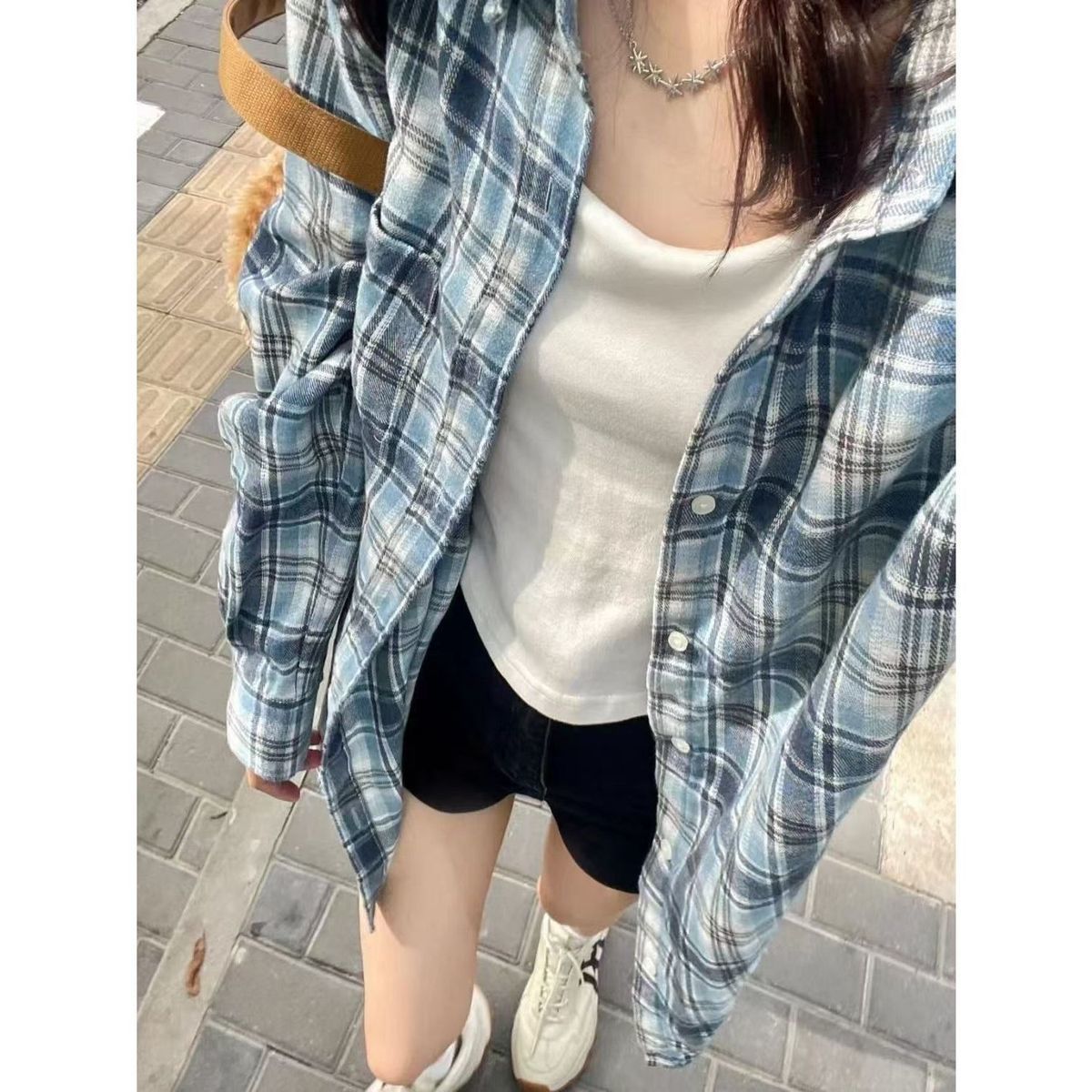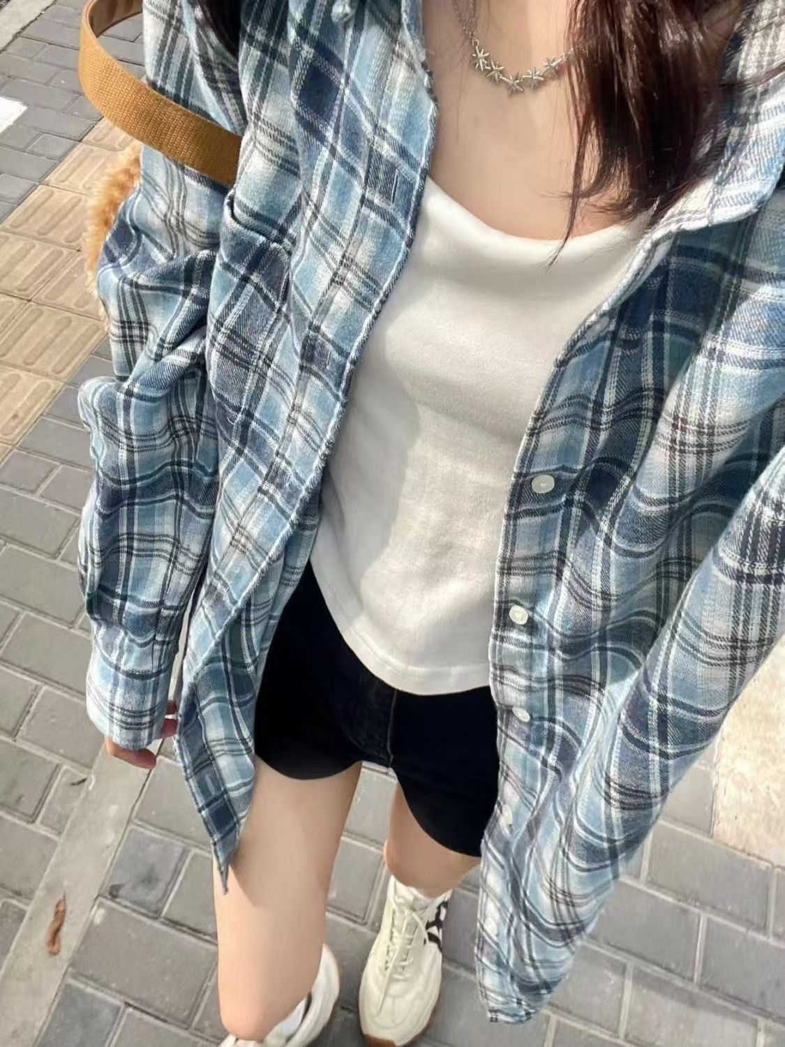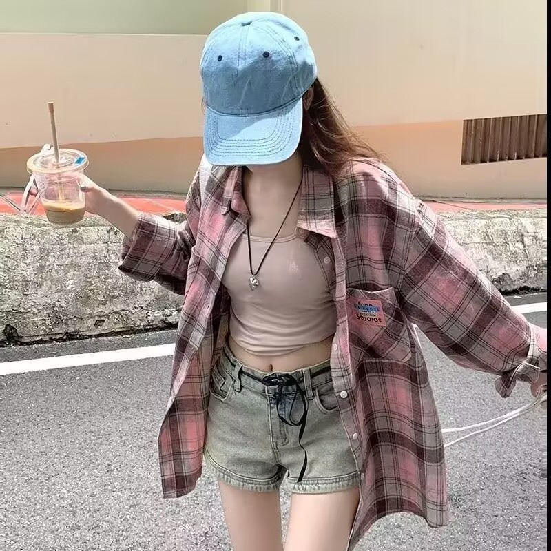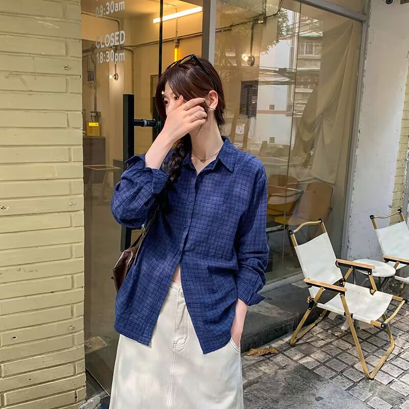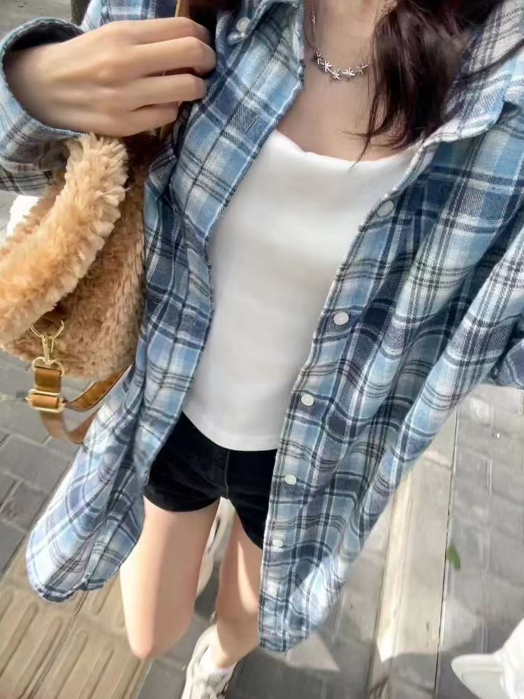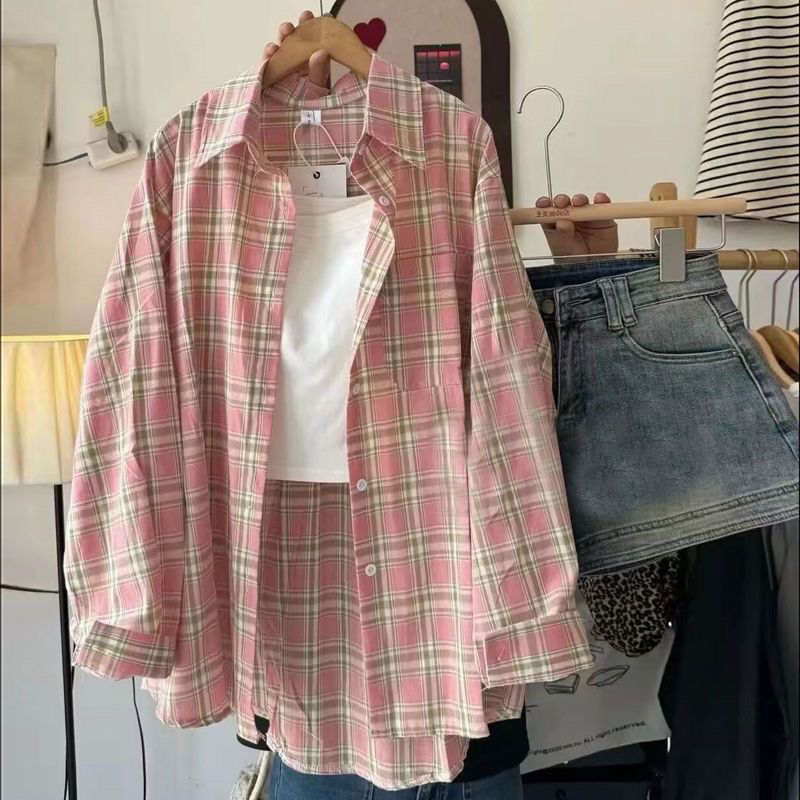 격자 무늬 셔츠 여성 2025 봄 새로운 한국 스타일 패션 소녀 작은 복고풍 긴팔 셔츠 캐주얼 자켓스토어 가기