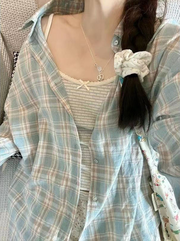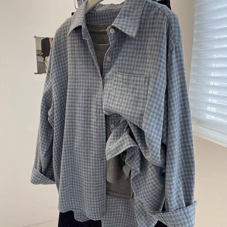 격자 무늬 셔츠 여성 2025 봄 새로운 한국 스타일 패션 소녀 작은 복고풍 긴팔 셔츠 캐주얼 자켓