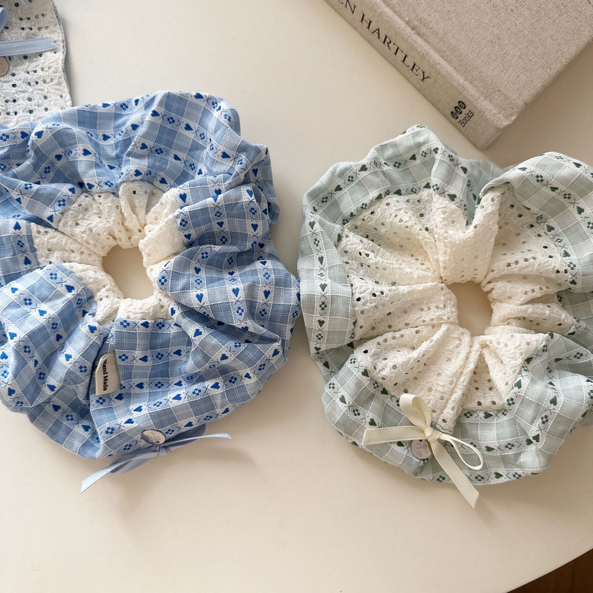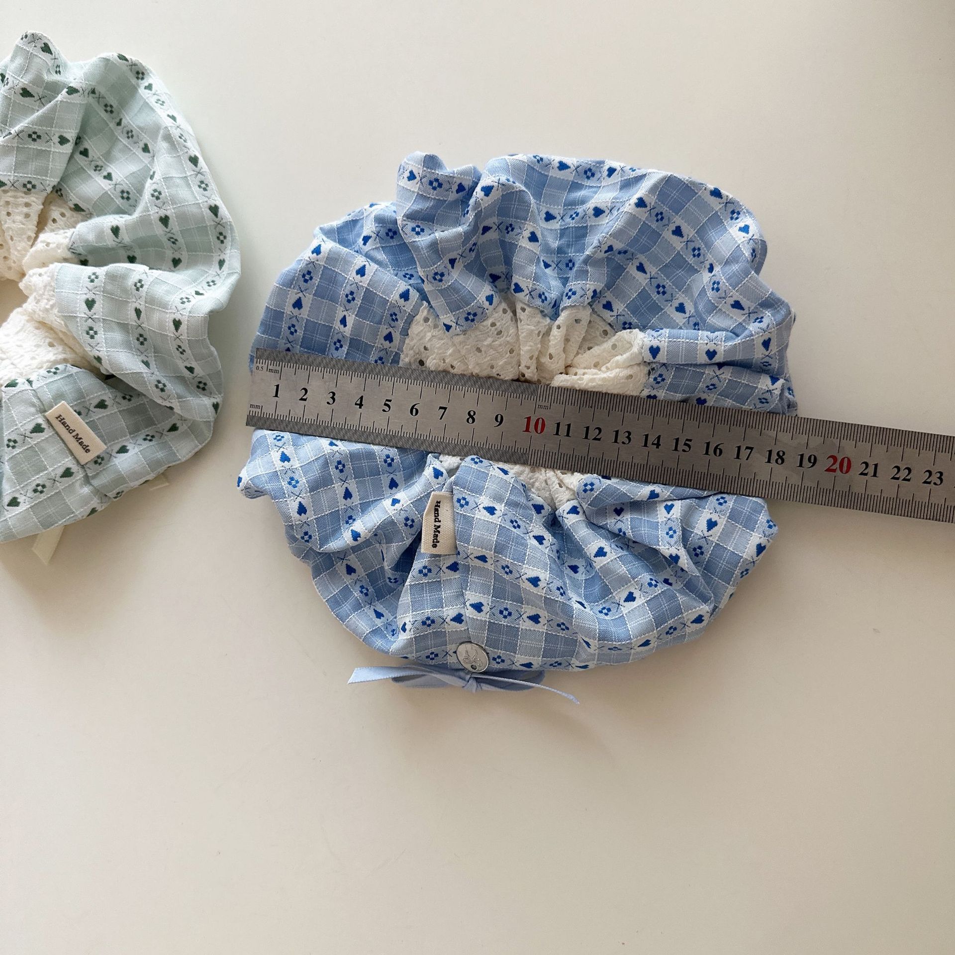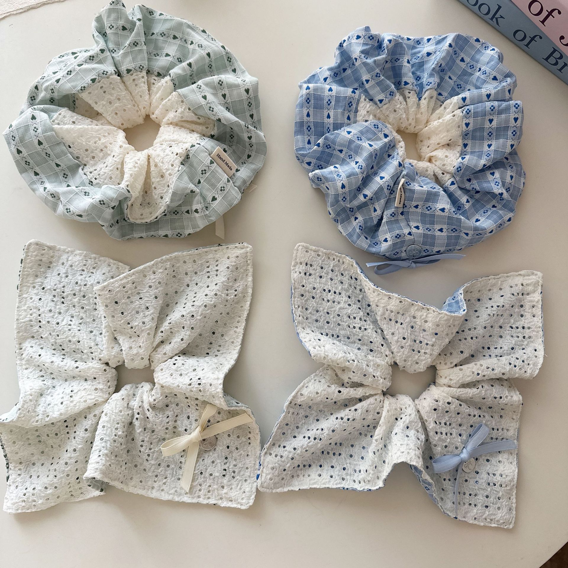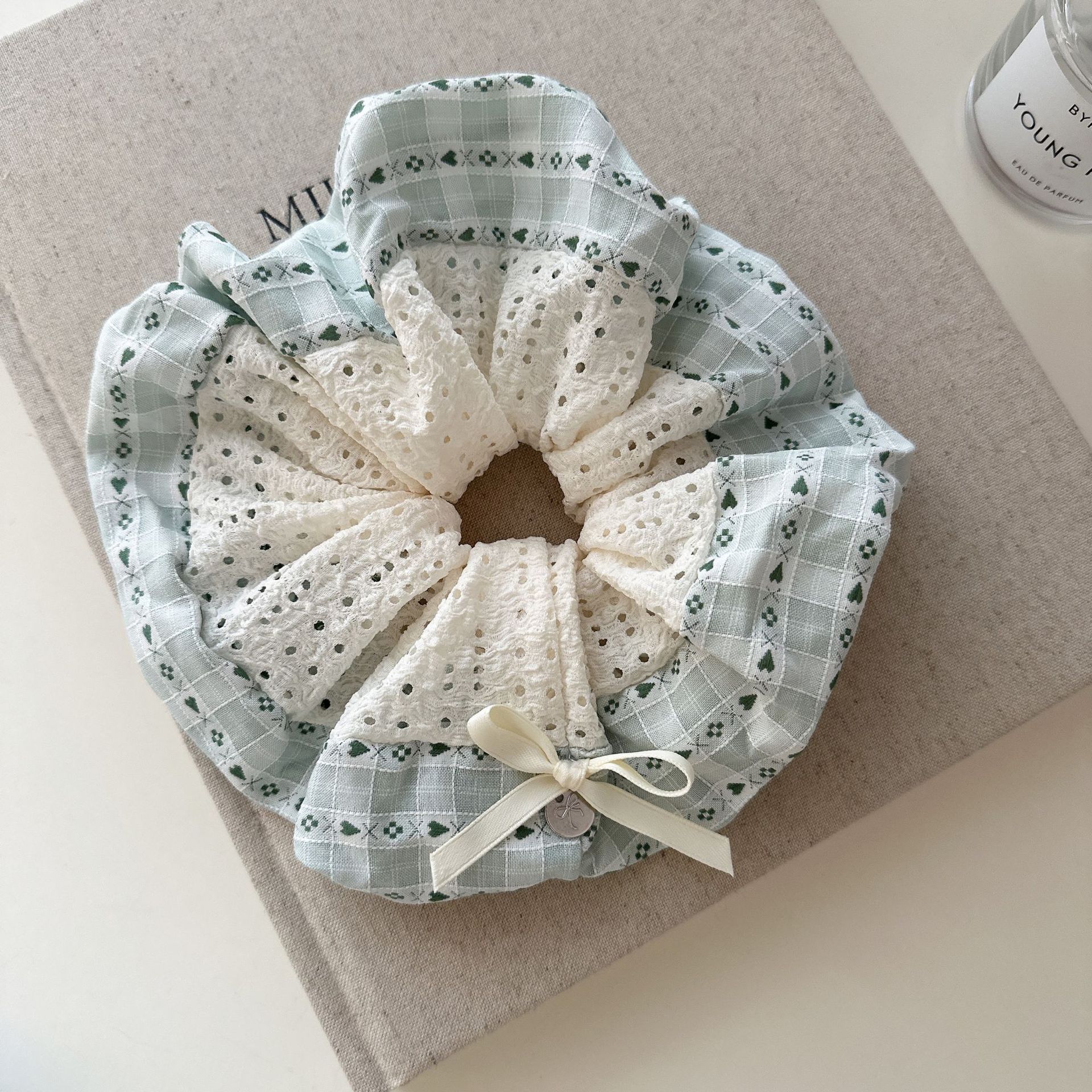 Plaid Rees Bow 대학 스타일 신선하고 달콤한 녹색 격자 무늬 AB-얼굴 머리 반지 바느질 천 여성용 헤어 액세서리 헤어 로프