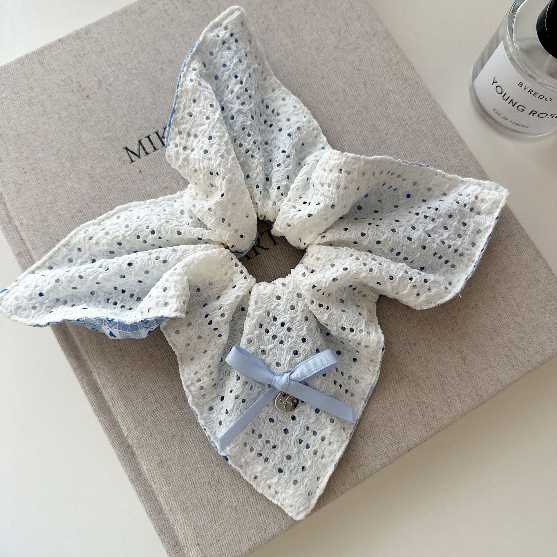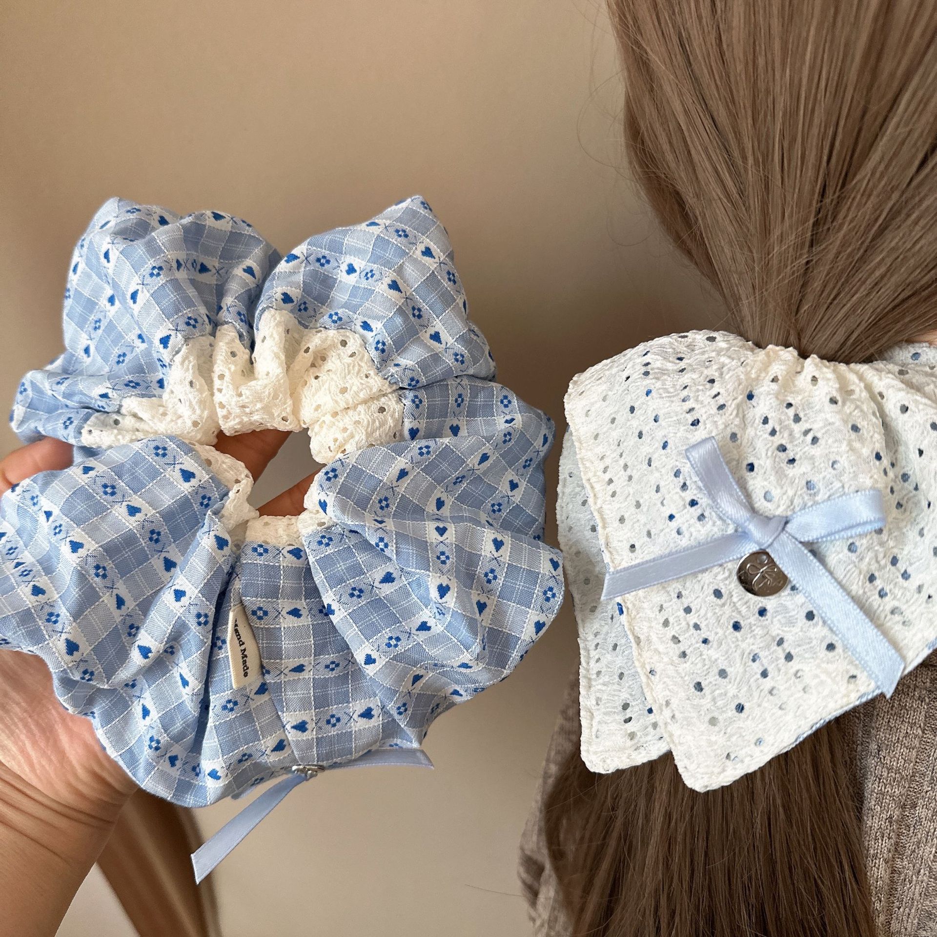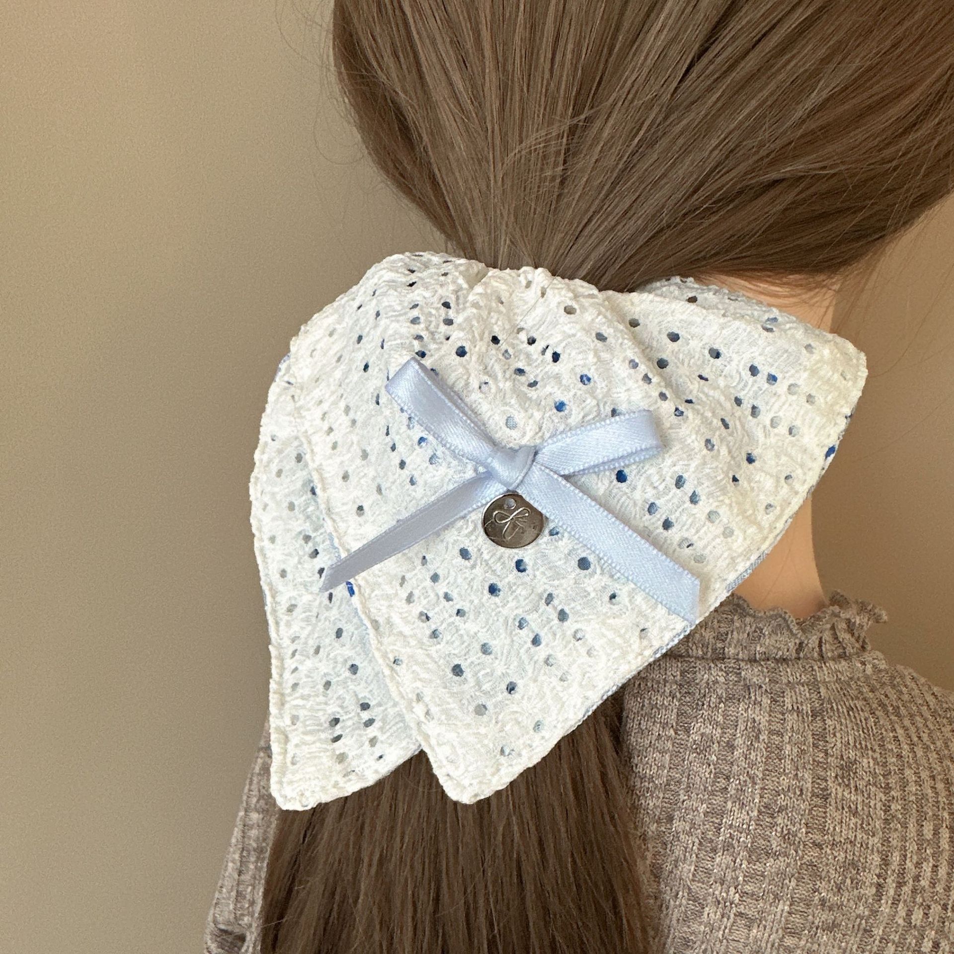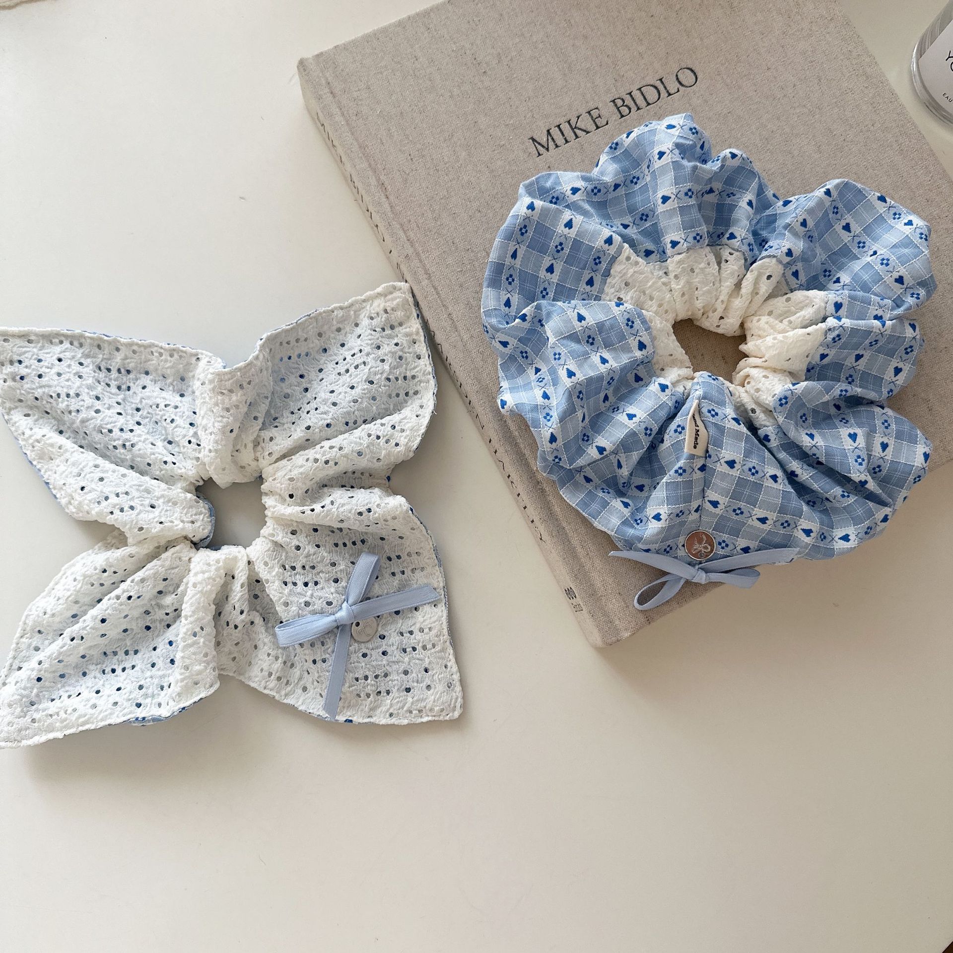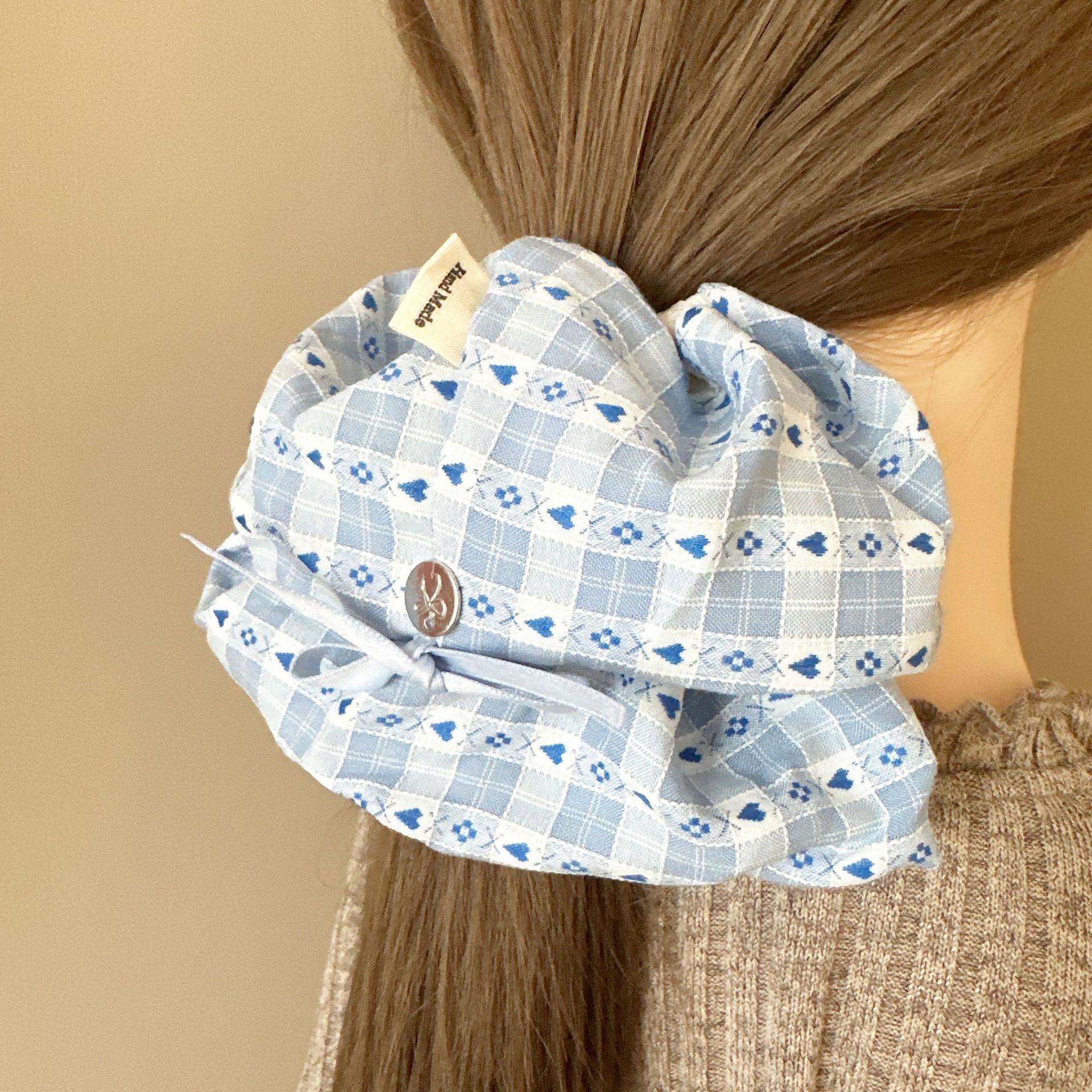 Plaid Rees Bow 대학 스타일 신선하고 달콤한 녹색 격자 무늬 AB-얼굴 머리 반지 바느질 천 여성용 헤어 액세서리 헤어 로프