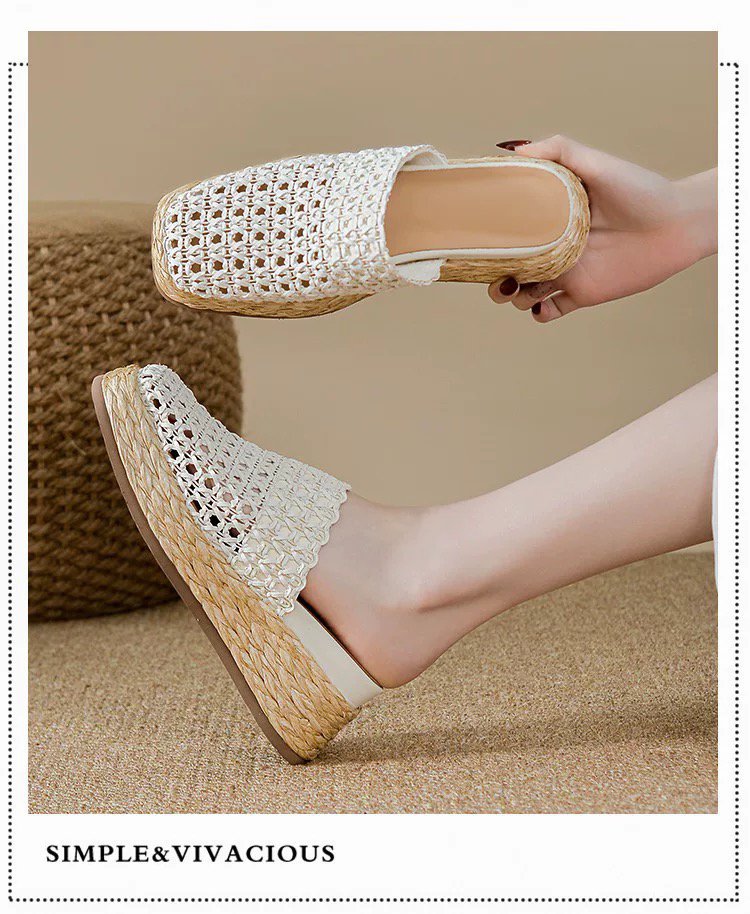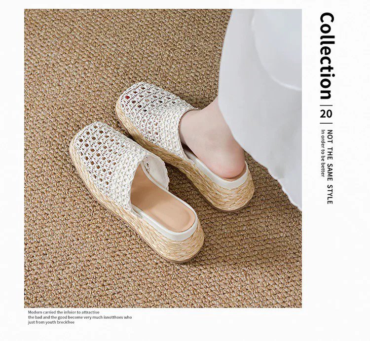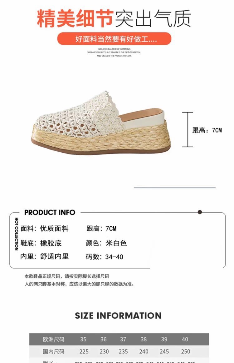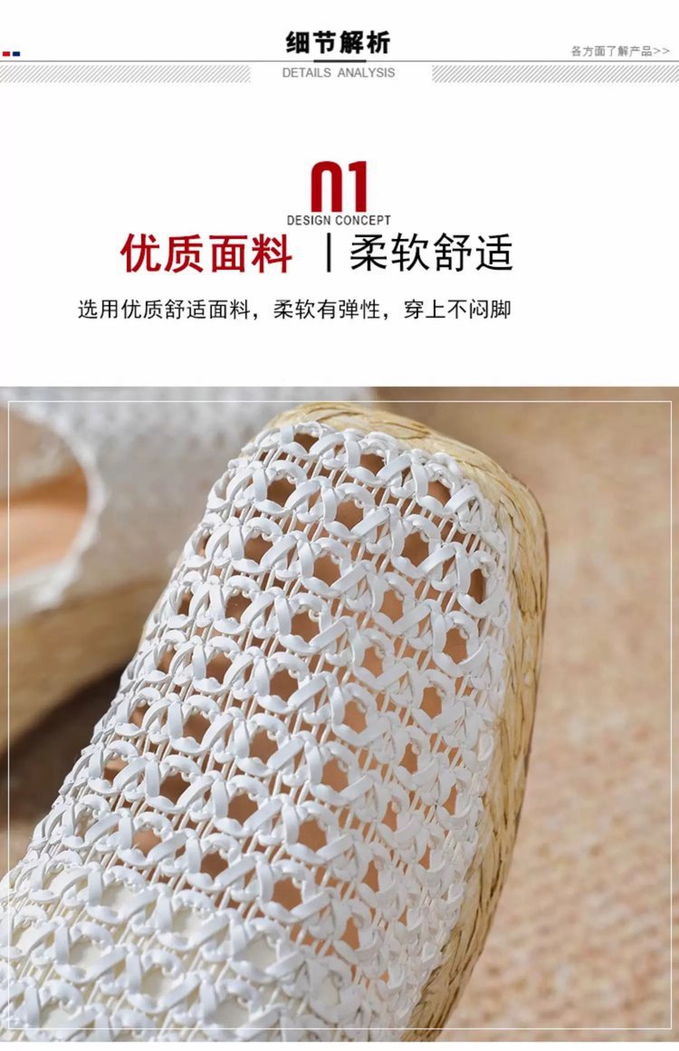 여성을위한 바오 터우 샌들 2025 새로운 여름 겉옷 리넨 두꺼운 밑창 웨지 여성 신발 중공 메쉬 하프 슬리퍼스토어 가기