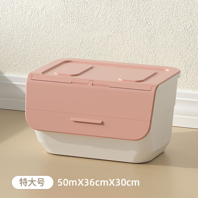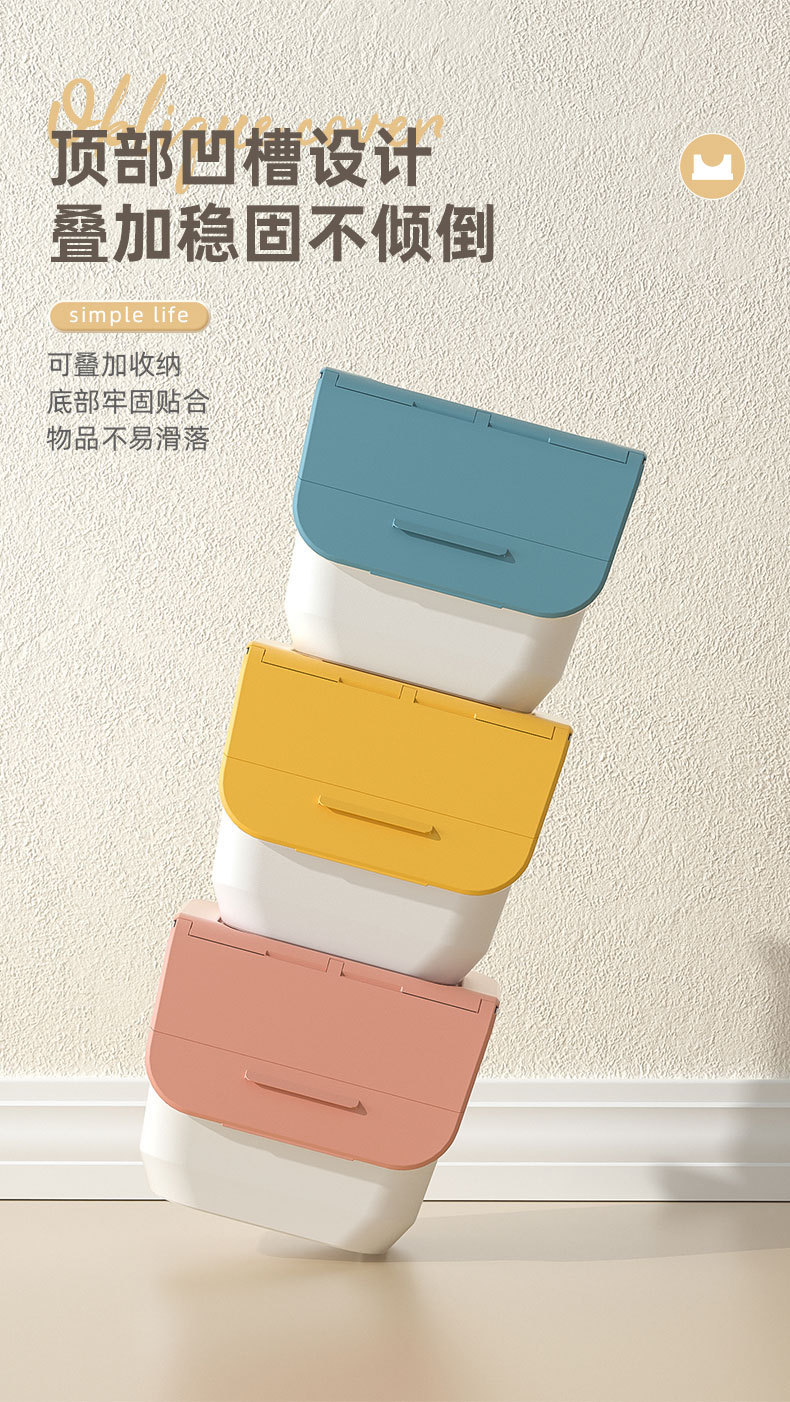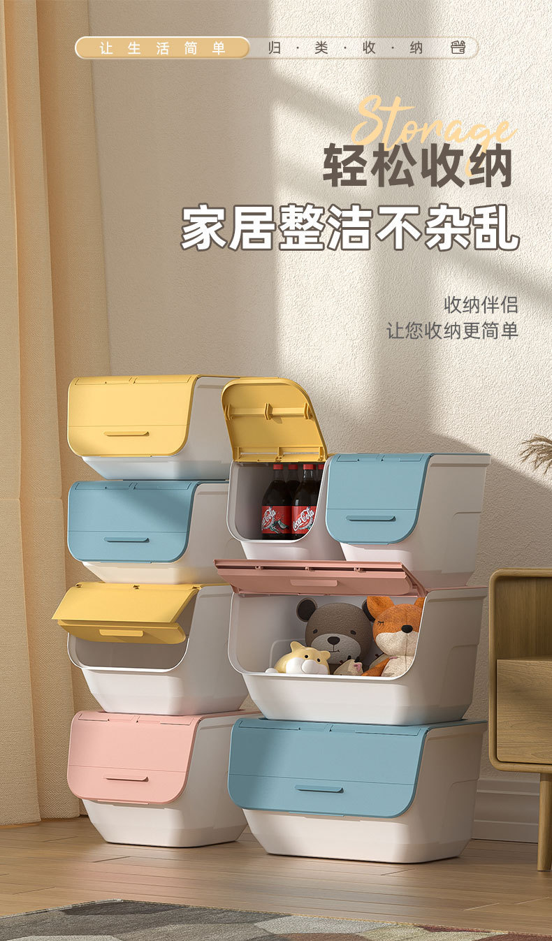 可叠加河马口玩具收纳箱客厅前翻盖斜盖式换季儿童衣物零食收纳箱