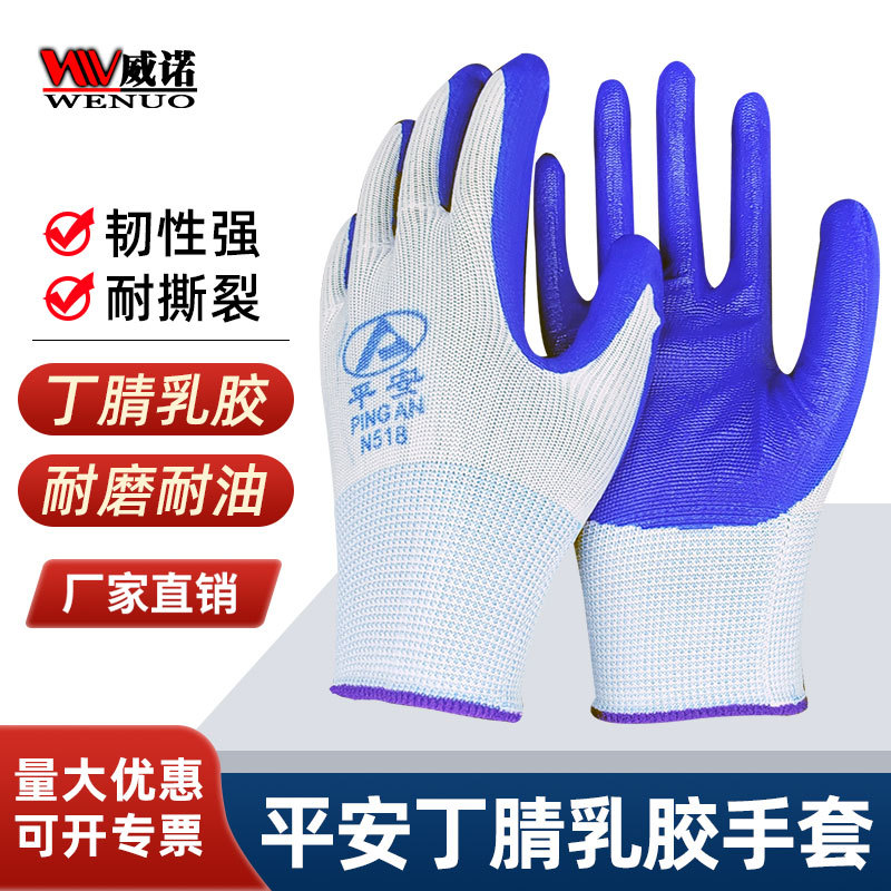 평화 브랜드 N518 # 388 베트남 13바늘 나일론 블라인드 니트릴 라텍스 함침 장갑 32g 걸이용 고무 장갑스토어 가기