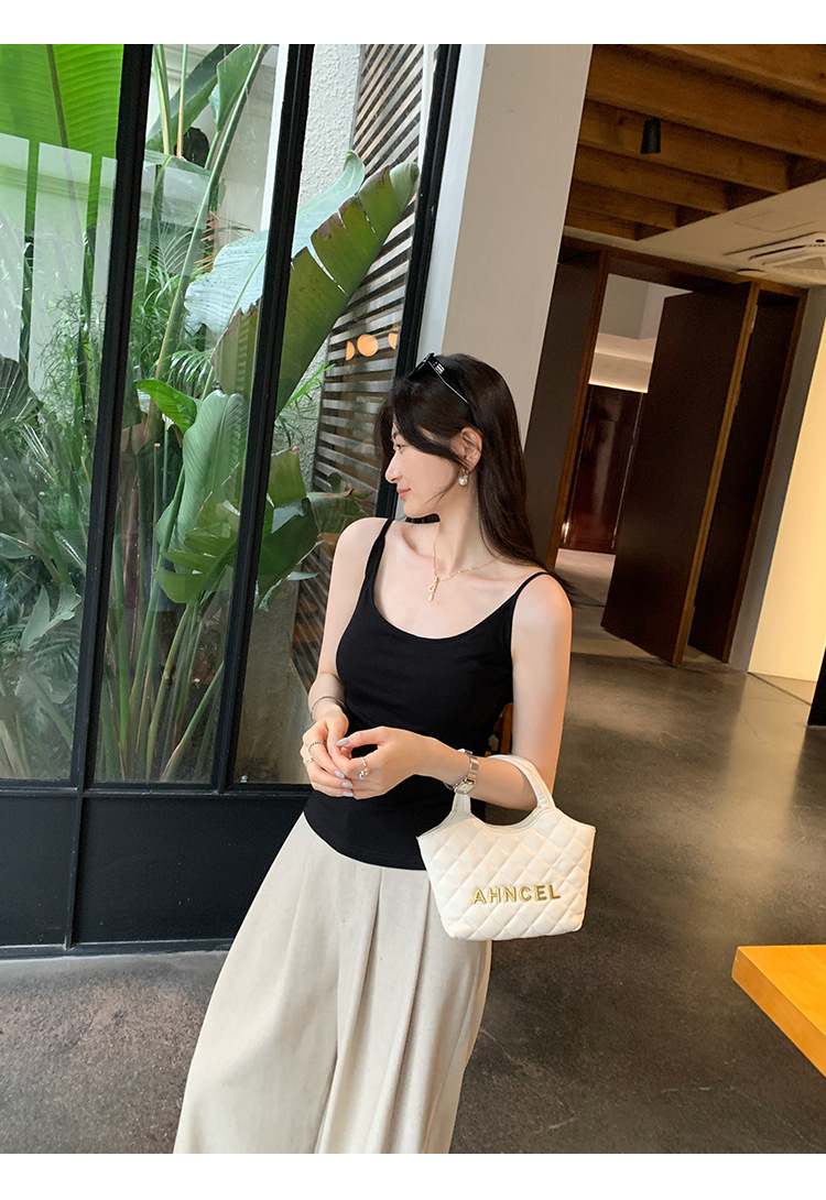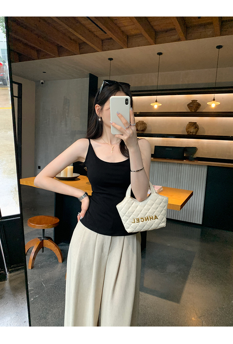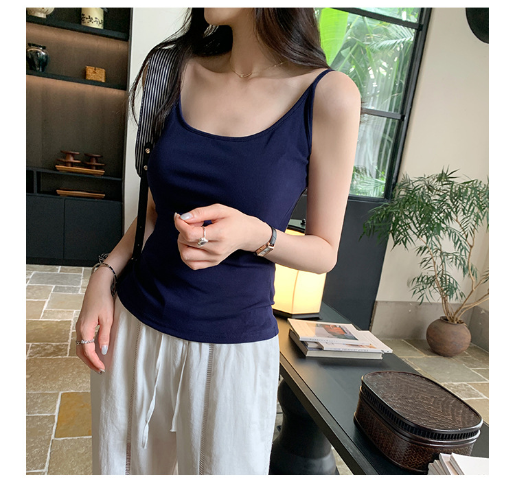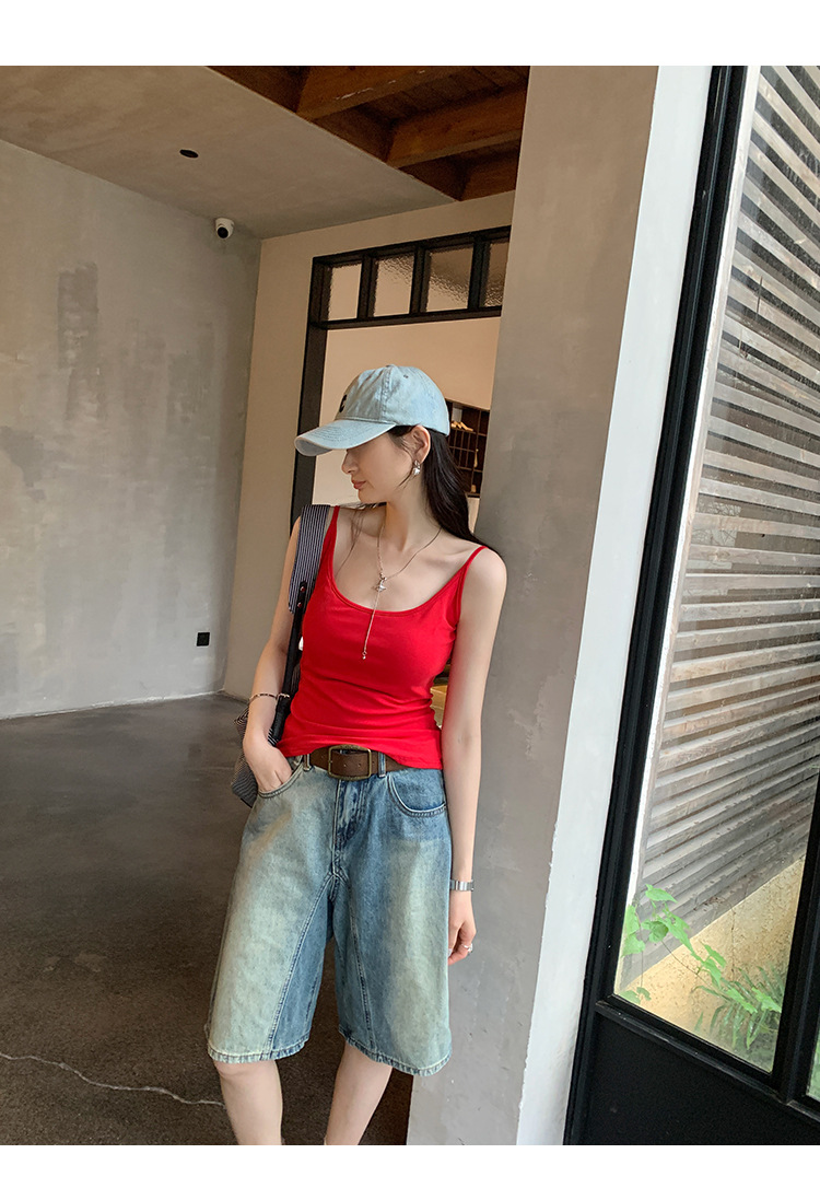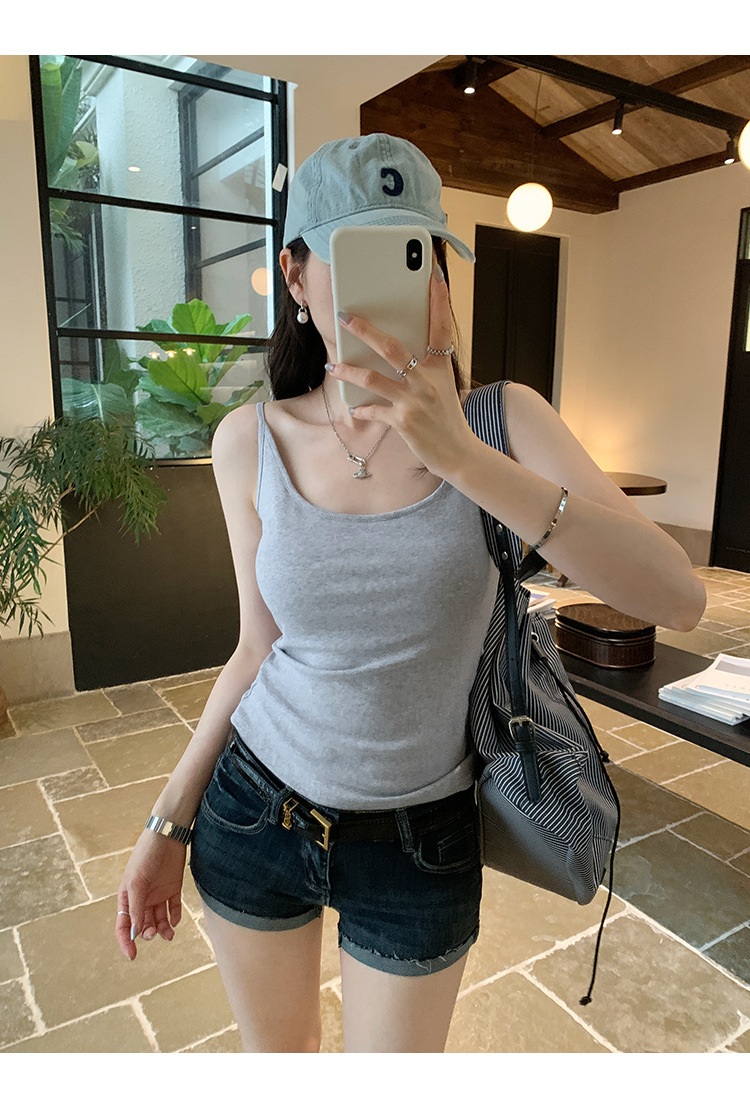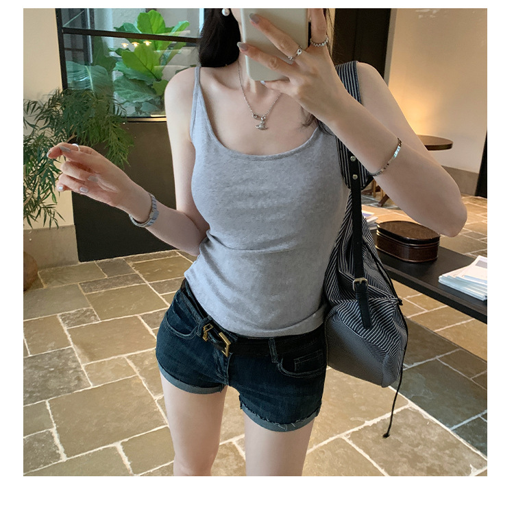 가슴 패드가 있는 태국 스타일의 핫하고 섹시한 빨간색 큰 네크라인 캐미솔 여성 2025 여름 새 스타일 핫 소녀 탑