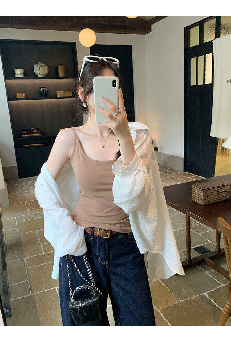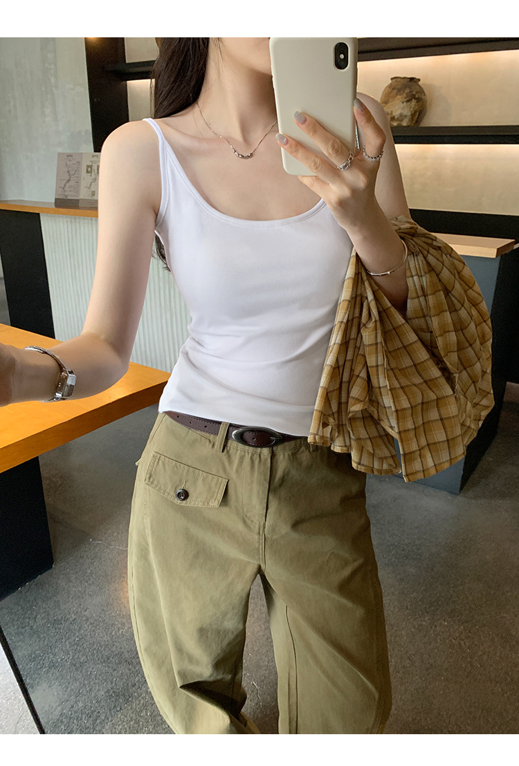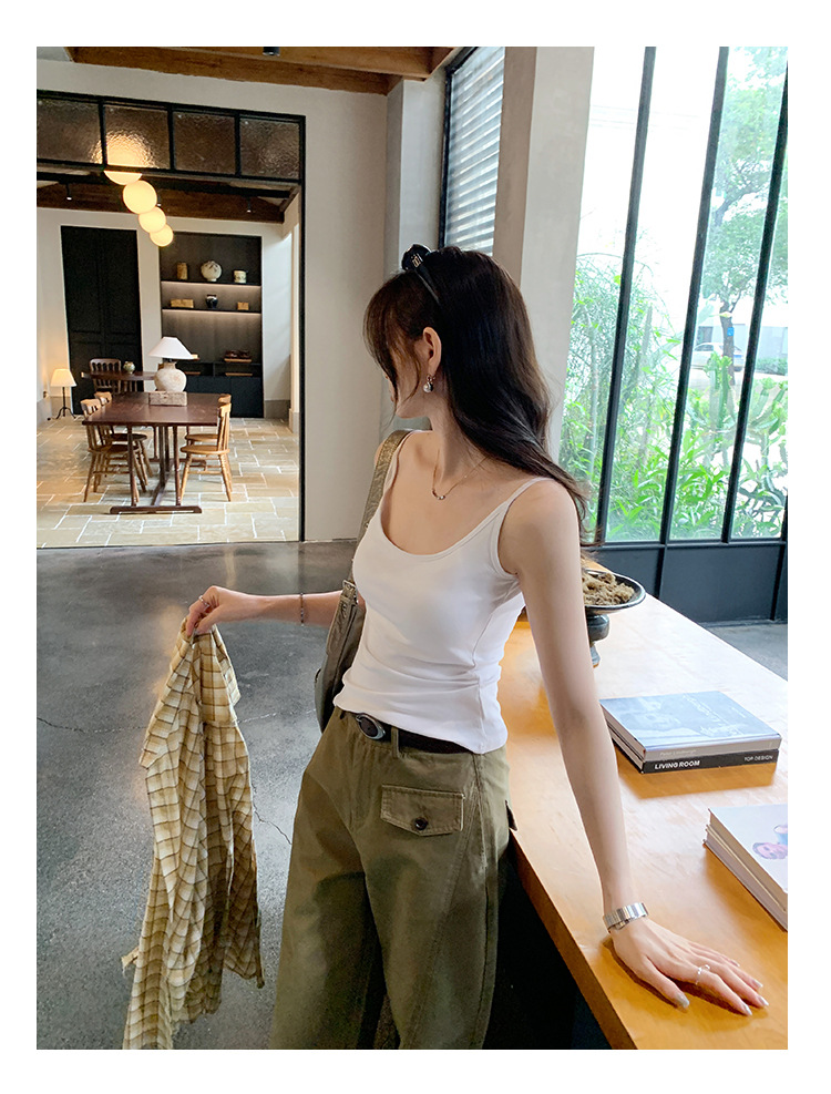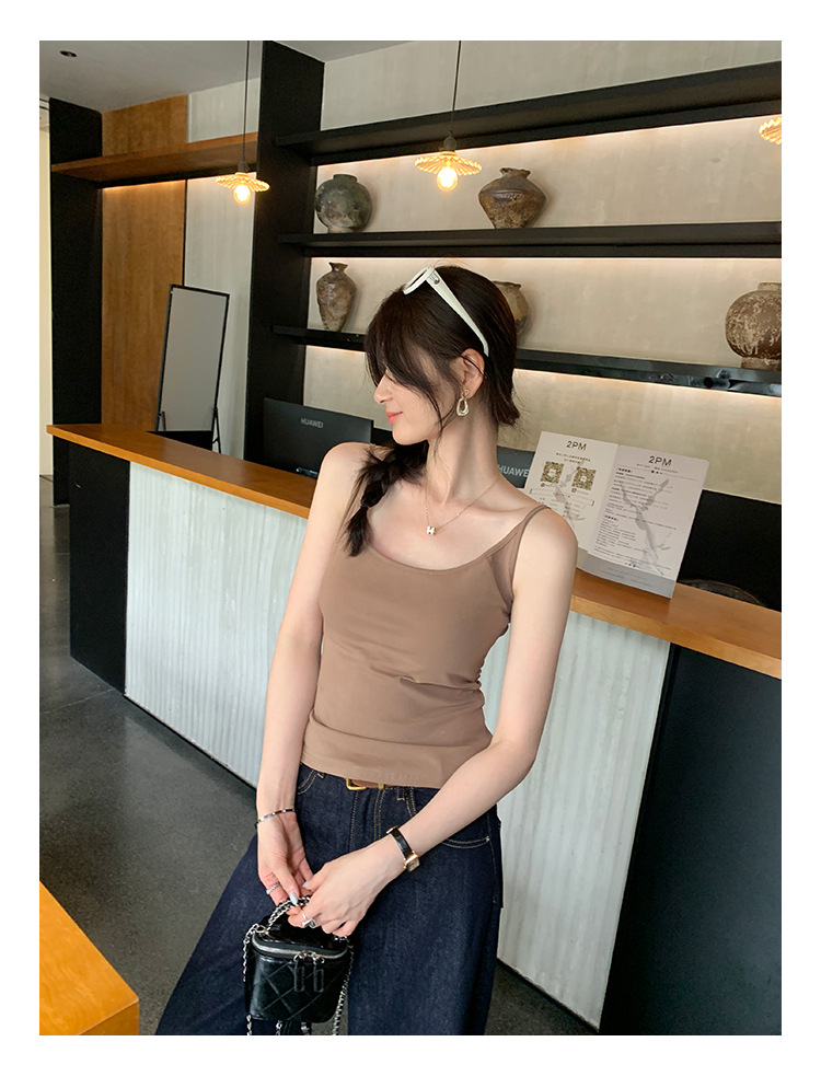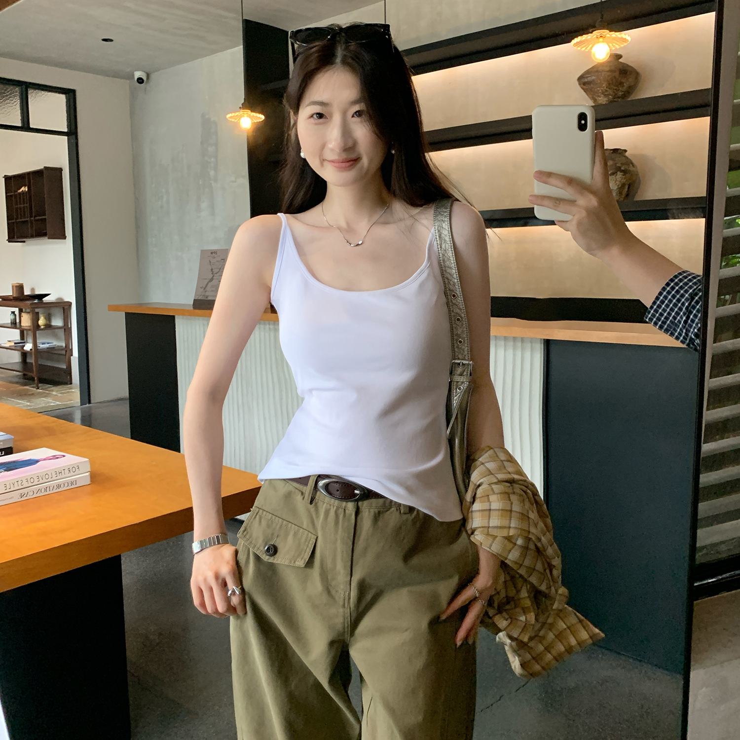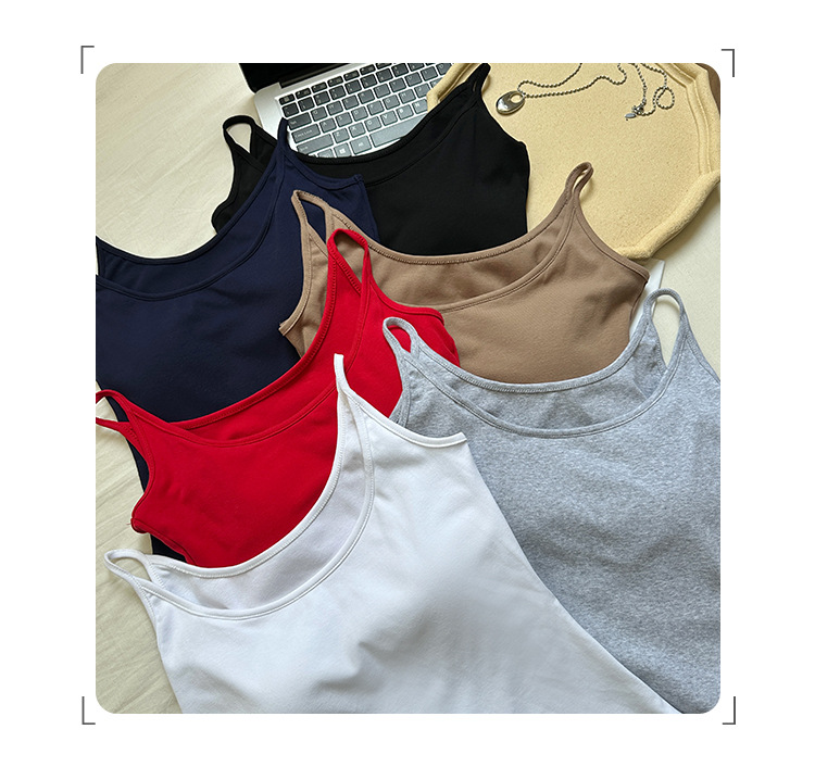 가슴 패드가 있는 태국 스타일의 핫하고 섹시한 빨간색 큰 네크라인 캐미솔 여성 2025 여름 새 스타일 핫 소녀 탑스토어 가기