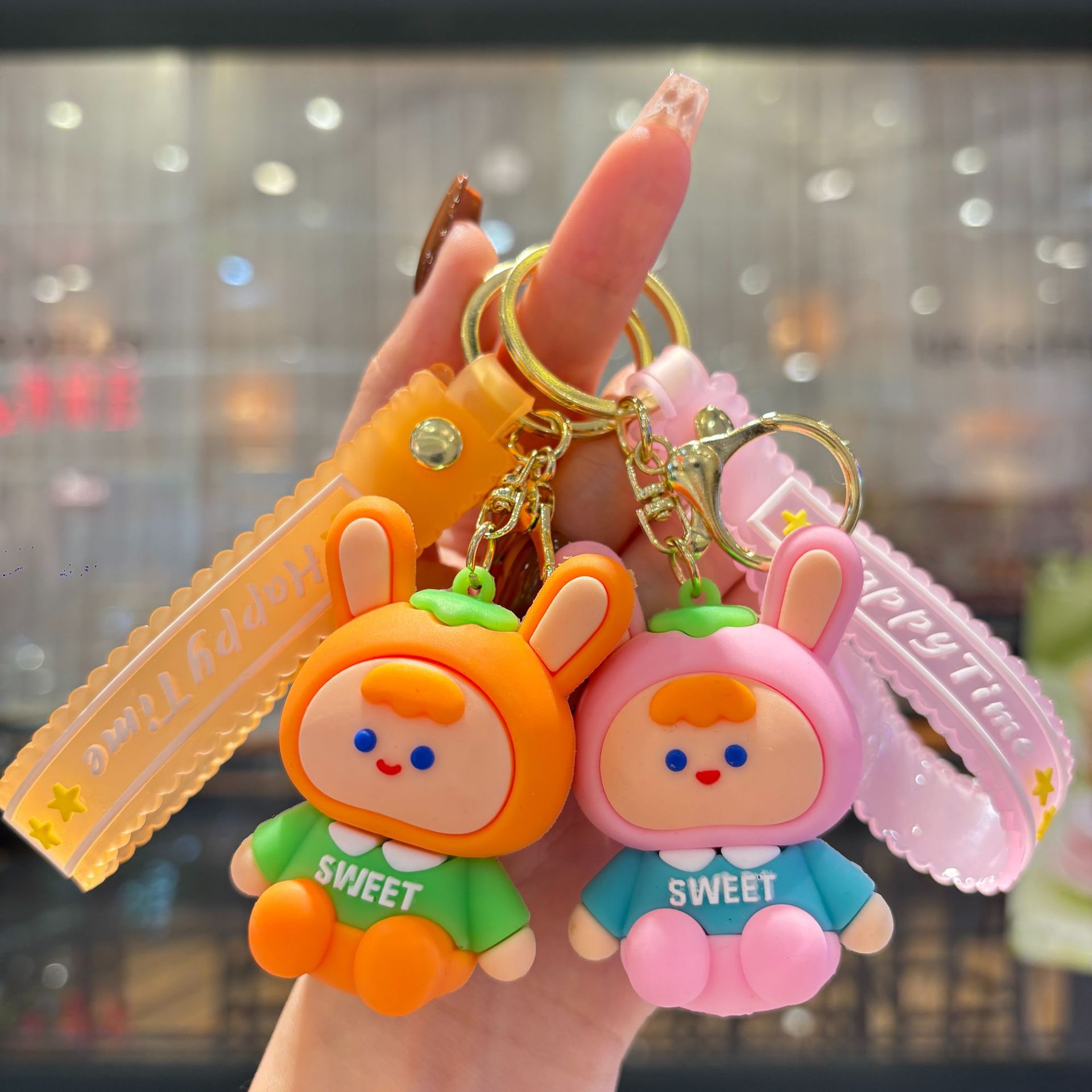 만화 새로운 달콤한 귀여운 토끼 키 체인 인터넷 연예인 귀여운 PVC 인형 펜던트 가방 펜던트 커플 액세서리스토어 가기