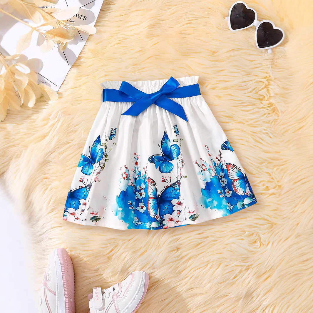 국경 간 아동 의류 소녀 스커트 2025 여름 새로운 어린이 a 라인 스커트 나비 꽃 인쇄 활