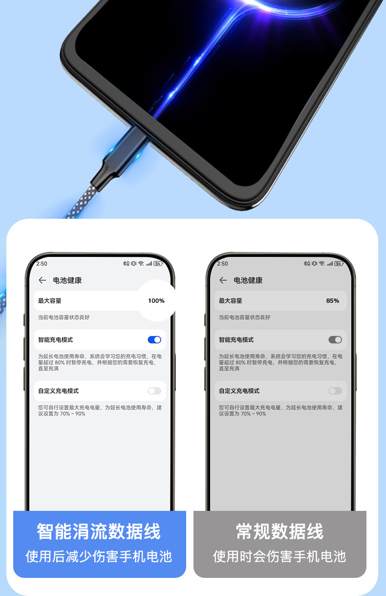 ,真正的快充线,(坚决不用市场再生铜,铜包钢0.06mm等垃圾线材)。