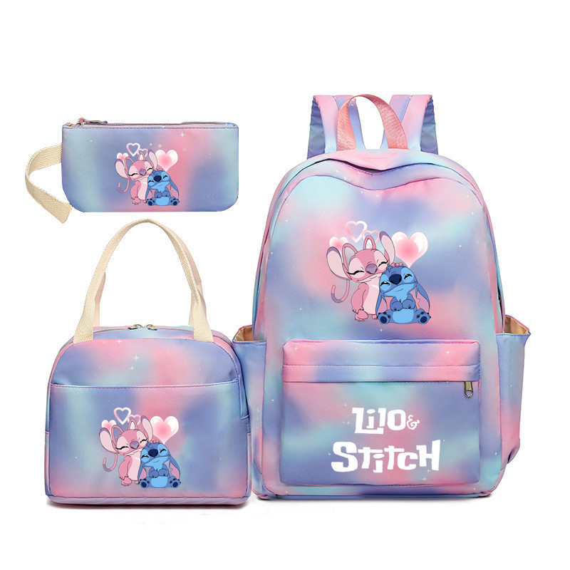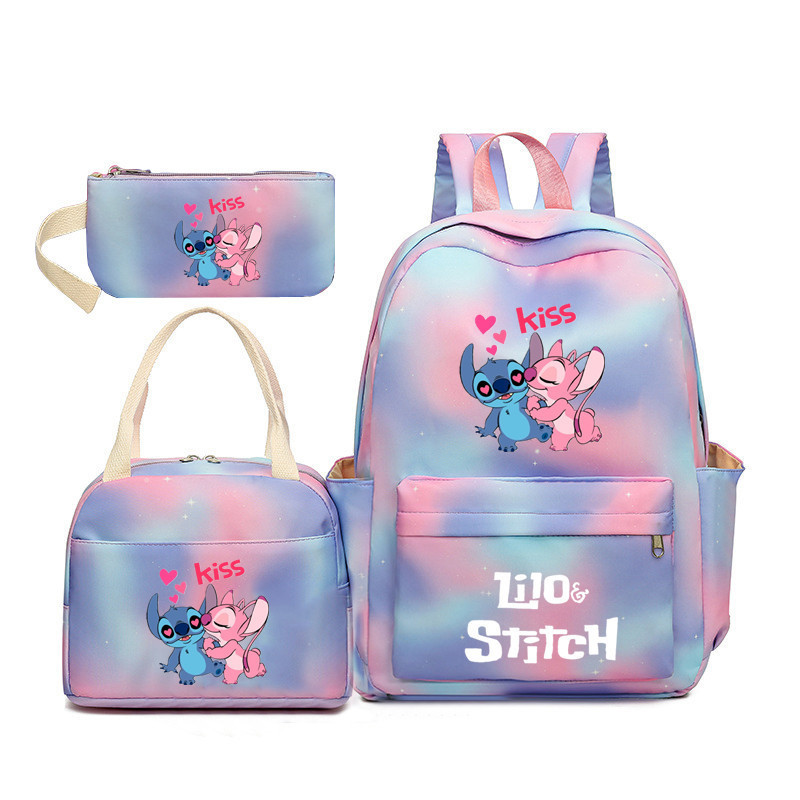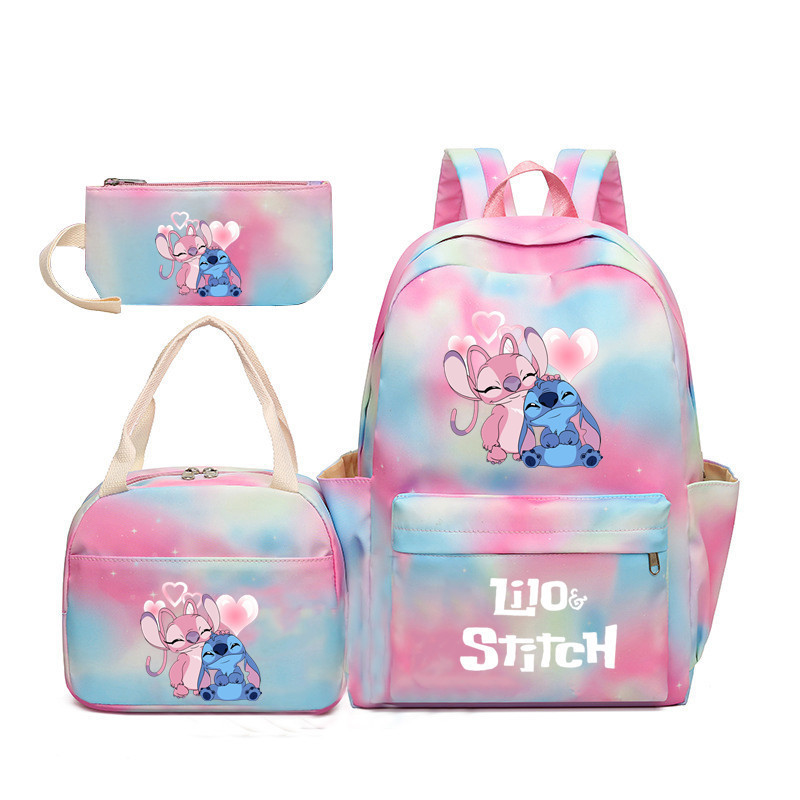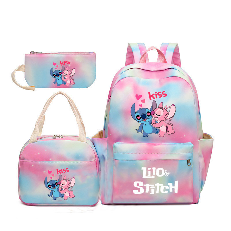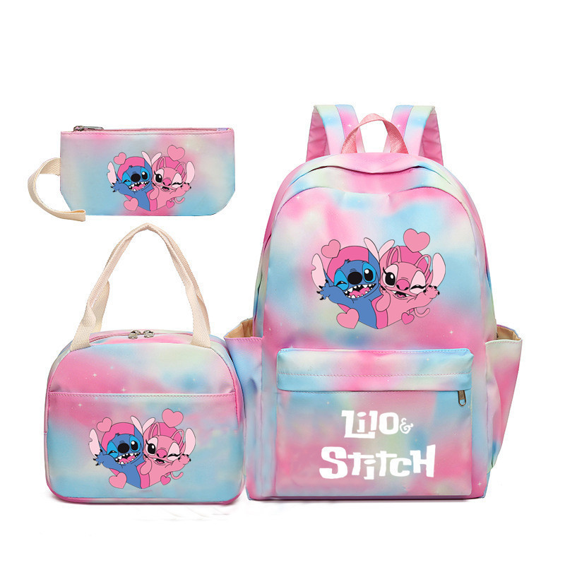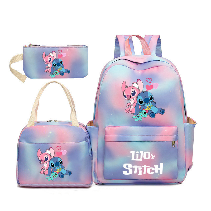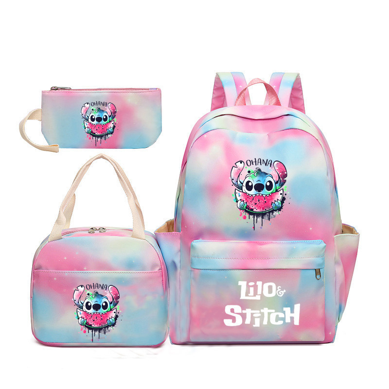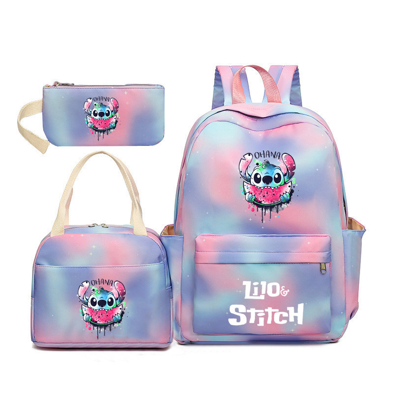 국경을 넘는 신제품 릴로와 스티치 그라데이션 컬러 레인보우 배낭 남녀 학생 3피스 도시락 가방