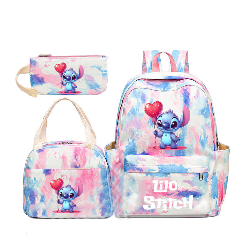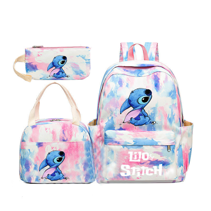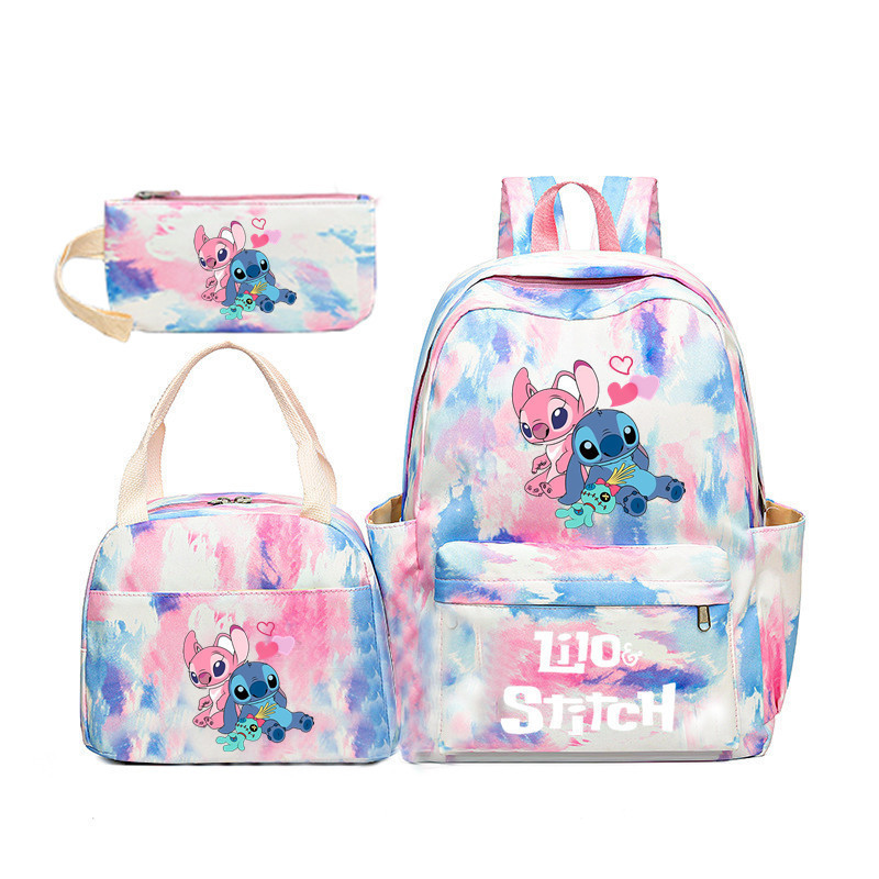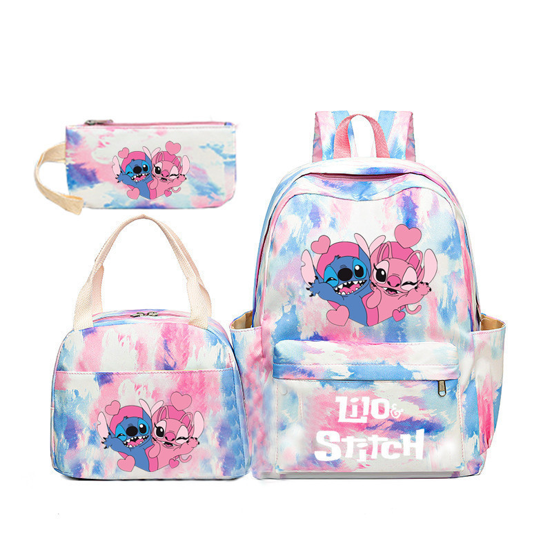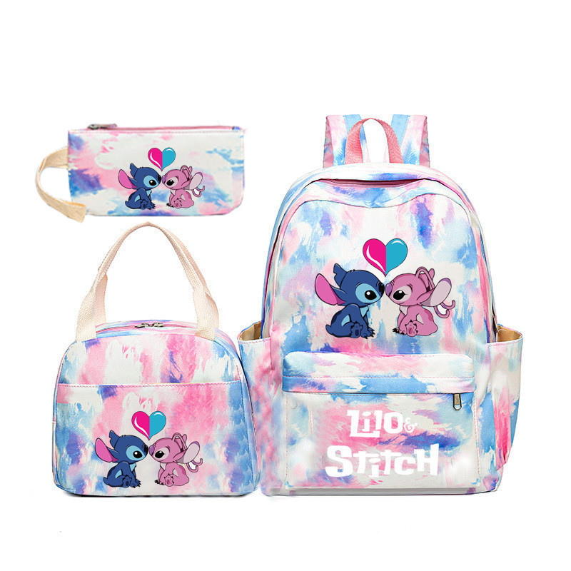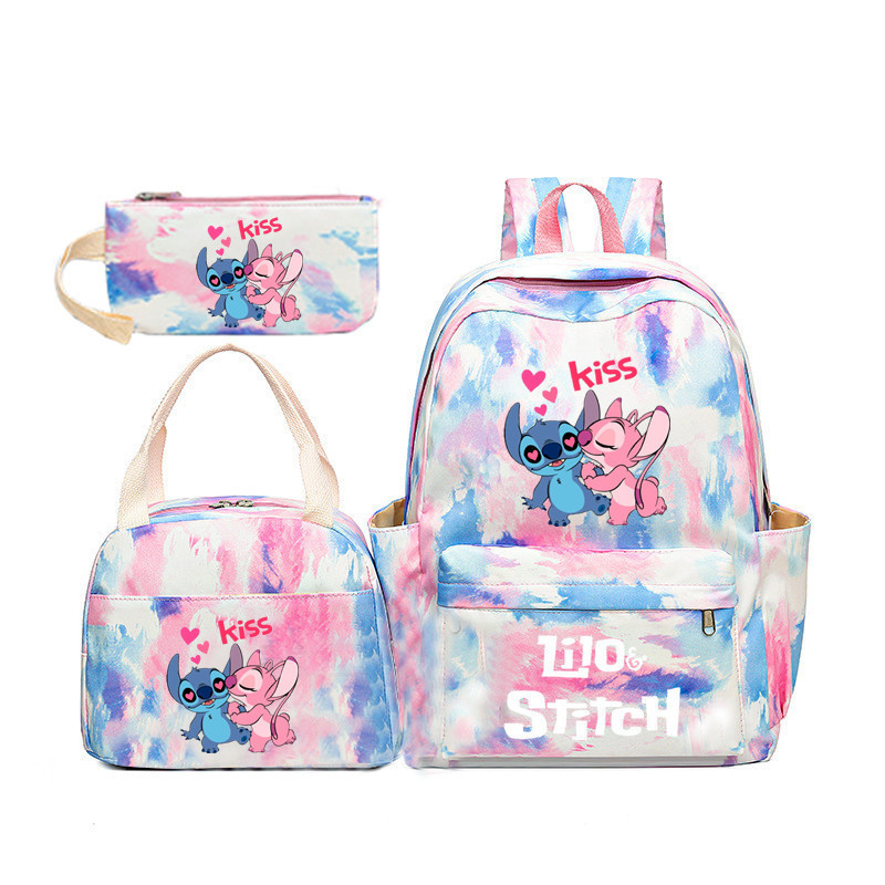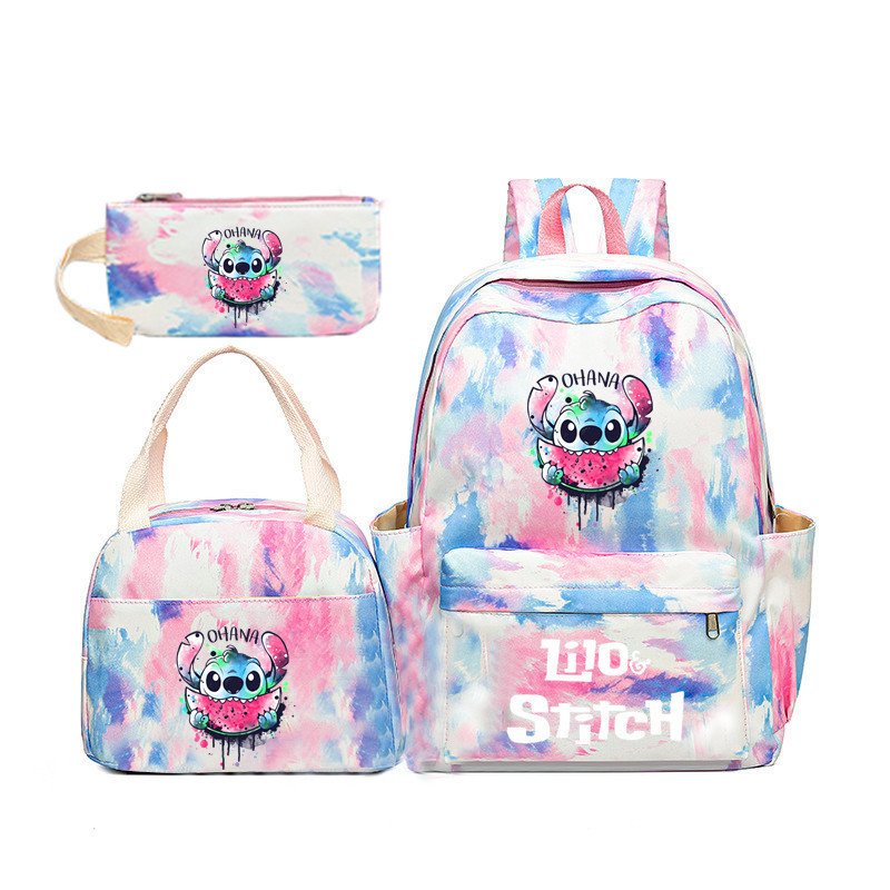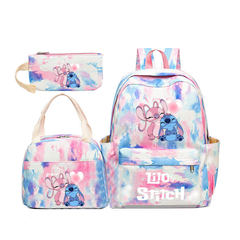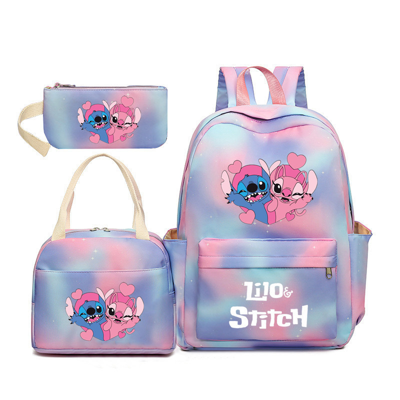 국경을 넘는 신제품 릴로와 스티치 그라데이션 컬러 레인보우 배낭 남녀 학생 3피스 도시락 가방