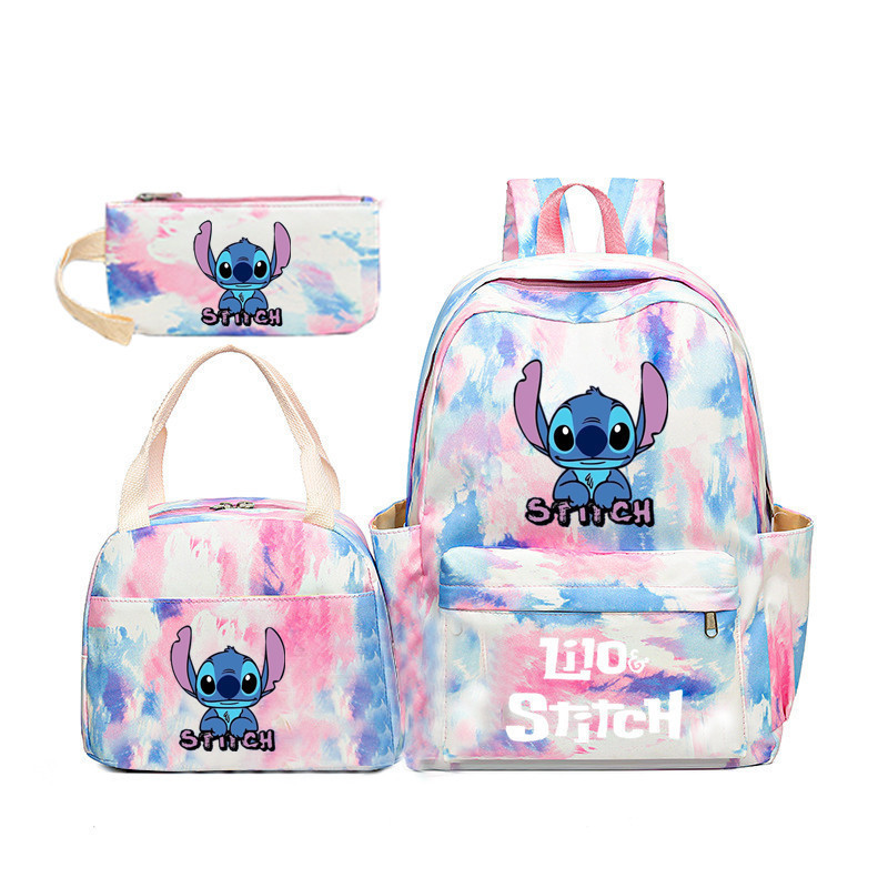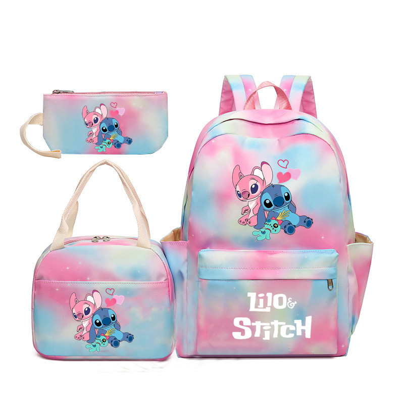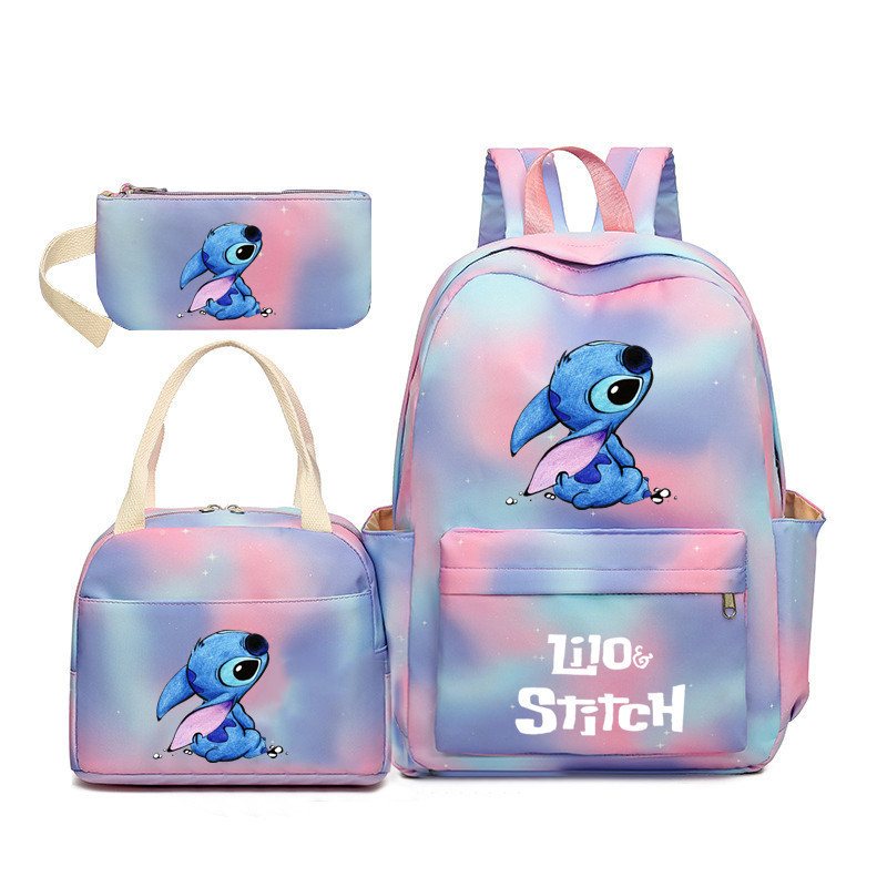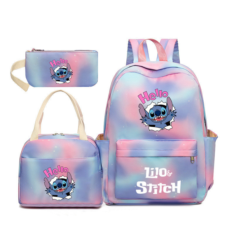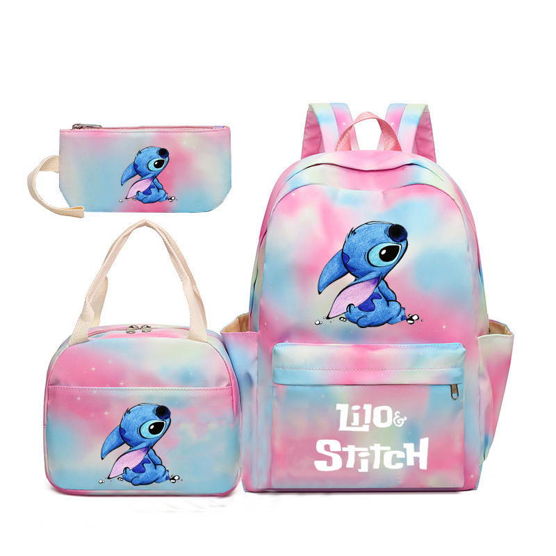 국경을 넘는 신제품 릴로와 스티치 그라데이션 컬러 레인보우 배낭 남녀 학생 3피스 도시락 가방스토어 가기
