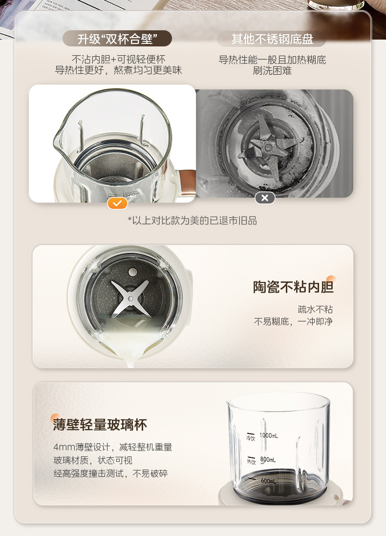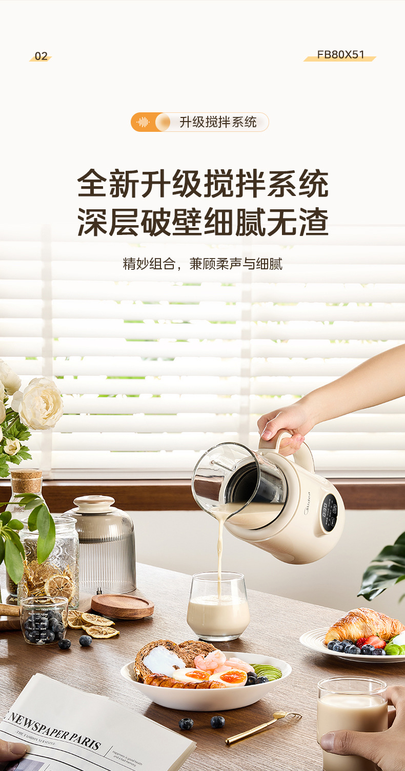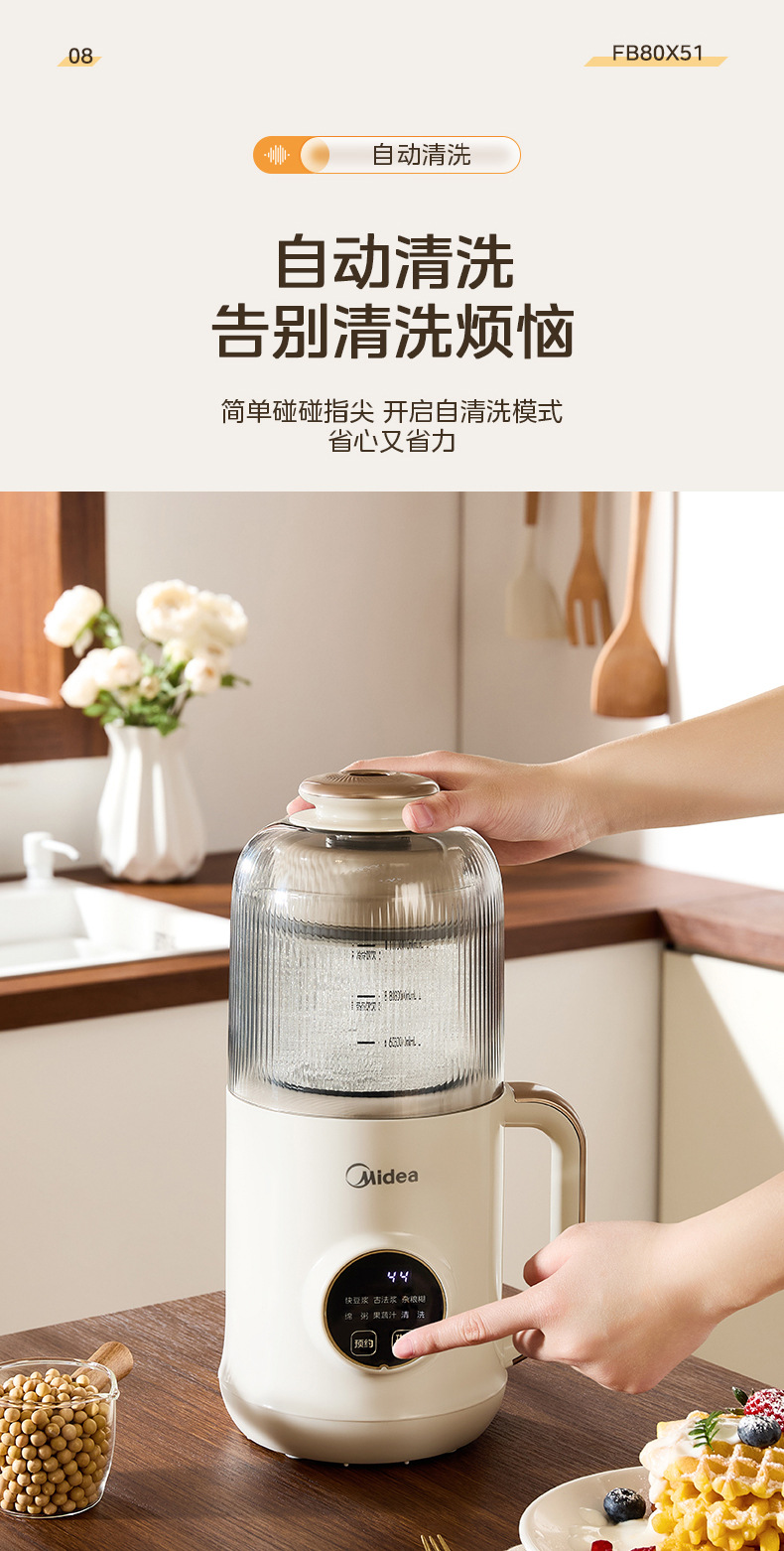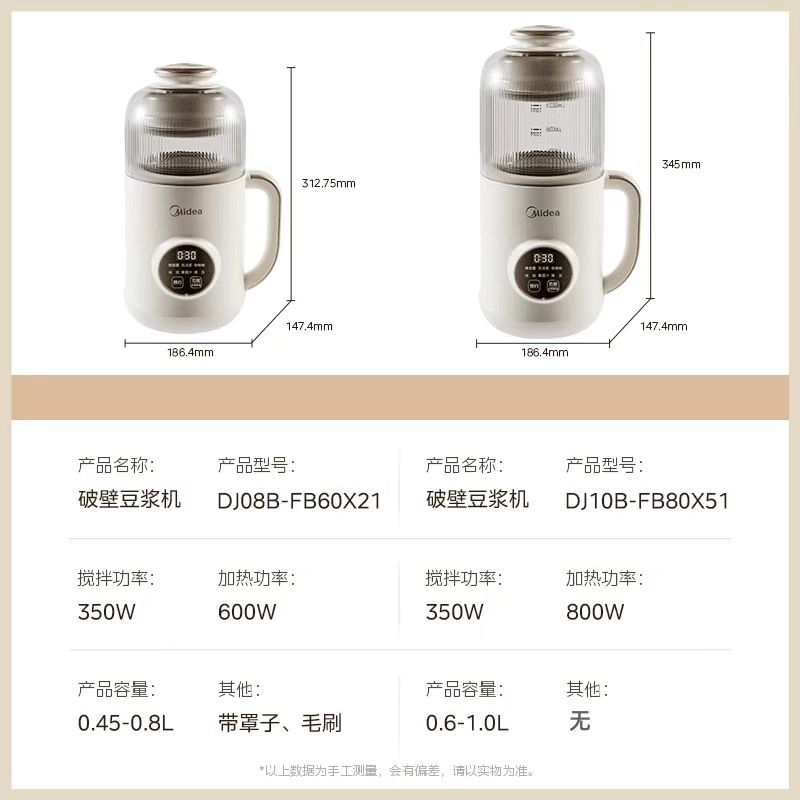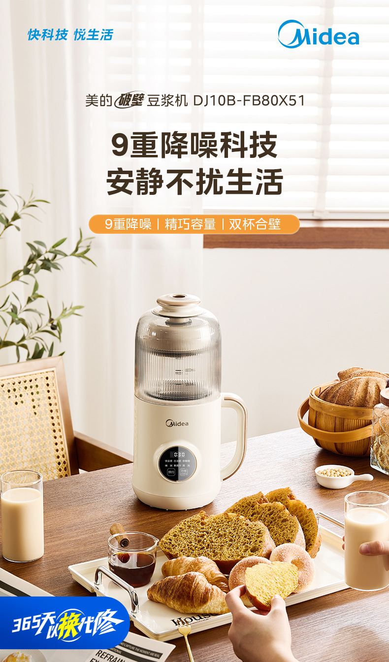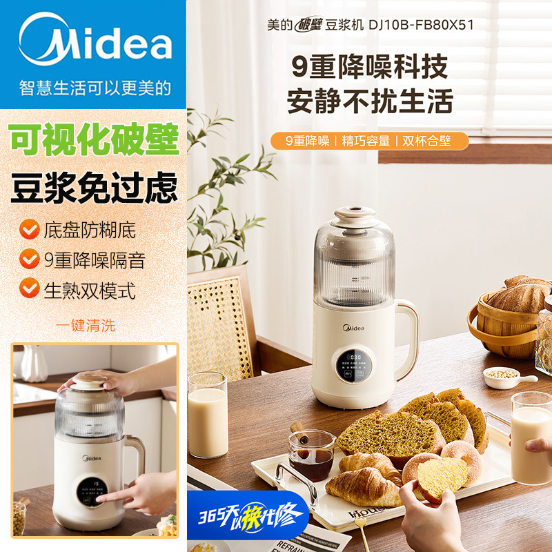 Midea 두유 기계 1L 두꺼운 수면 캐빈 라이트 사운드 소음 감소 무조리 벽 파괴 두유 기계 DJ10B-FB80X51