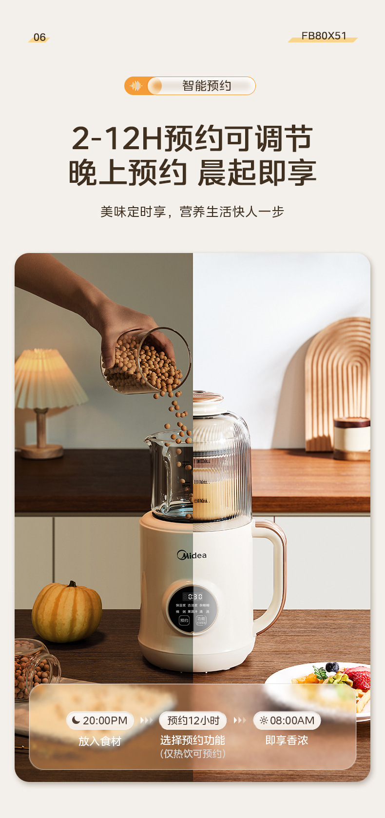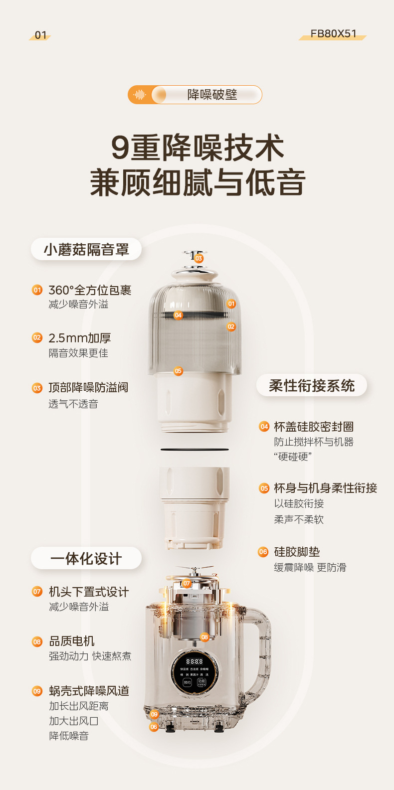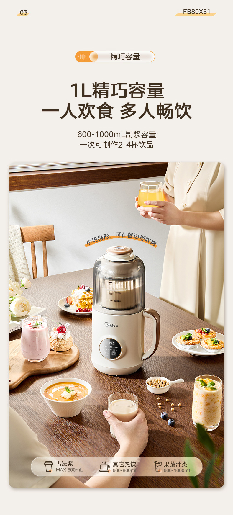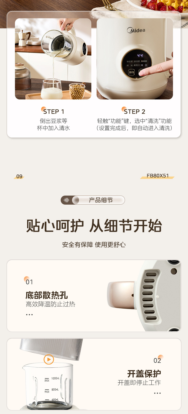 Midea 두유 기계 1L 두꺼운 수면 캐빈 라이트 사운드 소음 감소 무조리 벽 파괴 두유 기계 DJ10B-FB80X51