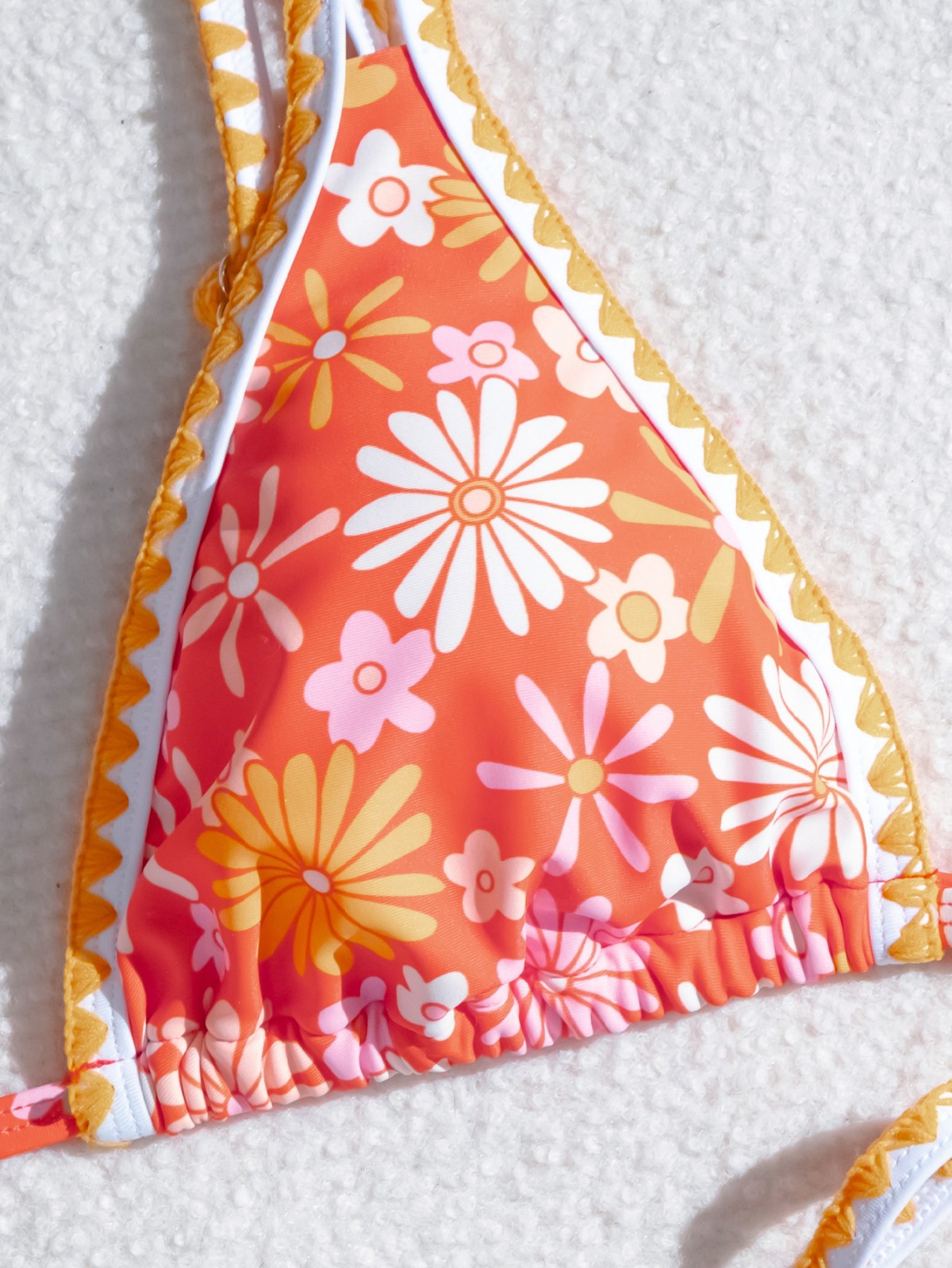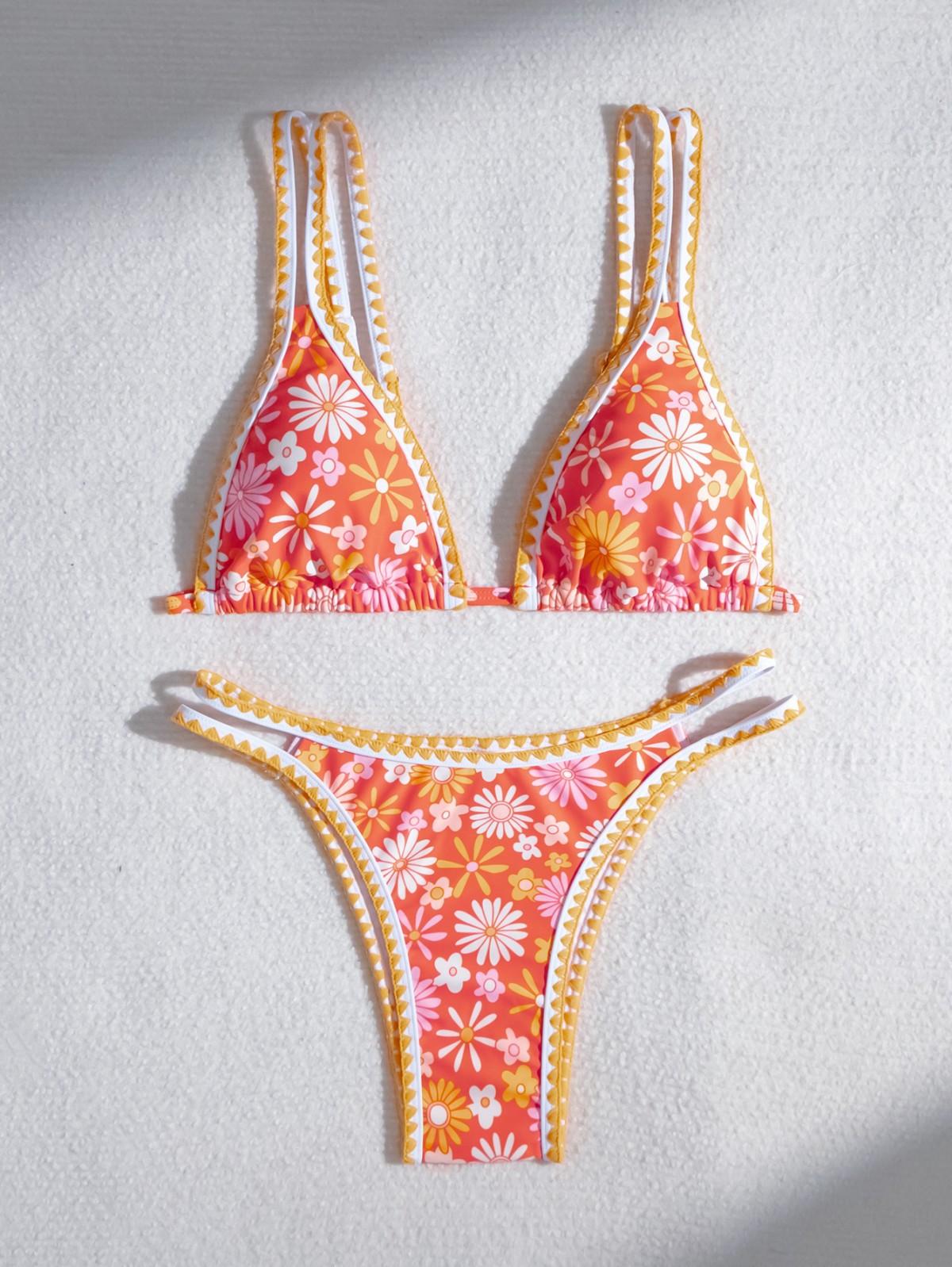 아마존 해외 무역 비키니 수영복 2025 유럽 및 미국 플로럴 프린트 끈 묶는 섹시한 여성 수영복 비키니 타이트핏스토어 가기