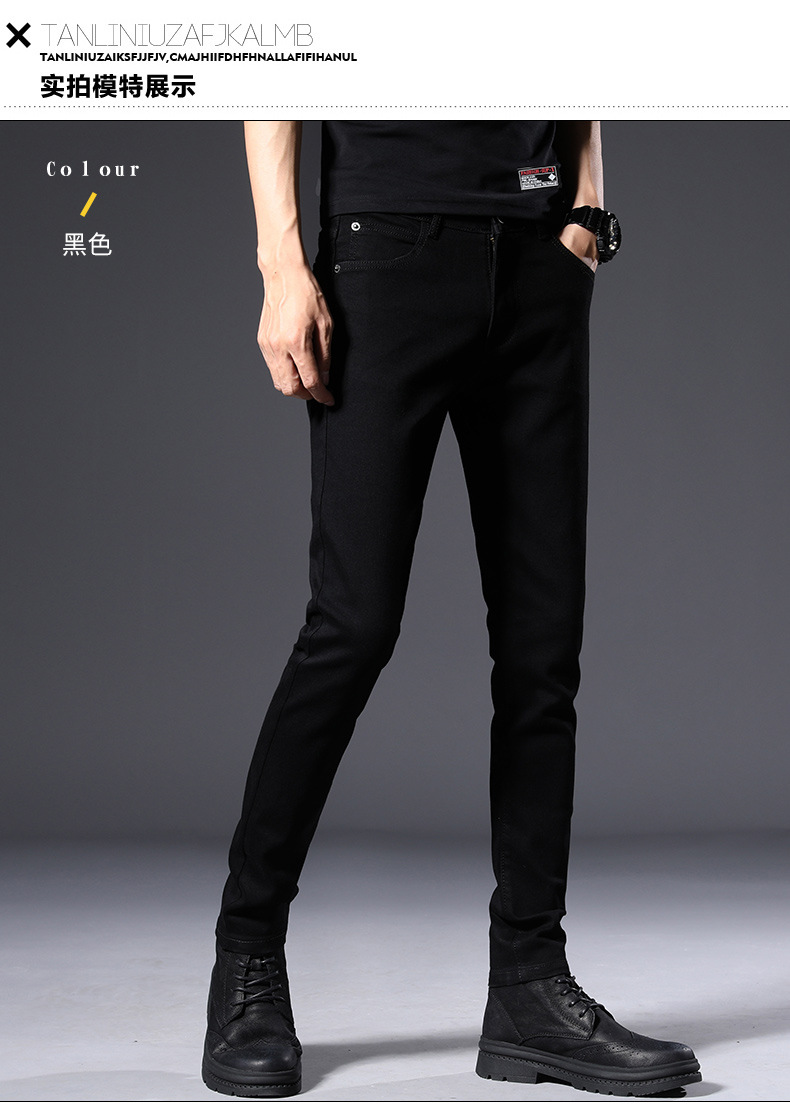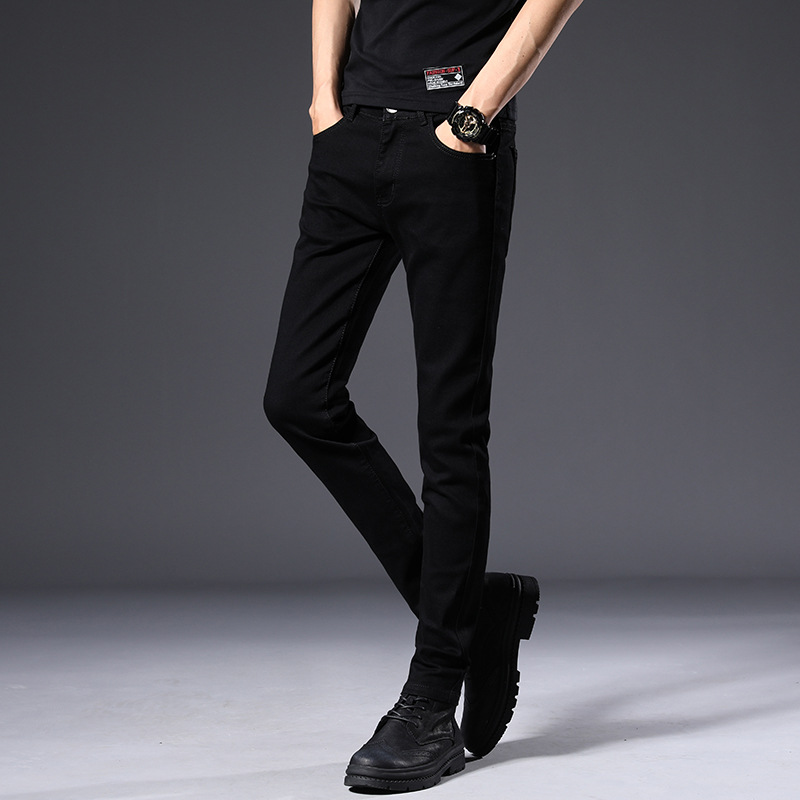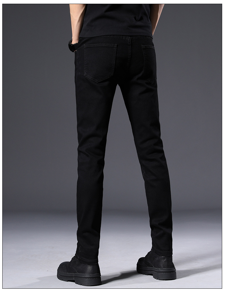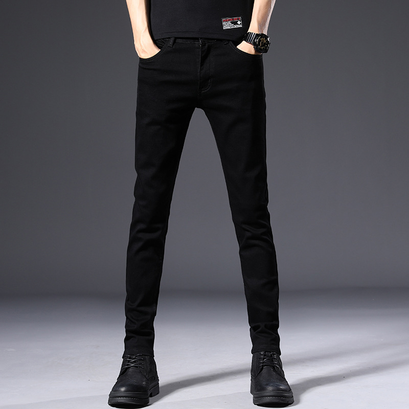 남성용 여름 신상 퓨어 블랙 청바지, 한국 스타일 트렌디 슬림핏, 슬리밍, 신축성 있는 남성용 다용도 캐주얼 팬츠