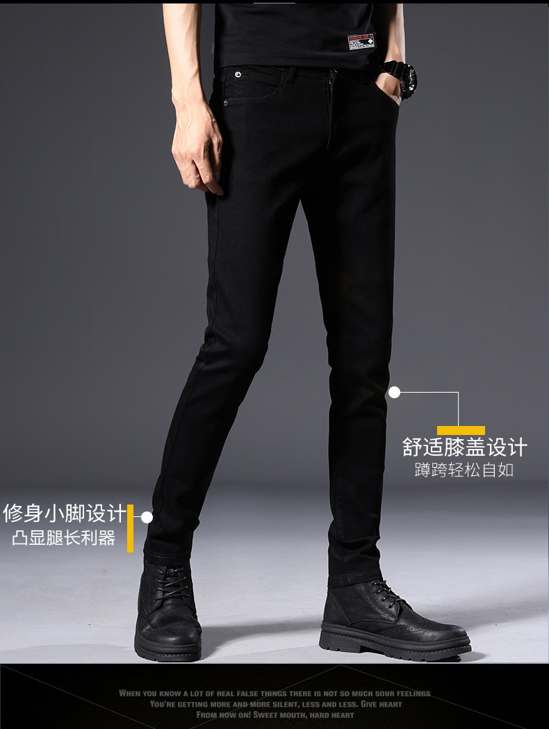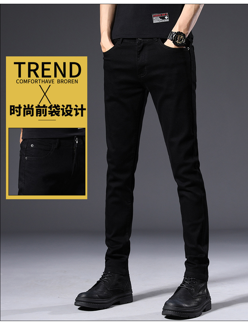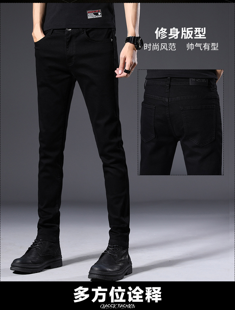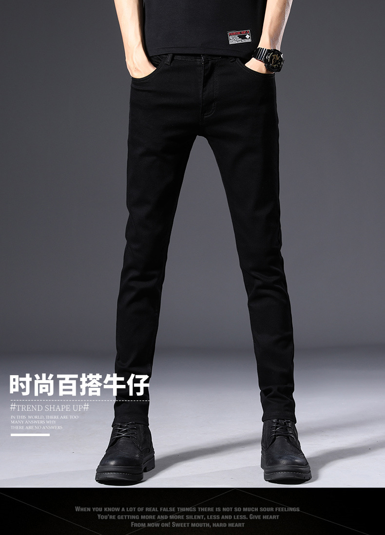 남성용 여름 신상 퓨어 블랙 청바지, 한국 스타일 트렌디 슬림핏, 슬리밍, 신축성 있는 남성용 다용도 캐주얼 팬츠