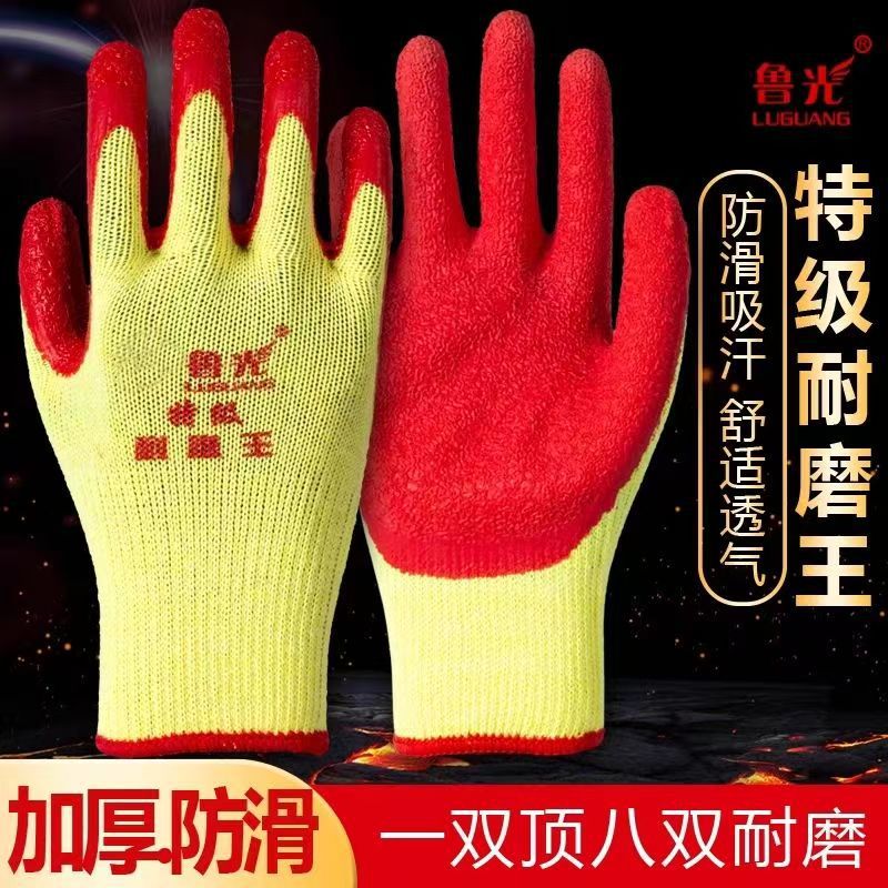 정품 Luguang 내마모성 왕 장갑, 통기성, 주름형, 내마모성, 미끄럼 방지, 두꺼운 철근 작업자 유지 보수 및 내구성 건설 현장스토어 가기