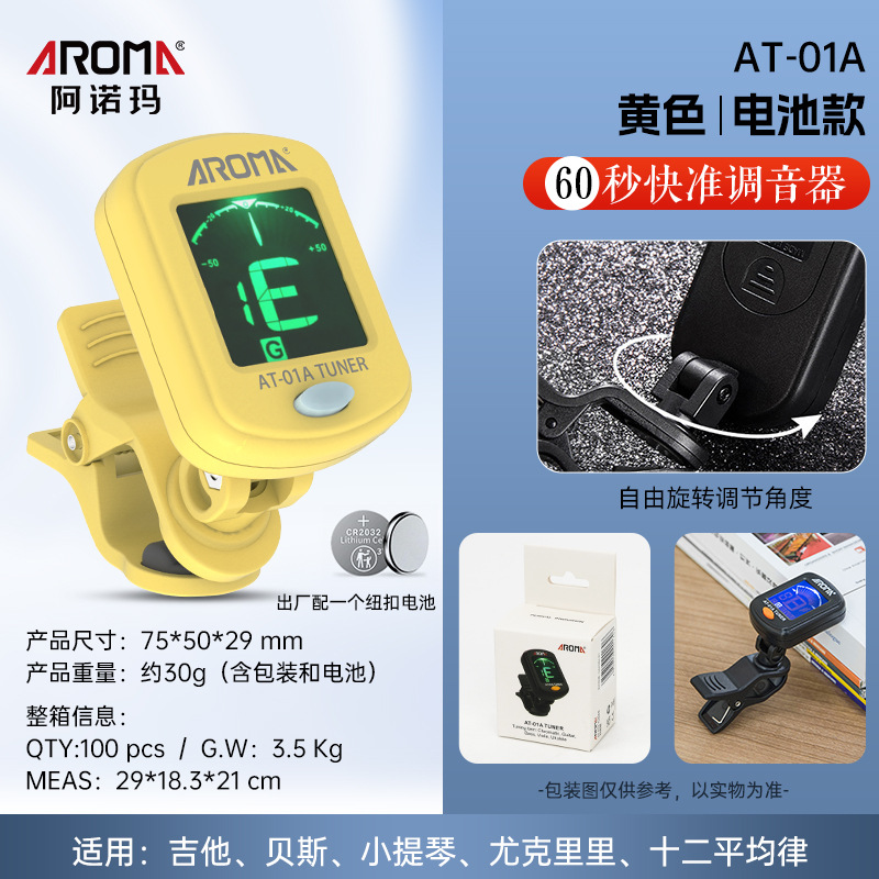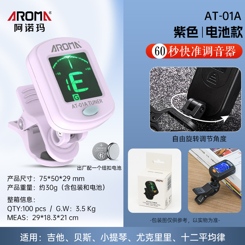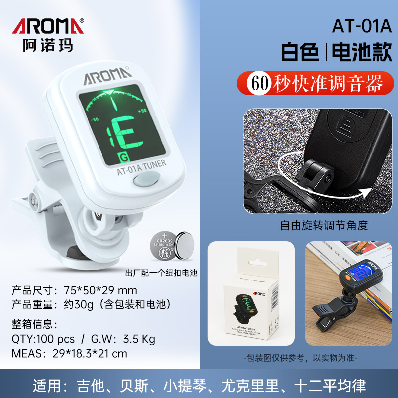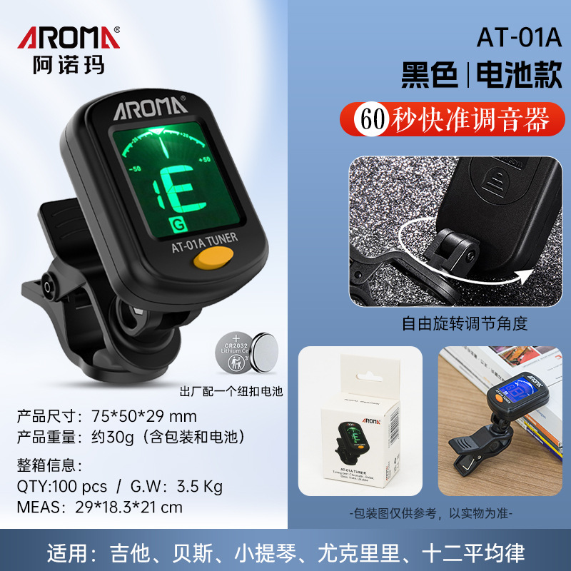 AROMA Arnoma 기타 튜너 포크 AT-01A 우쿨렐레 바이올린 튜닝 악기 유니버설