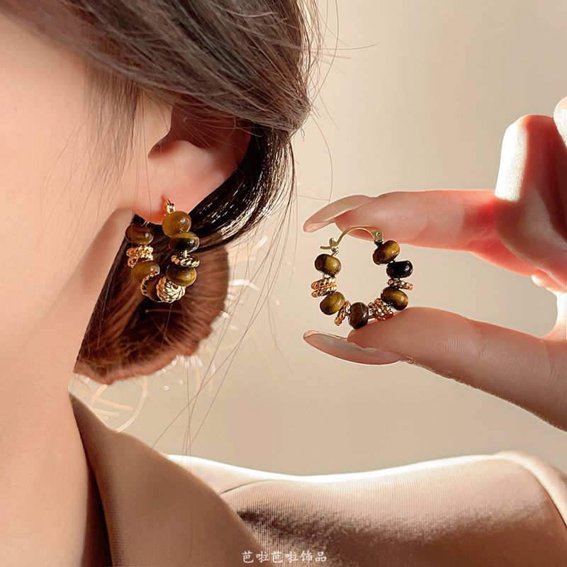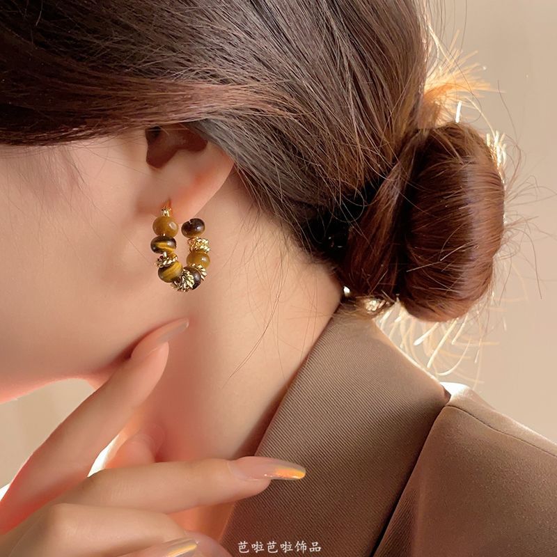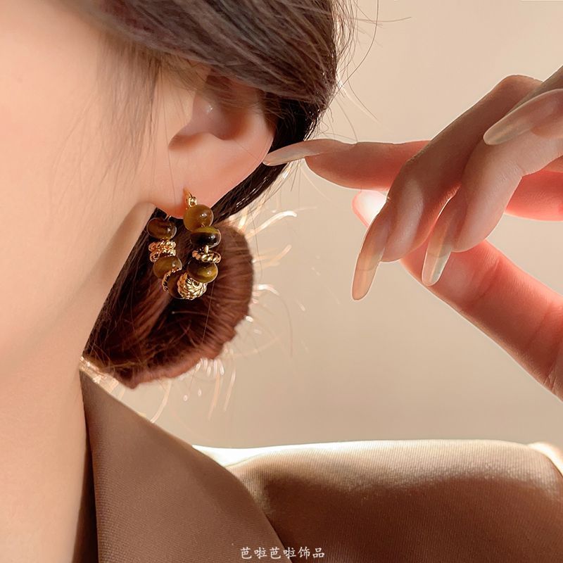 Maillard Tiger Eye Stone 빈티지 귀걸이 Ear 버클 2024 여성을위한 새로운 폭발성 귀걸이 틈새 조명 럭셔리 하이 엔드 귀걸이