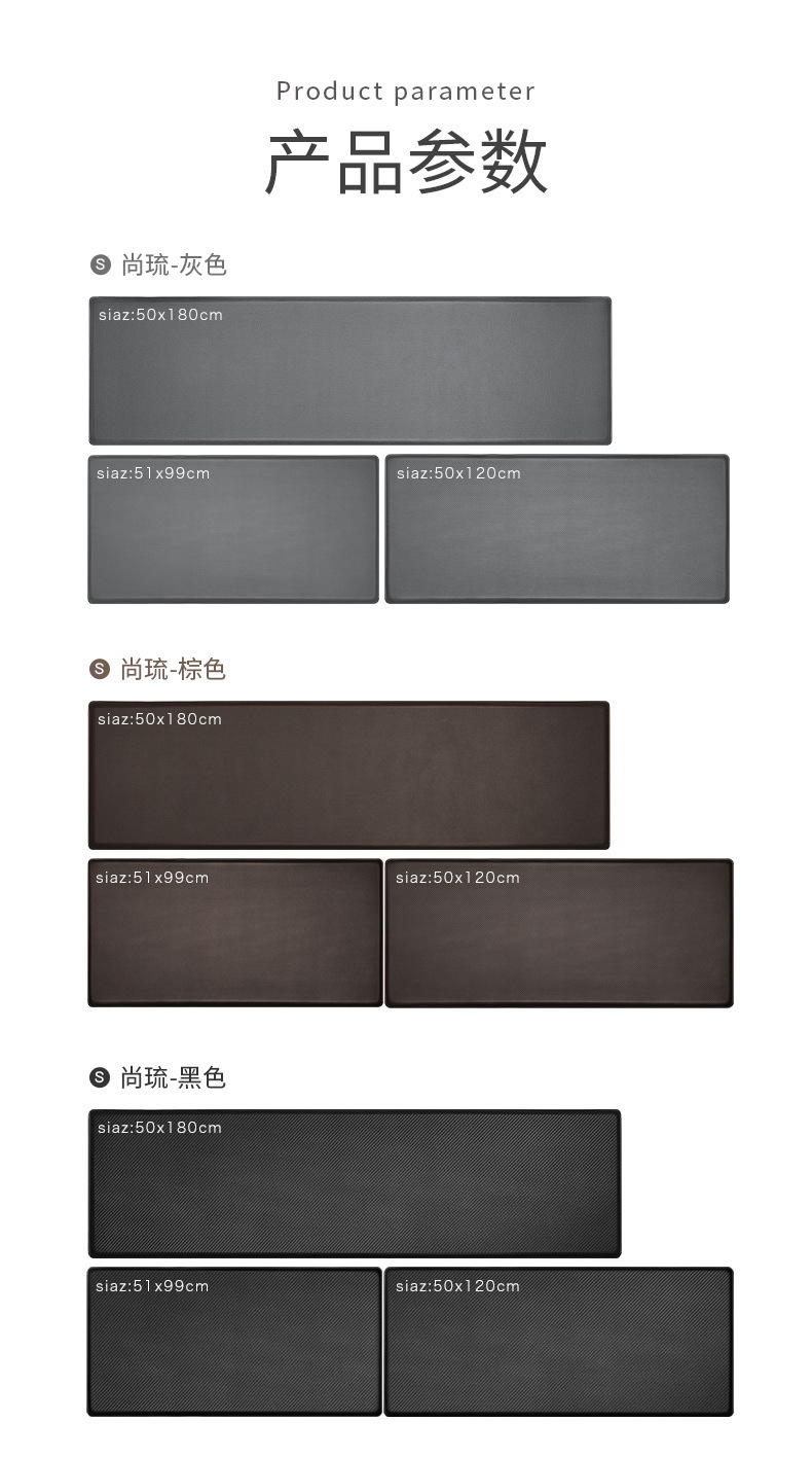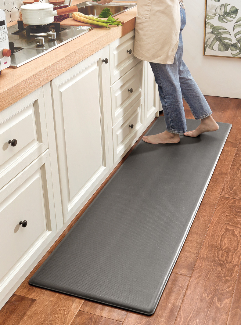 현대적인 간단한 두꺼운 주방 PU 가죽 미끄럼 방지 매트 오일 방지 발 매트 가정용 세척 가능하고 닦아 낼 수 있는 긴 카펫 바닥 매트