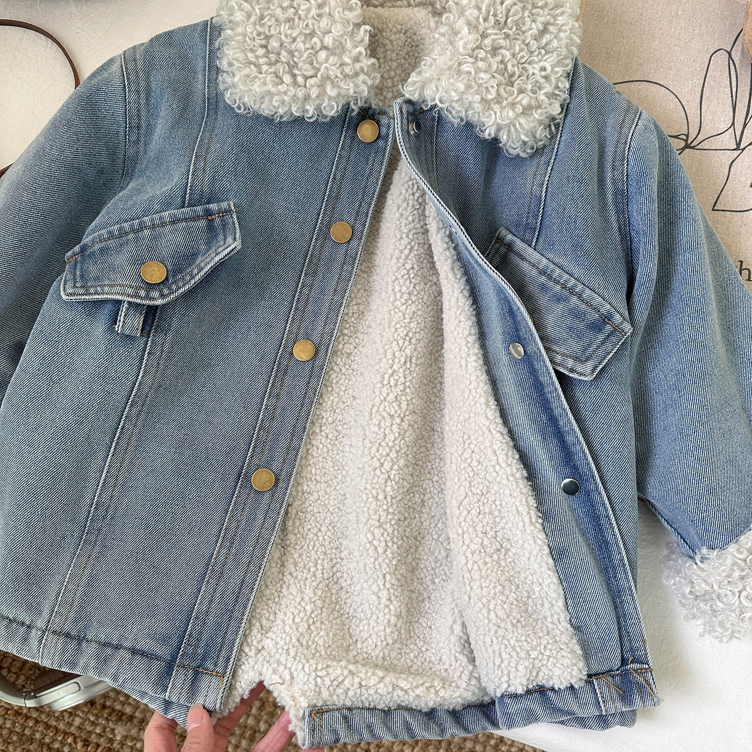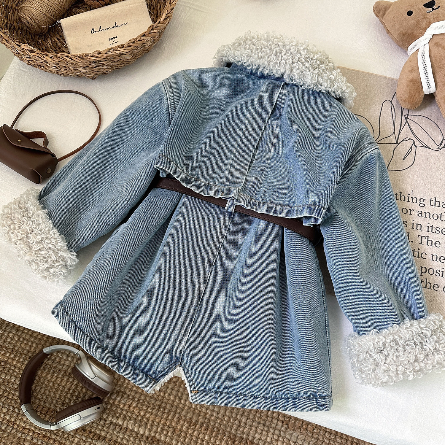 어린이 데님 드레스 새로운 겨울 소녀 기질 블루 긴팔 데님 두꺼운 어린이 스커트 베이비 코트