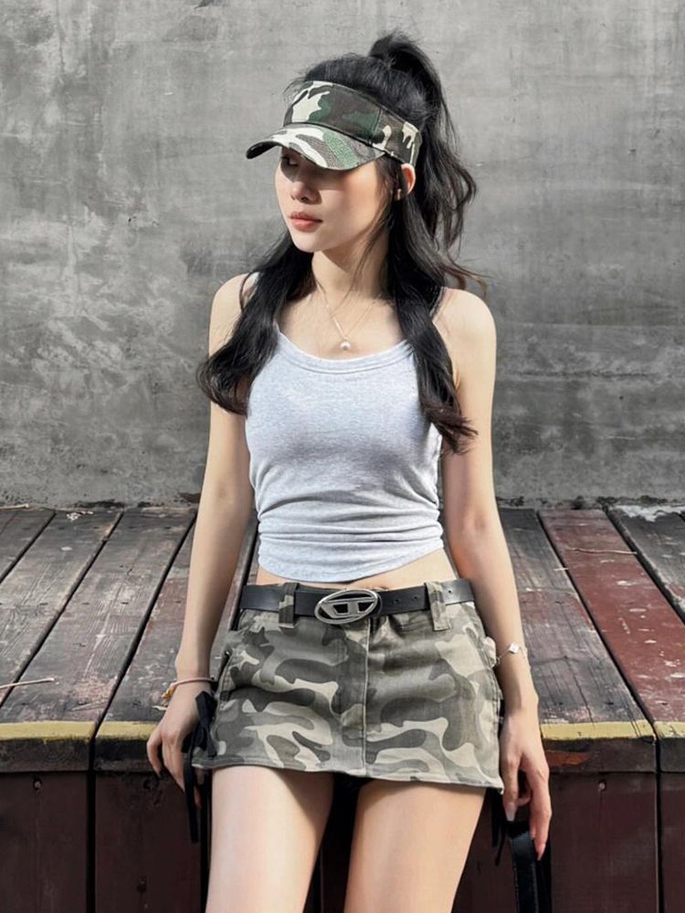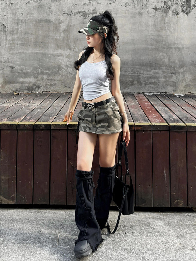 아메리칸 레트로 핫걸 카모플라주 섹시 힙 커버 데님 스커트 여성 하이 스트리트 노출 방지 초단기 스커트스토어 가기
