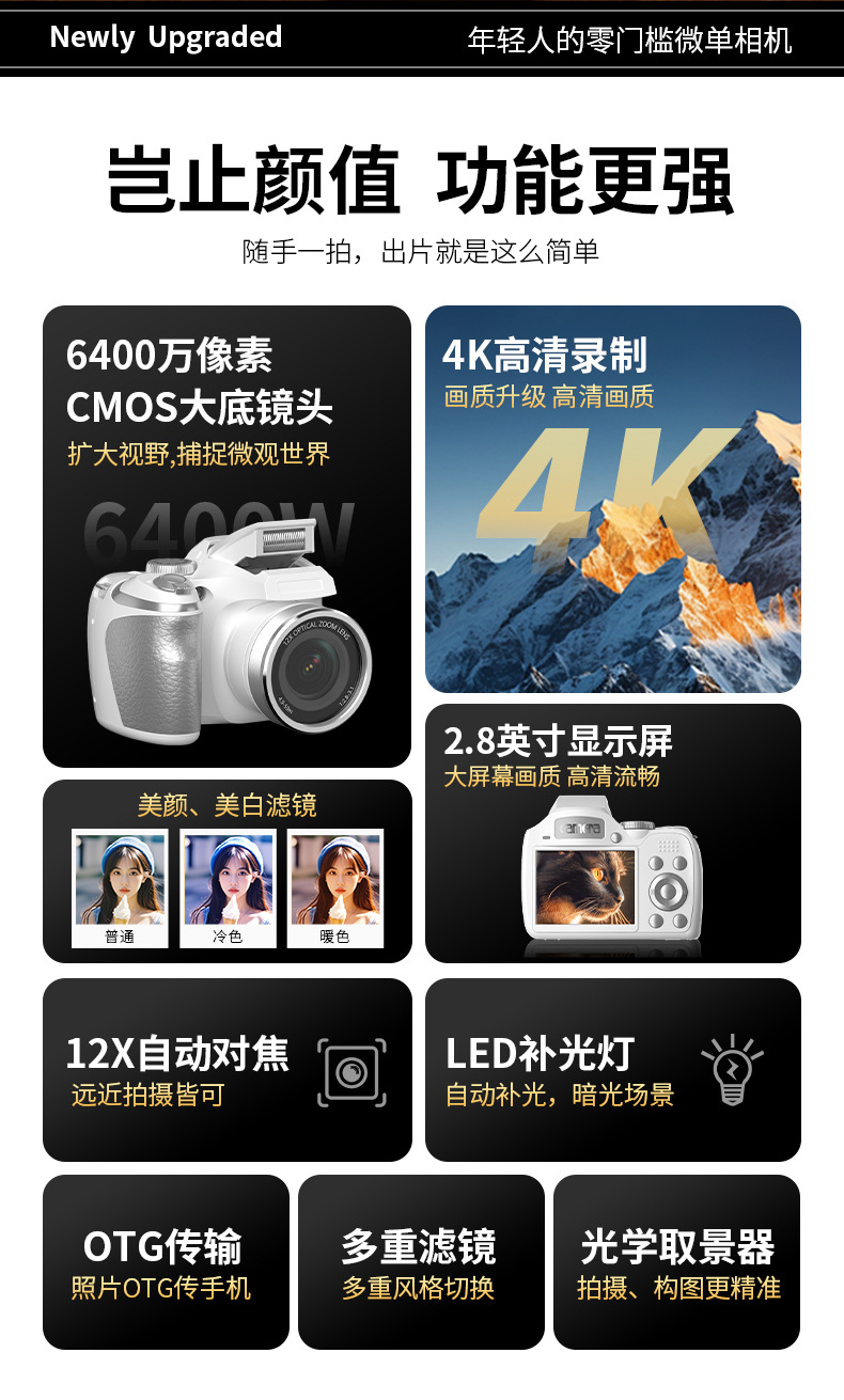 고화질 듀얼 카메라 CCD 디지털 카메라 4K 학생 보급형 단일 레트로 여행 사진 비디오 휴대용 소형 미러리스 카메라