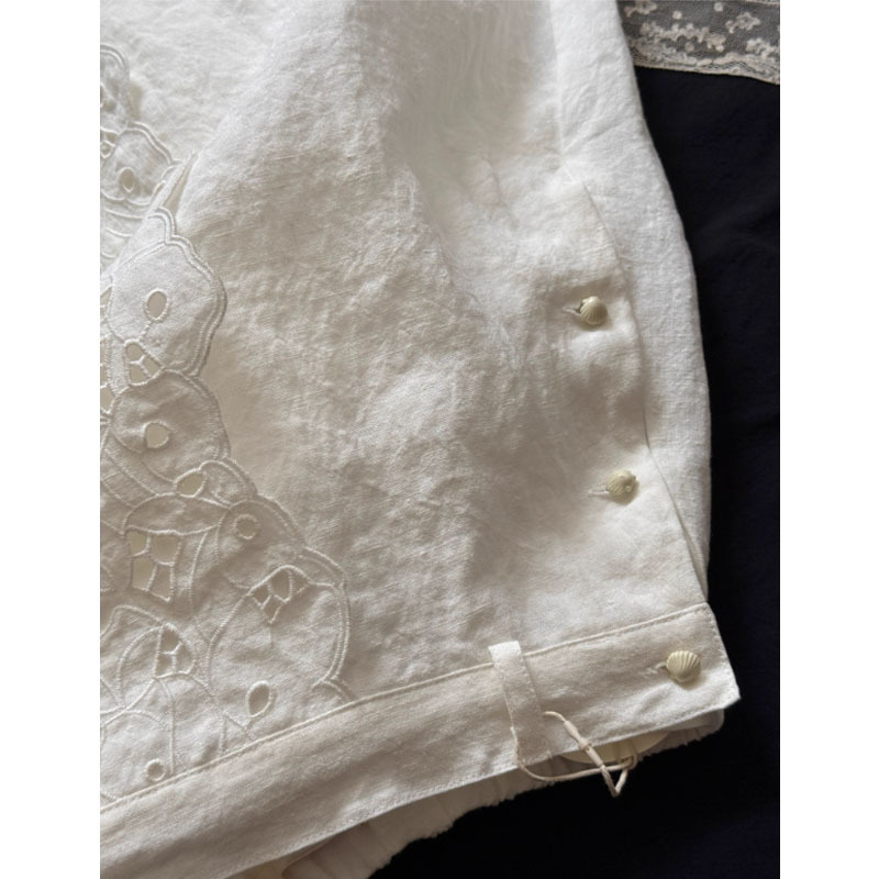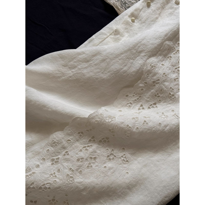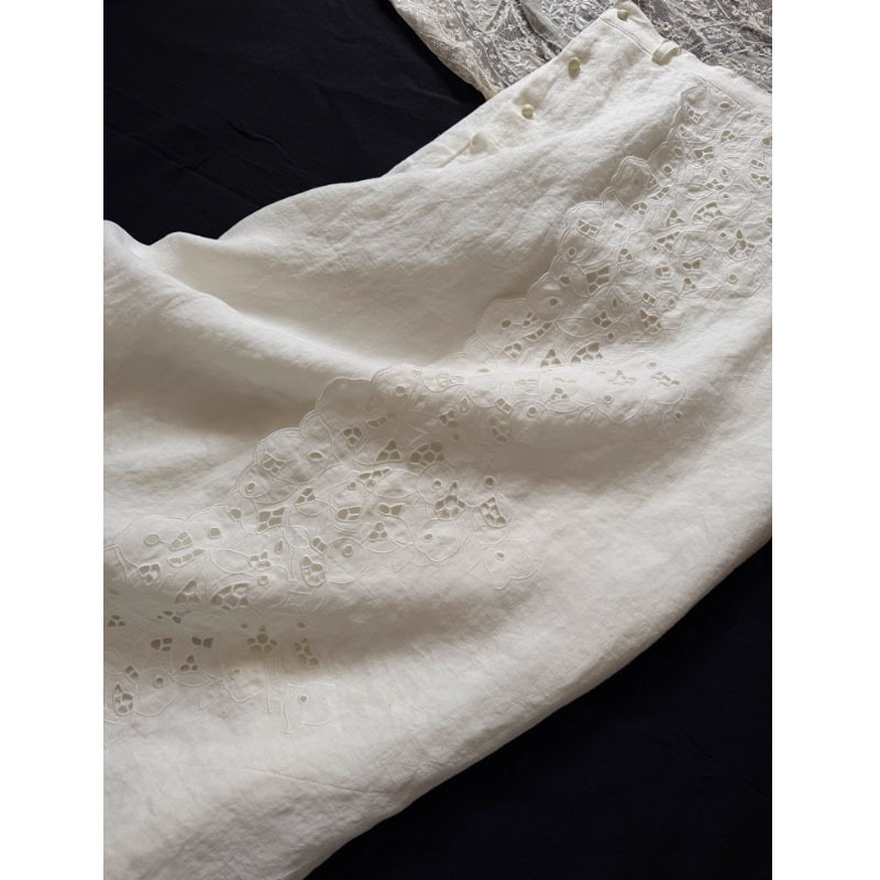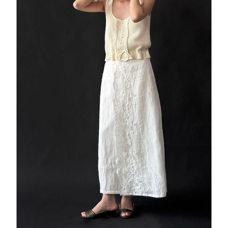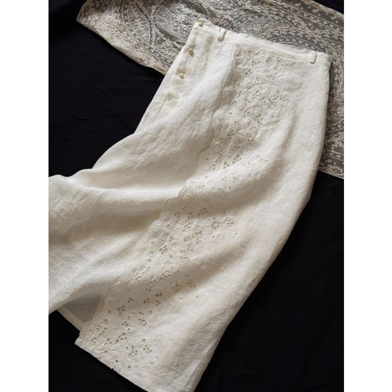 2025년 여름 풀폭 핸드컷 중공 린넨 헤비 자수 슬릿 스트레이트 스커트 여성용 중간 길이스토어 가기