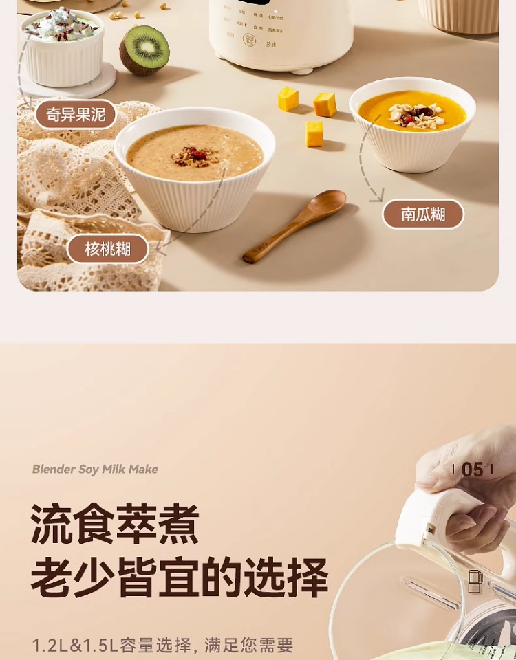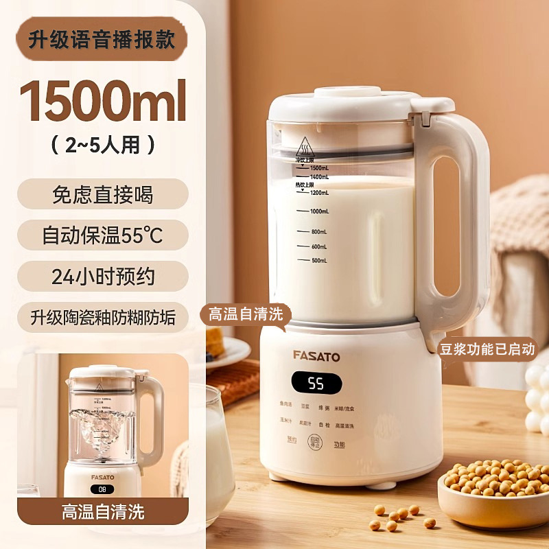 • 1.5L 크림 화이트 [16잎 스테인레스 스틸 칼] 업그레이드된 페이스트 방지 및 스케일 방지