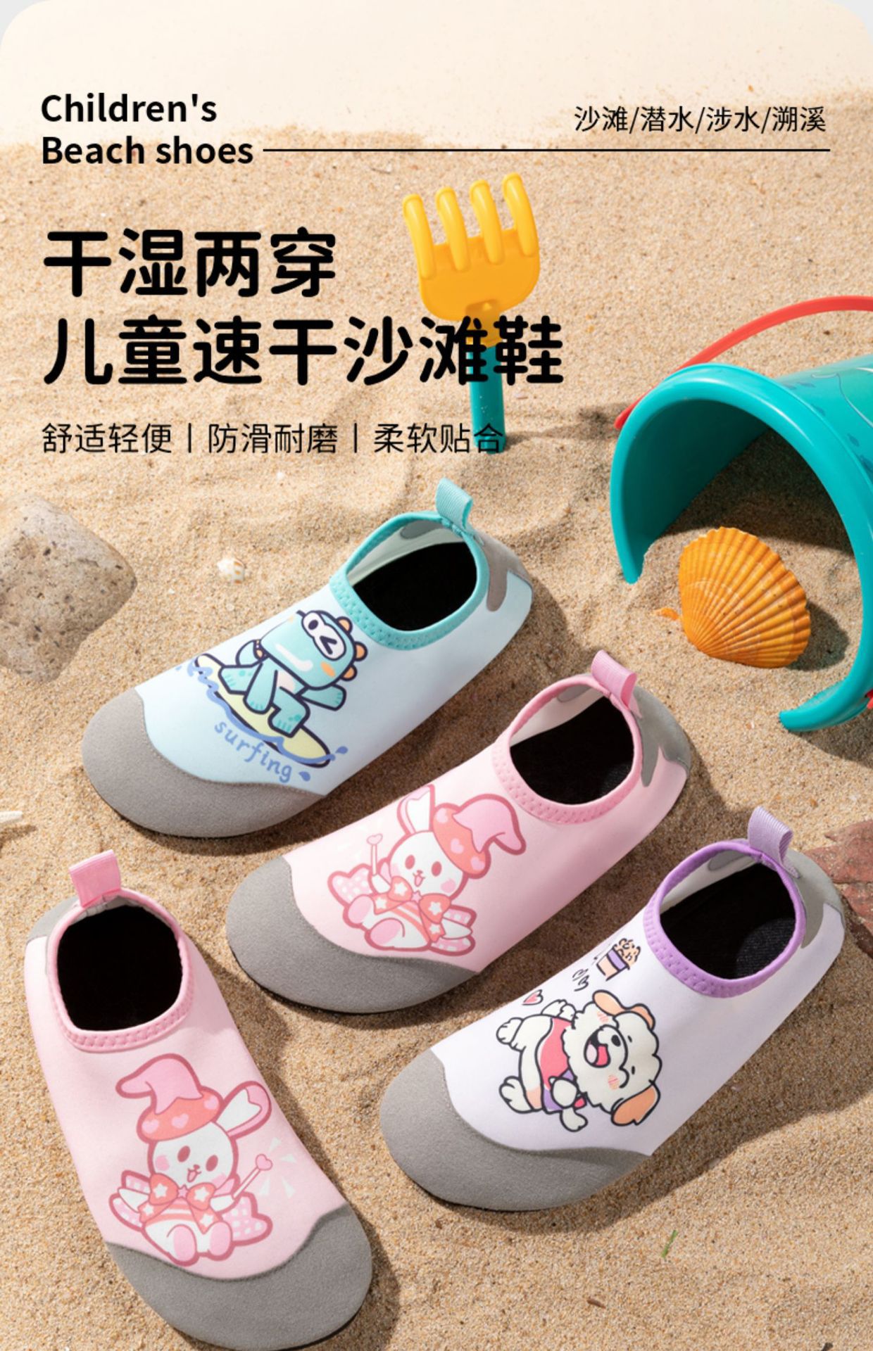 남아 및 여아용 아동용 해변 신발, 미끄럼 방지 및 절단 방지 부드러운 밑창 강 신발, 워터 파크 해변 맨발 특수 피부 친화적 신발