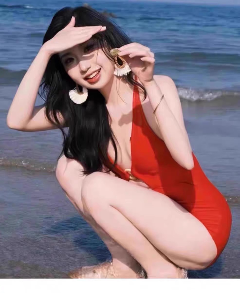 고양이가 되어보세요 복고풍 홍콩 스타일 섹시한 딥 V 레드 화이트 원피스 백리스 슬리밍 비치 온천 수영복 여성용