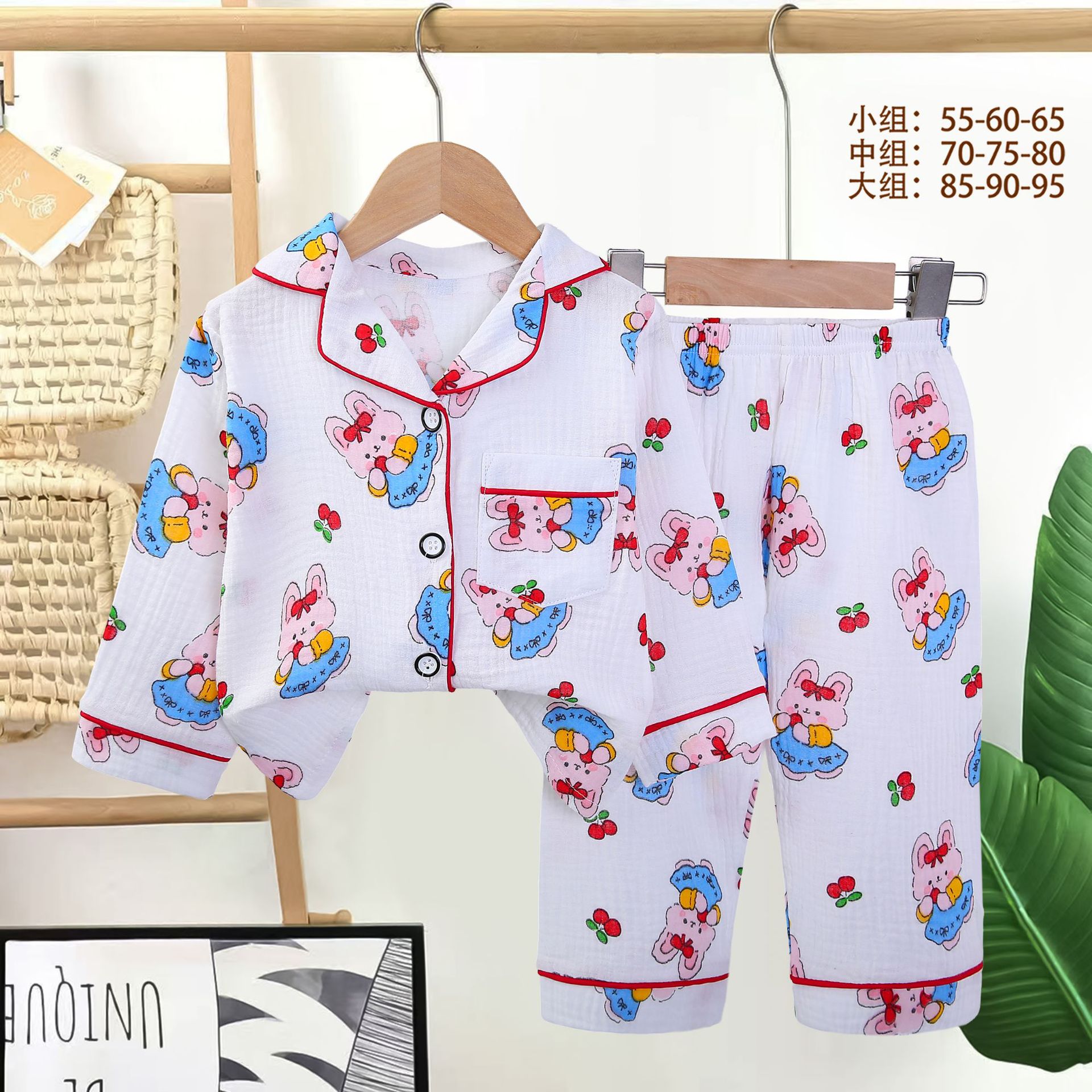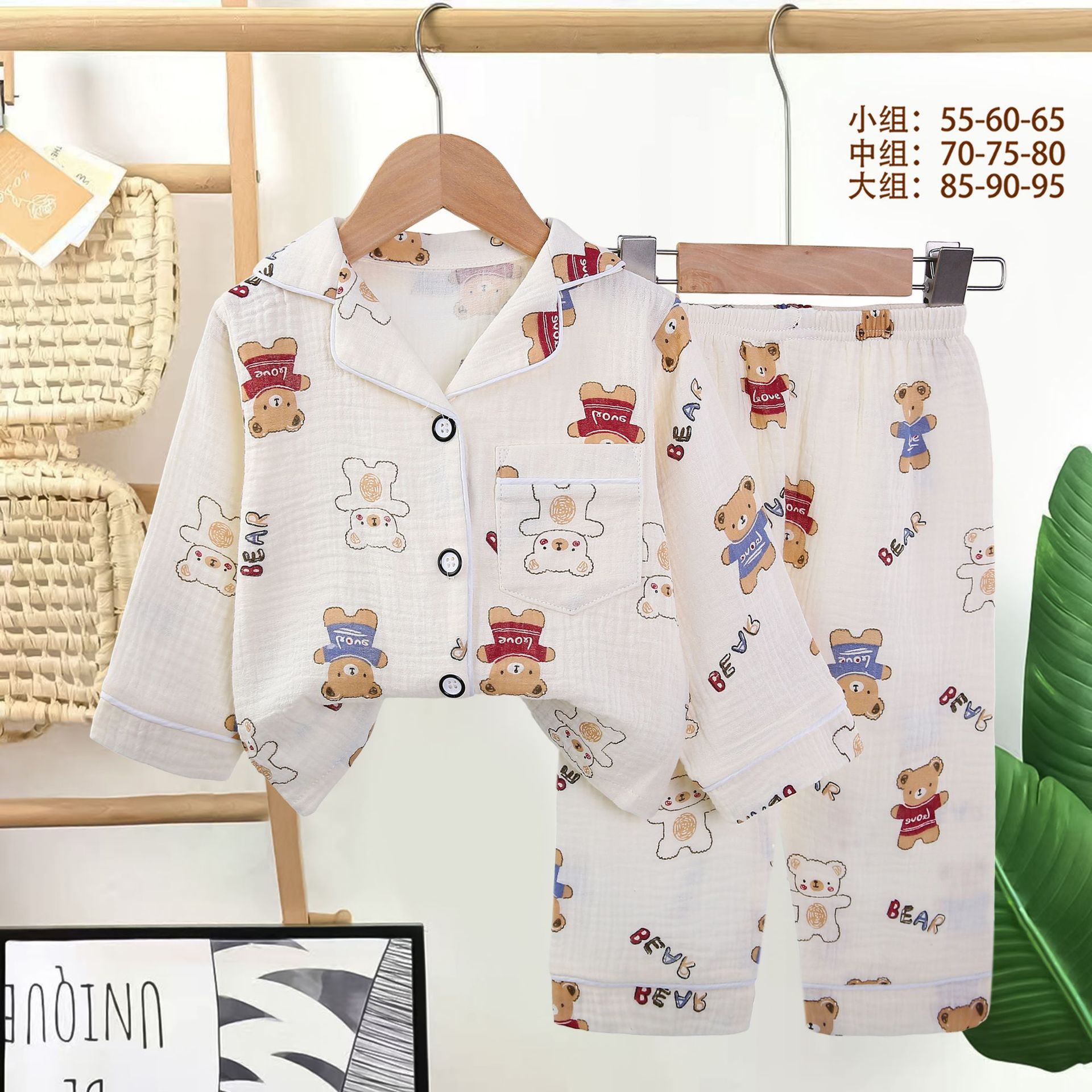 Pajamas2025 어린이 잠옷 여름 면사 소년과 소녀 가정 의류 아기 에어컨 의류 세트 얇은스토어 가기