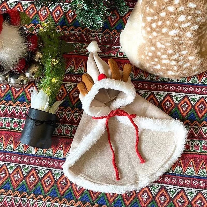 새해 분위기가 가득한 크리스마스 드레스, 작은 망토, 사슴뿔, 크리스마스 트리, 고양이 옷, 애완 고양이와 강아지 목도리