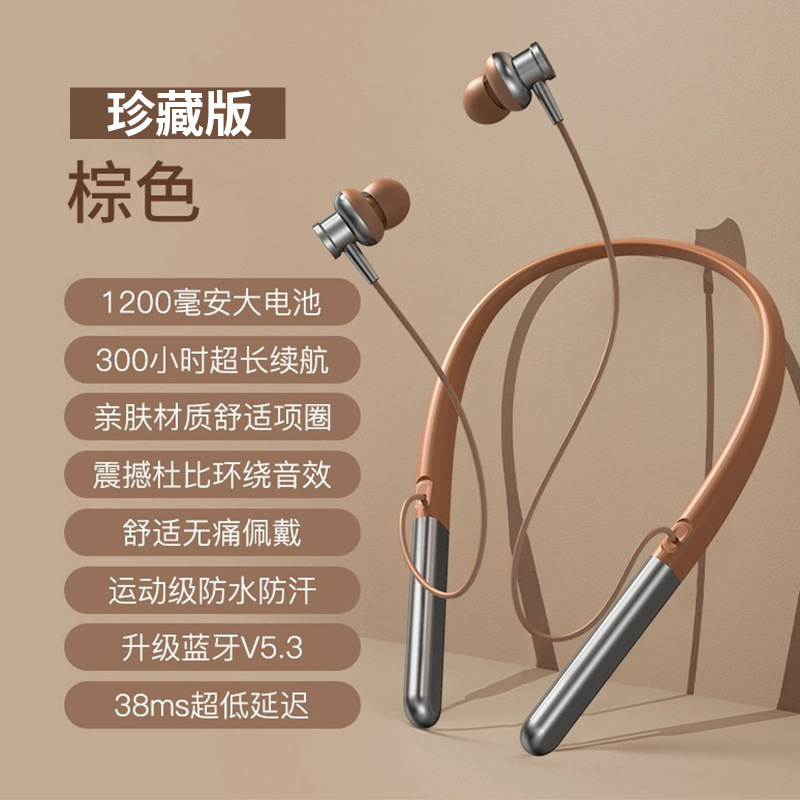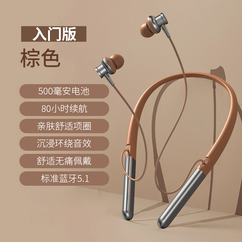 • 플래그십 버전 - 커피 브라운 [천위안 서라운드 9D 음향 효과 - 블루투스 5.1 칩 - 500H 대기] HD 통화