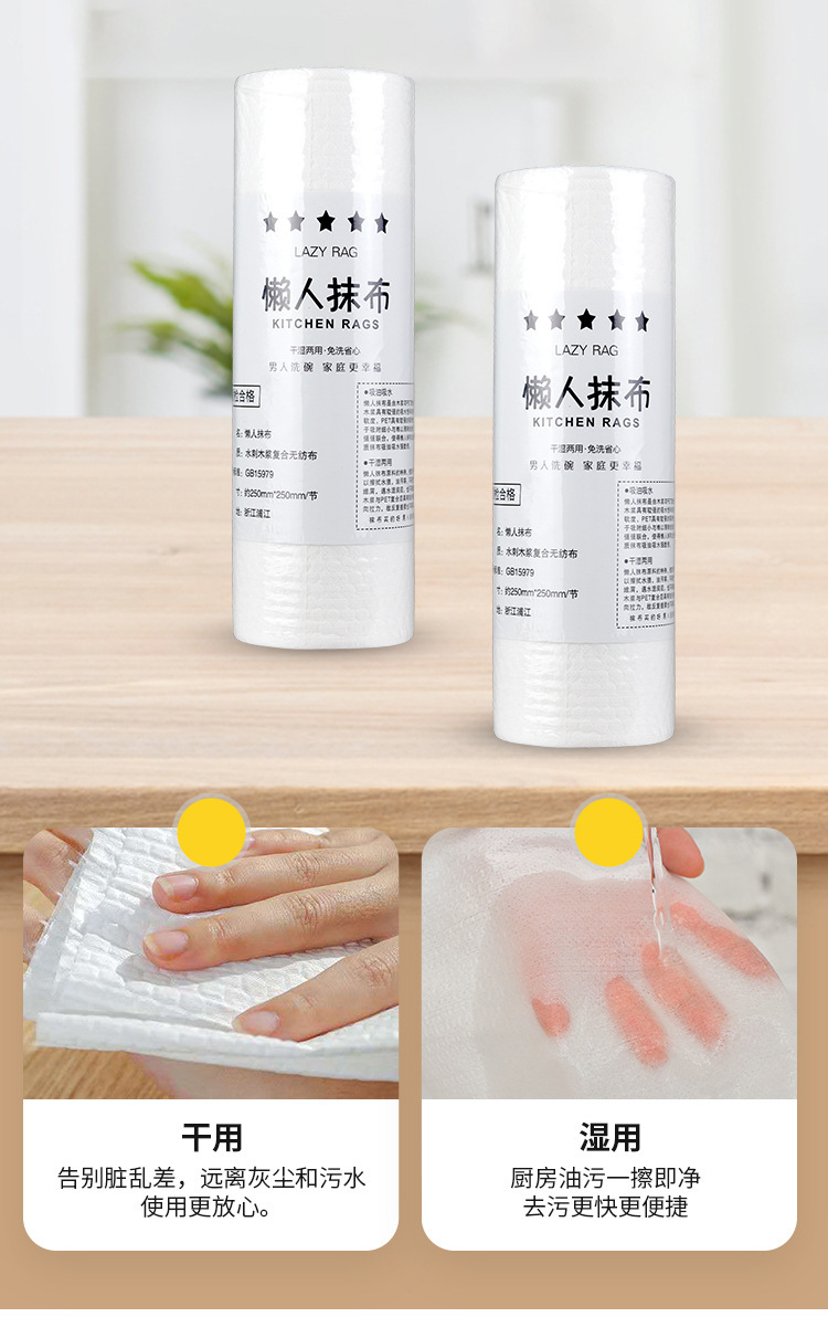 게으른 걸레, 두꺼운 주방 청소용 건식 및 습식 수세미, 일회용 특수 설거지용 천, 특대형 롤