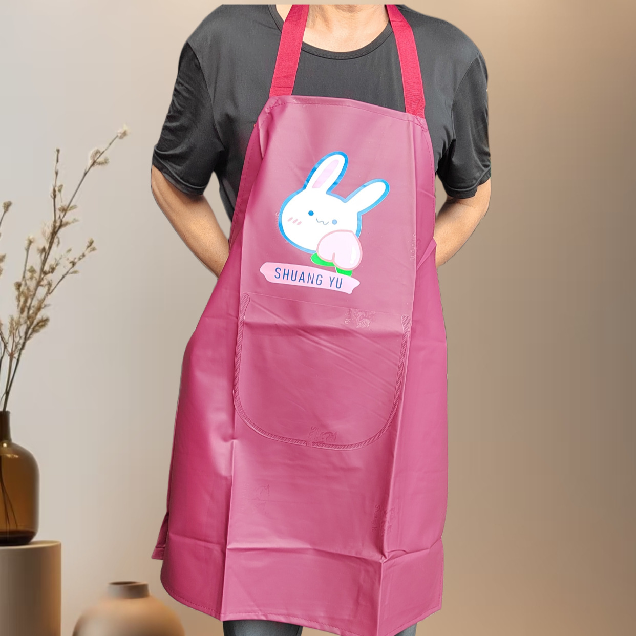 가정용 방수 및 방유 앞치마, 벗겨짐 없음, 세탁 없음, 내마모성 및 먼지 방지 작업복, 로고가 인쇄된 여성용 주방 방수 앞치마