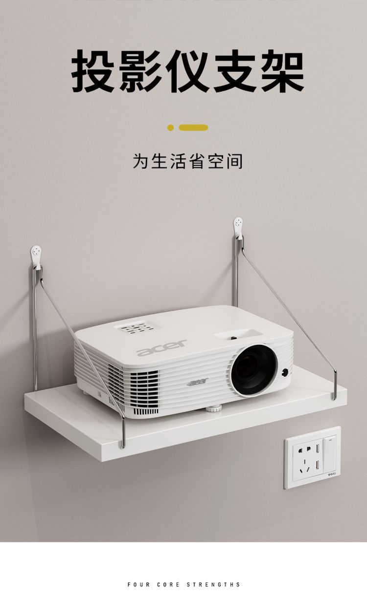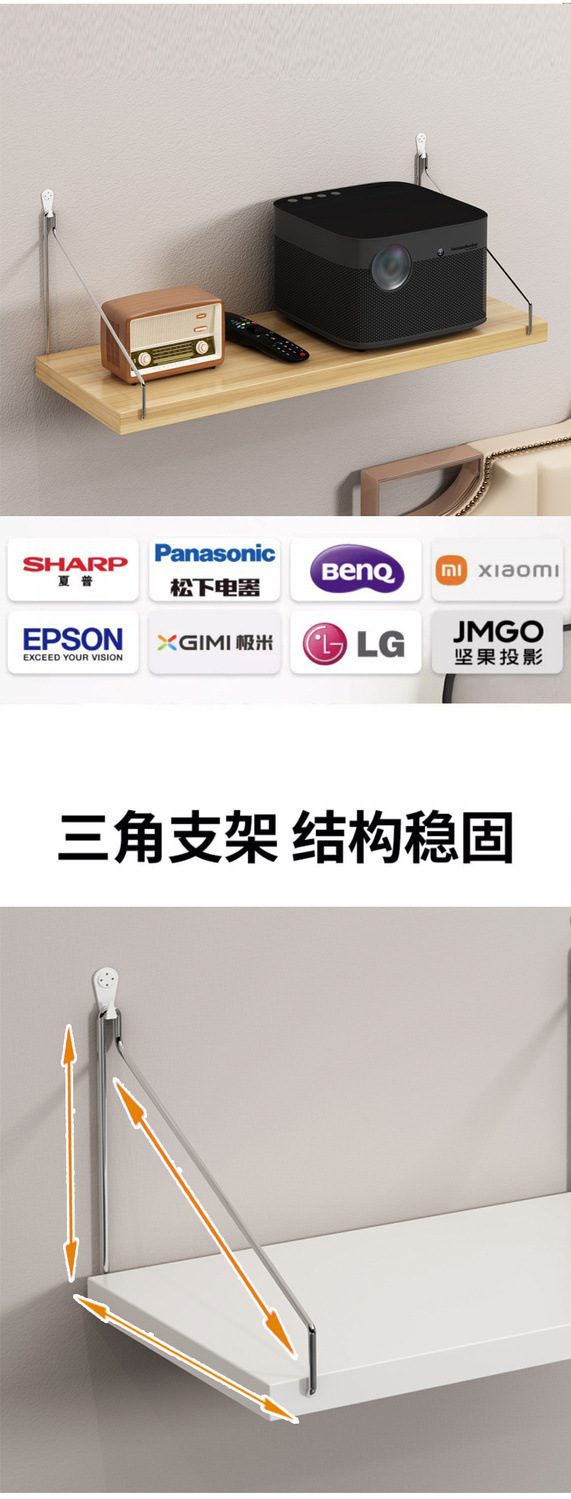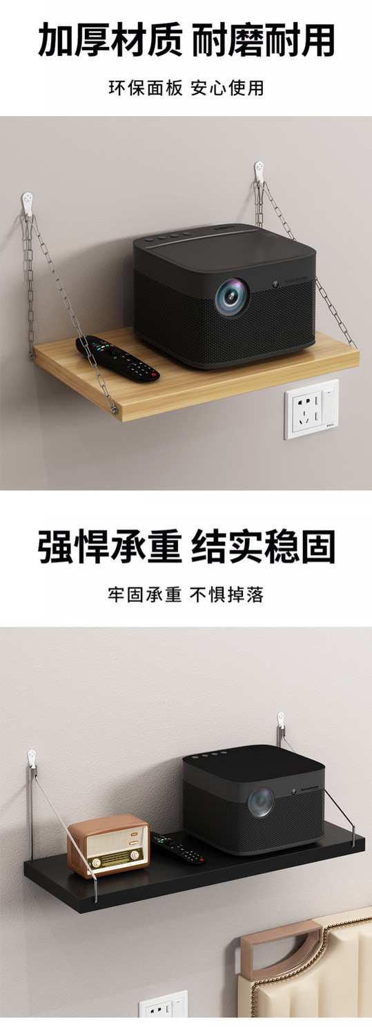 거실 벽걸이형 선반이 있는 펀치 없는 프로젝터 스탠드 라우터 수납 책장 걸이 트레이 걸이