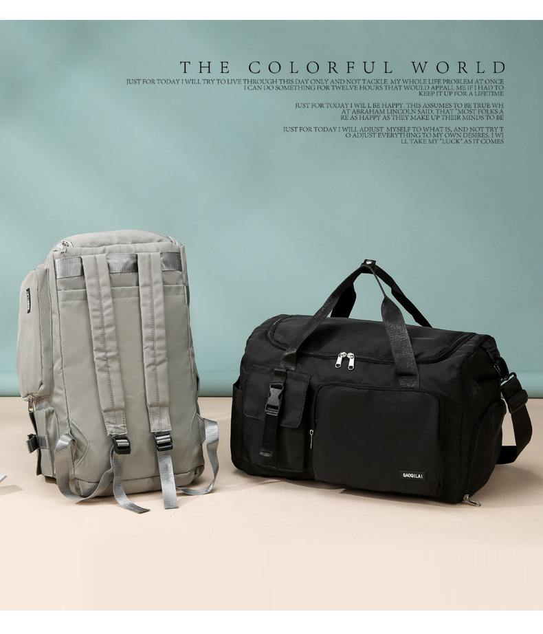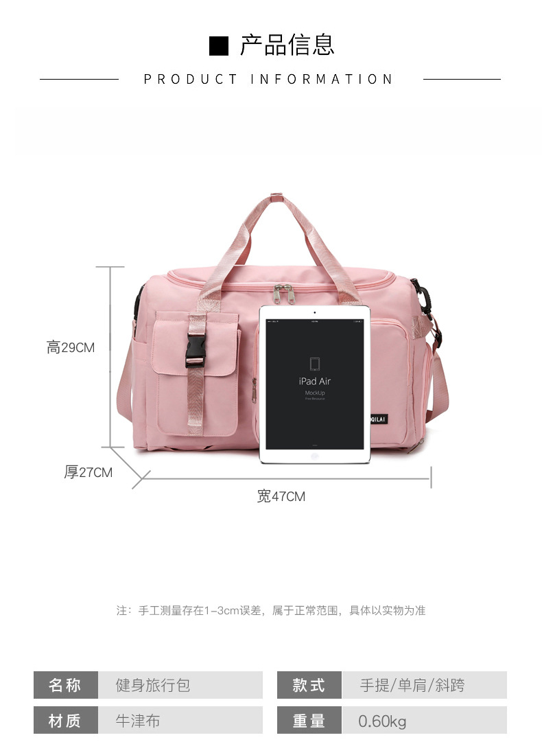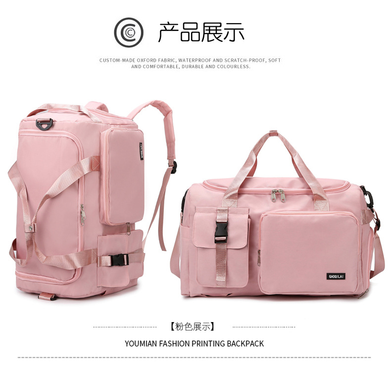 跨境新款旅行包牛津布女多功能手提双肩短途行李包运动游泳健身包