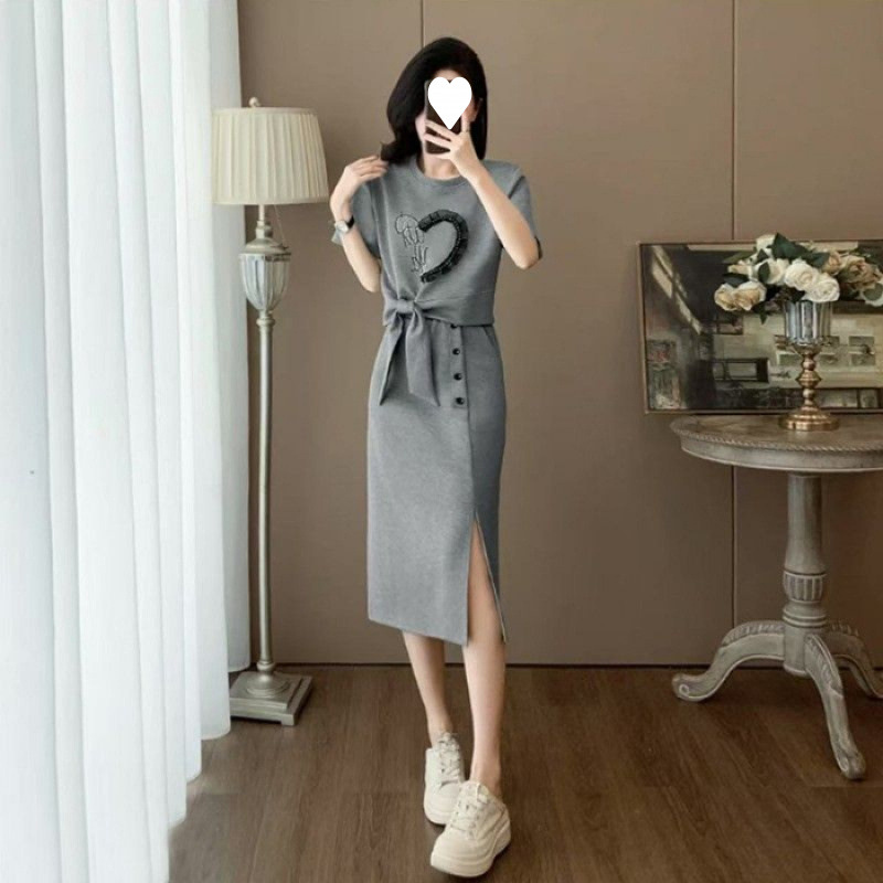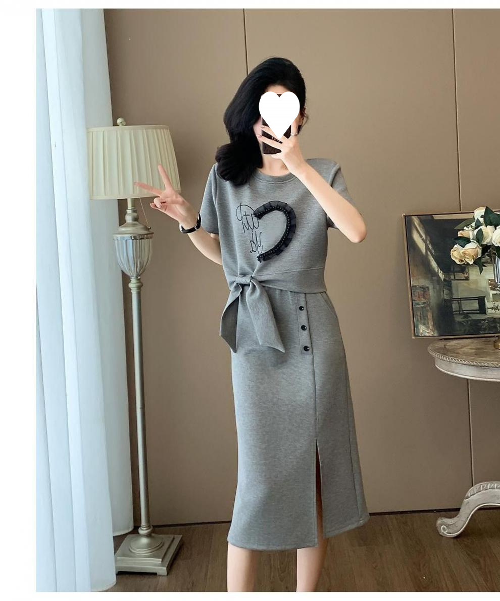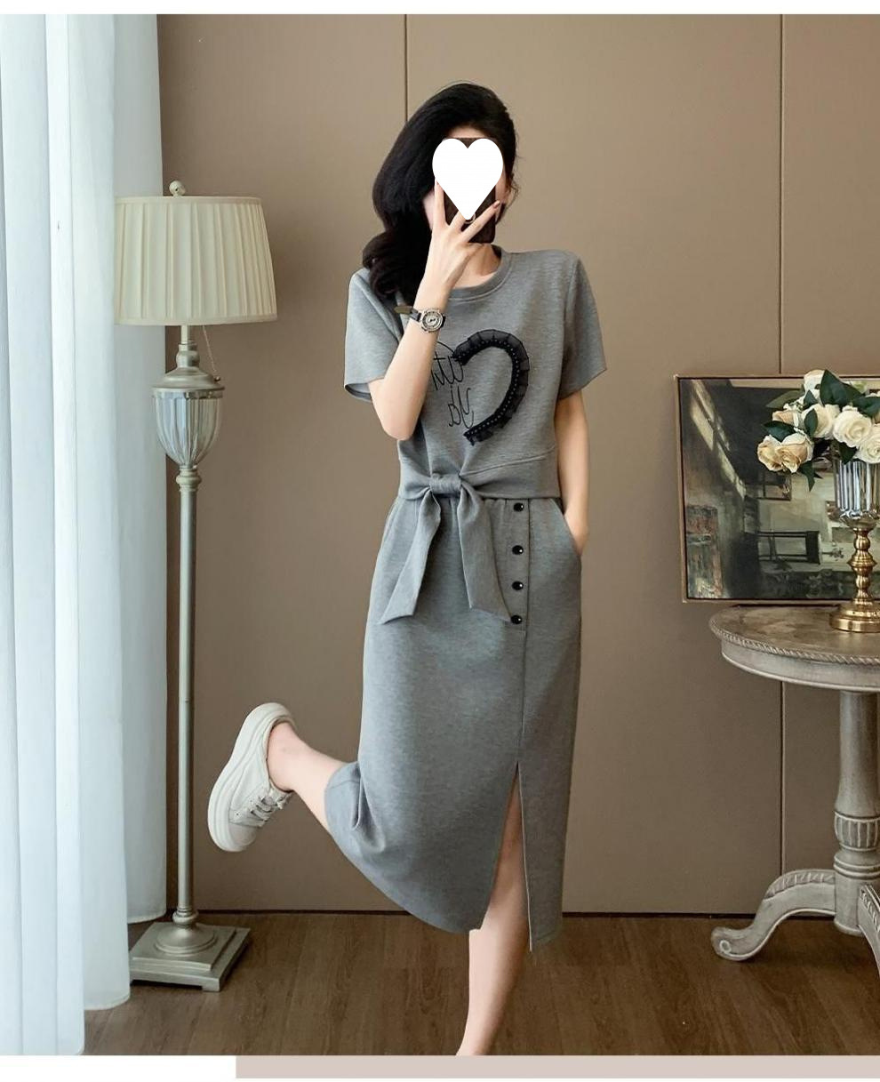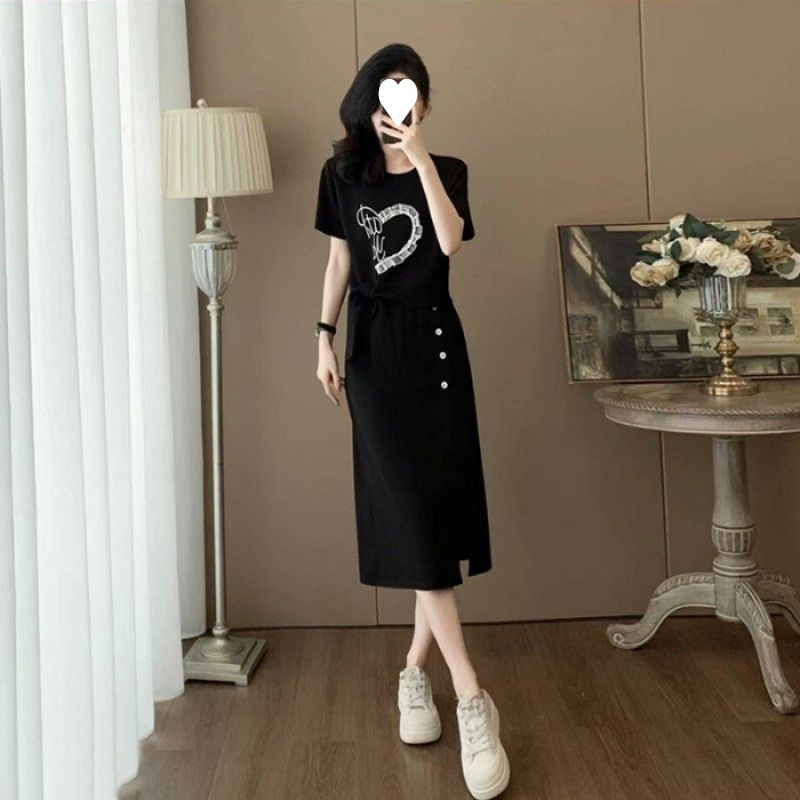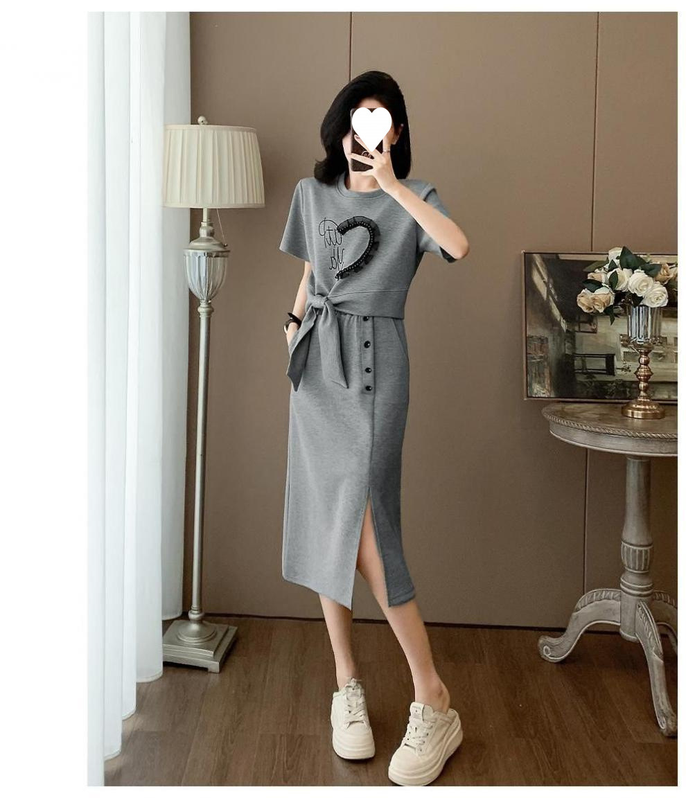 2025 새로운 여름 패션 스포츠 정장 여성 캐주얼 반팔 롱 스커트 투피스 세트