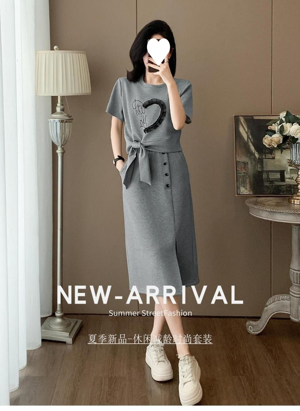 2025 새로운 여름 패션 스포츠 정장 여성 캐주얼 반팔 롱 스커트 투피스 세트스토어 가기