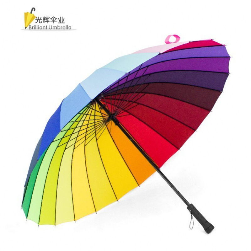 남성용 24본 개성있는 무지개 우산, 대형 2인용 및 3인용 수동 긴 손잡이 우산, 야외 우산, 강화된 방풍 대형 우산