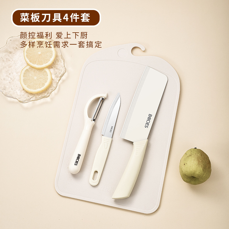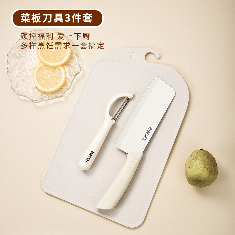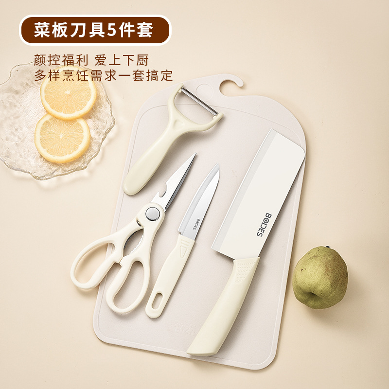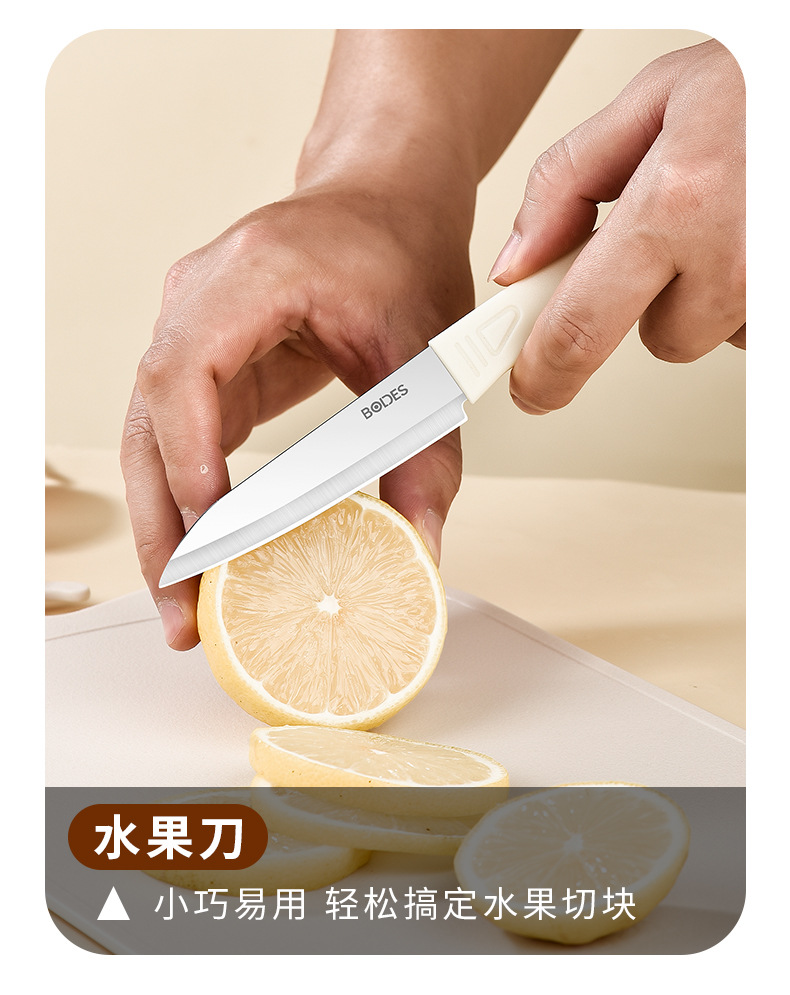 • 작은 양배추칼(칼커버 포함) + 흰색 패링칼 + 흰색 포도 도마 + 일본식 과일칼 + 황백색 다용도 가위