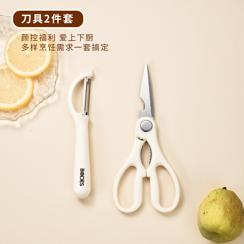 • 황백색 다용도 가위 + 흰색 껍질 벗기기 칼 (세로형)