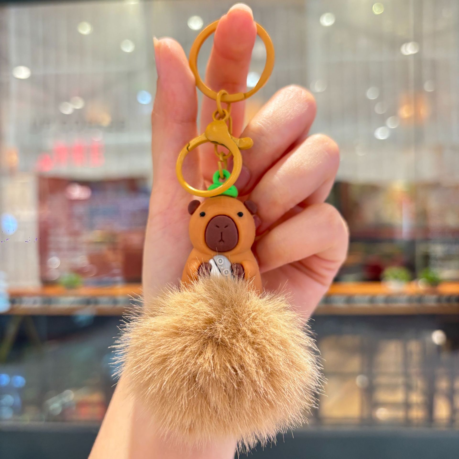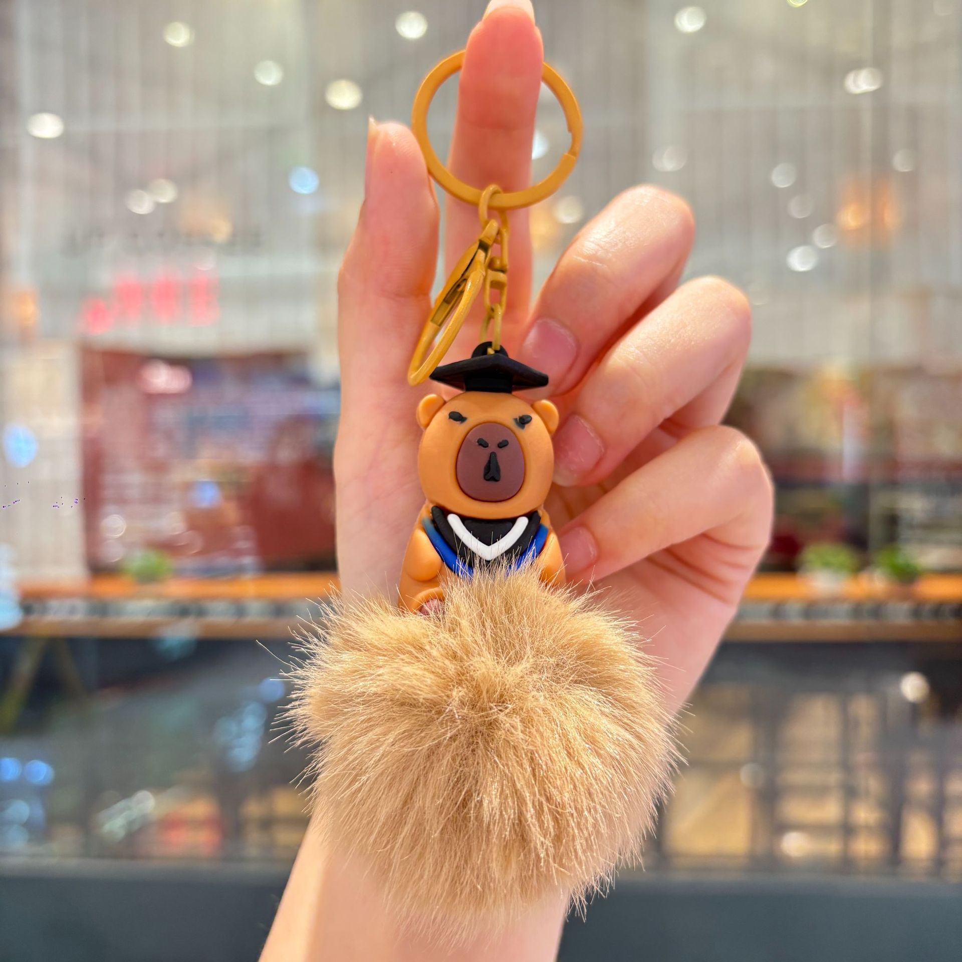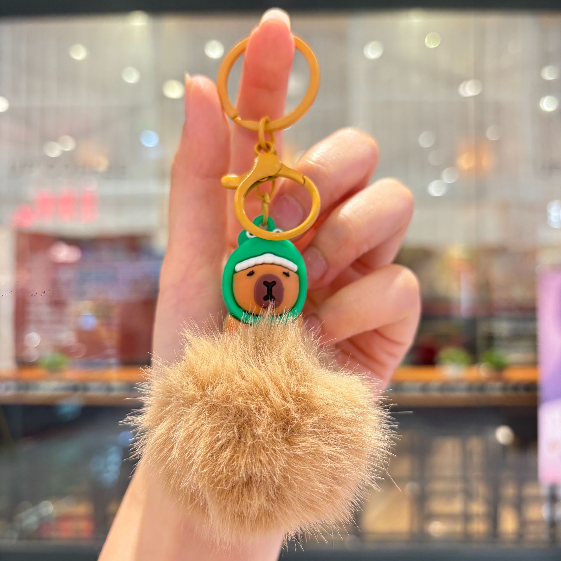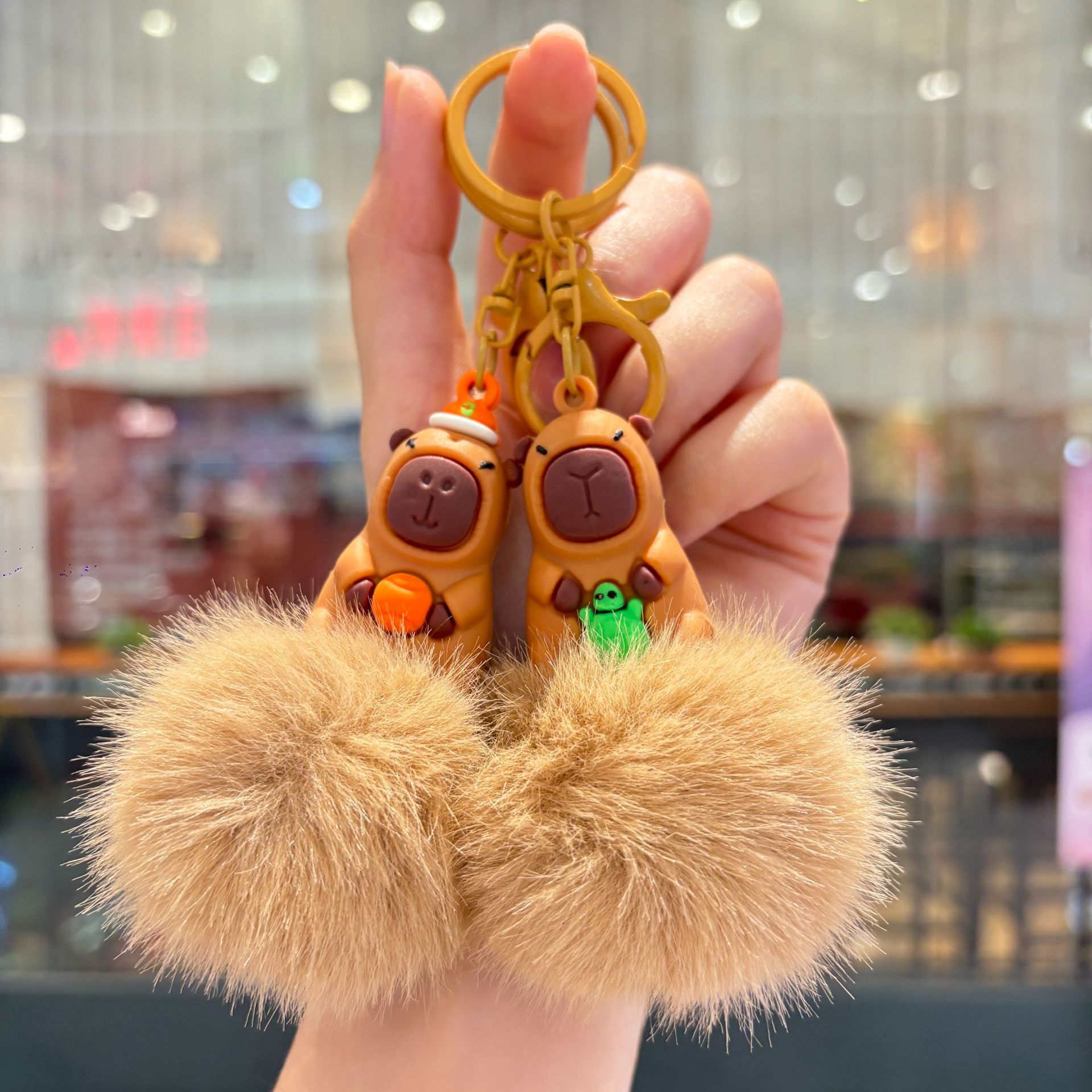 새로운 만화 헤어 볼 키 체인 Capibala 인형 펜던트 인형 귀여운 열쇠 고리 가방 작은 펜던트 도매