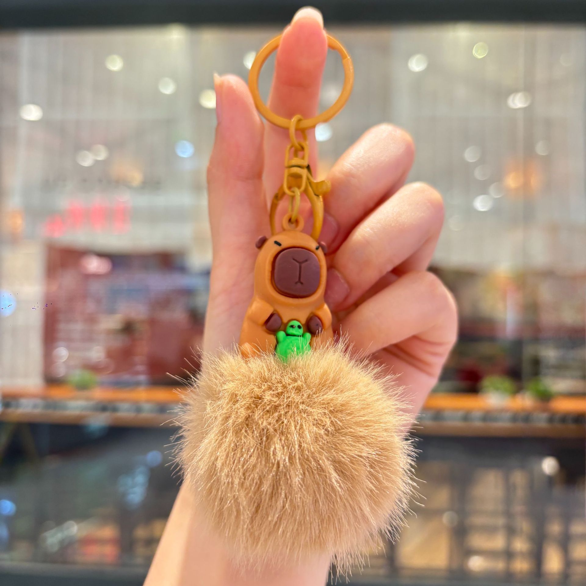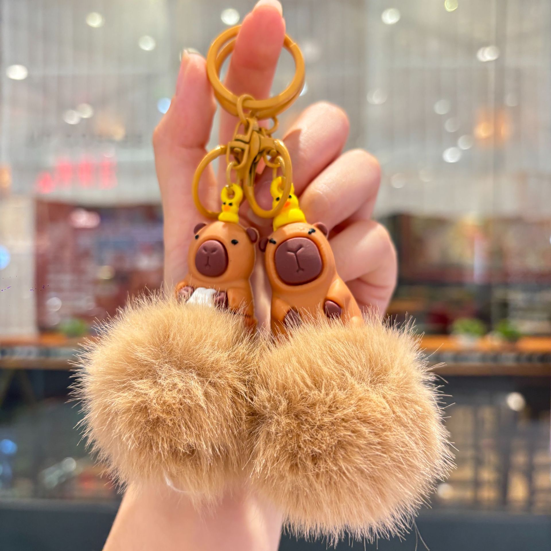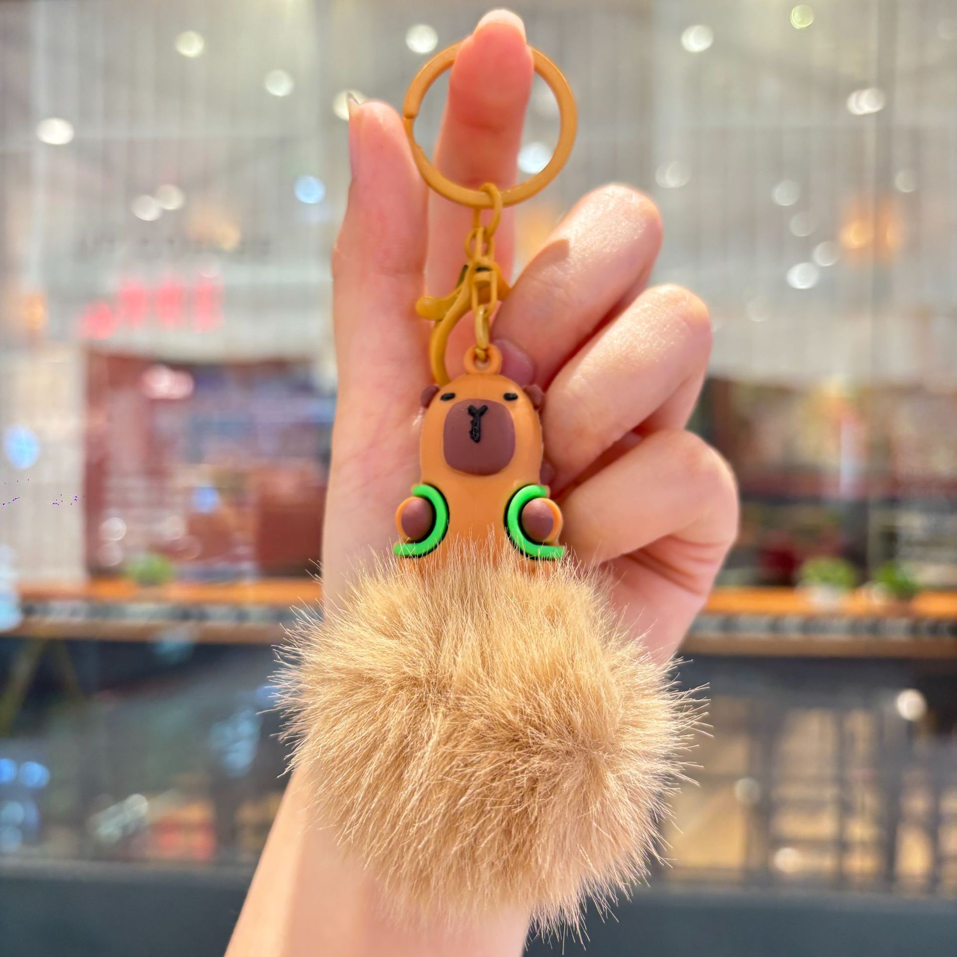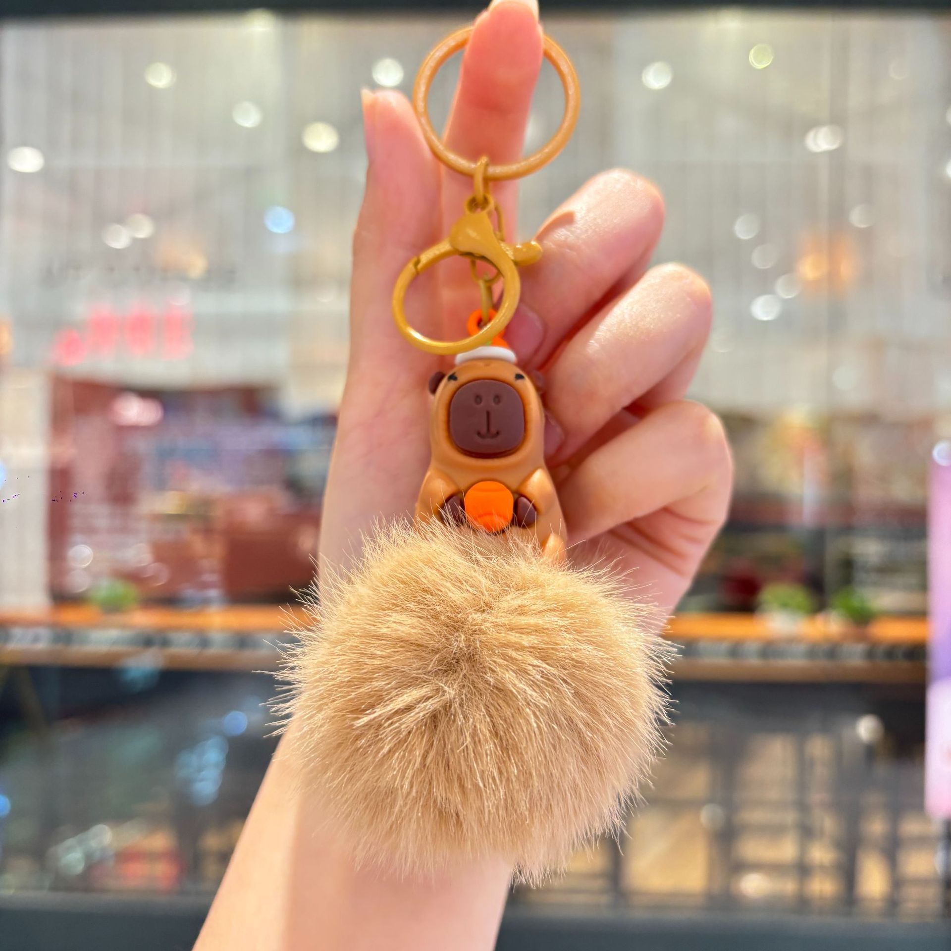새로운 만화 헤어 볼 키 체인 Capibala 인형 펜던트 인형 귀여운 열쇠 고리 가방 작은 펜던트 도매