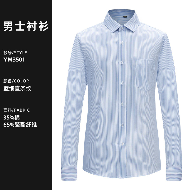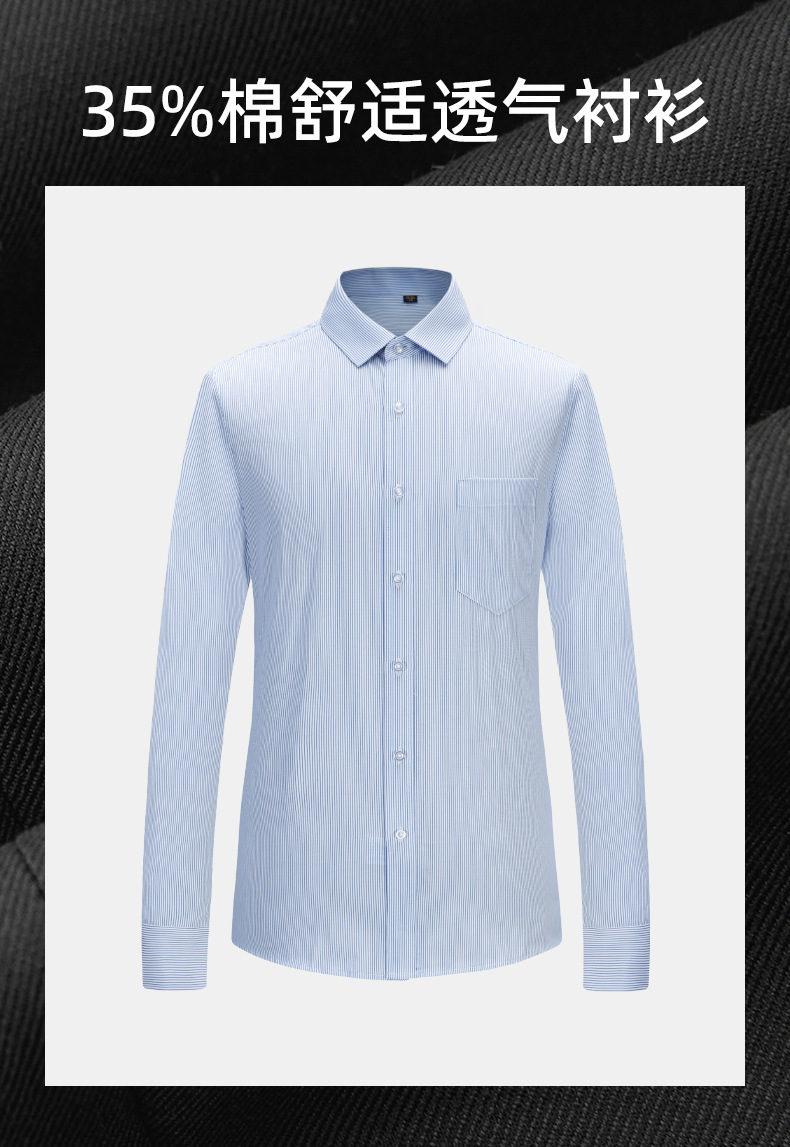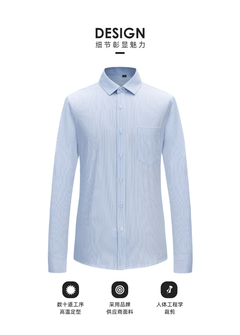 로고 스트라이프 남성 긴팔 레귤러 비즈니스 정장 작업복 블루 얇은 스트레이트 셔츠 프린트 캐주얼 남성 칼라 셔츠