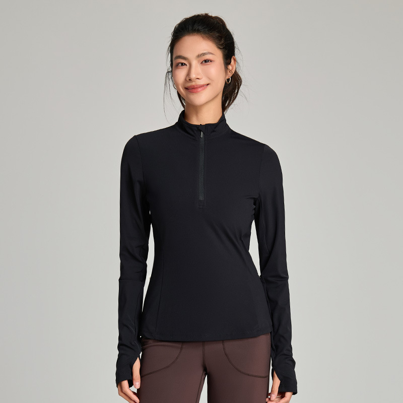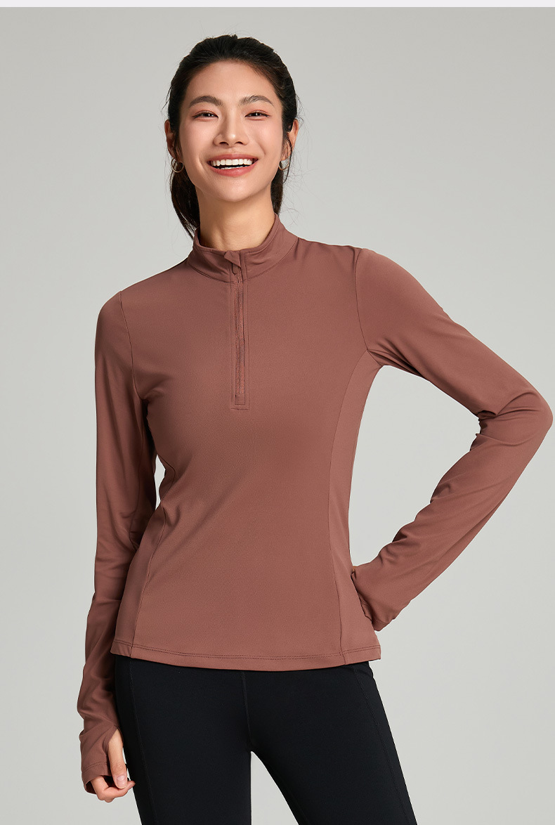 클라우드 감각 캐주얼 재킷 하프 지퍼 기질 속건성 스탠드 칼라 피트니스웨어 슬리밍 스포츠 탑 여성용 요가복