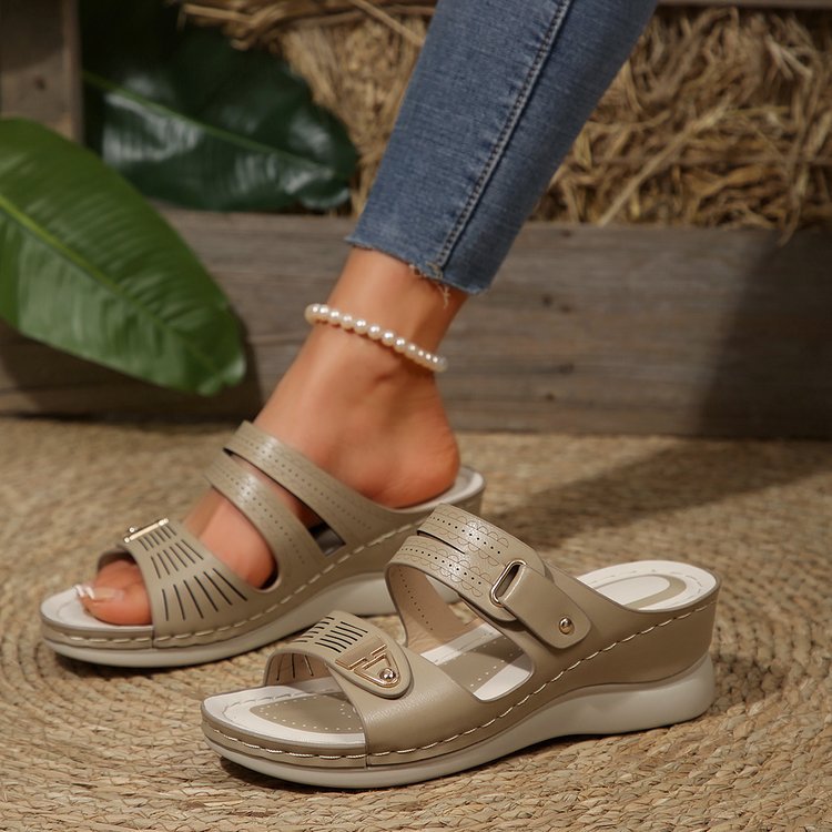 국경을 넘나드는 새로운 슬로프 힐, 대형 비치 샌들, 동남아 대외 무역 여성용 두꺼운 밑창 조각 슬리퍼
