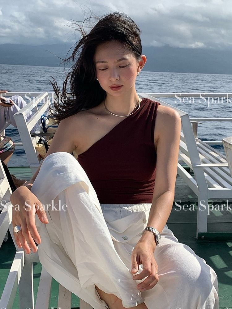 2025 새로운 기질 여신 버건디 어깨 순수한 욕망 바람 높은 감각 슬림 원피스 수영복 여성 수영복 도매스토어 가기