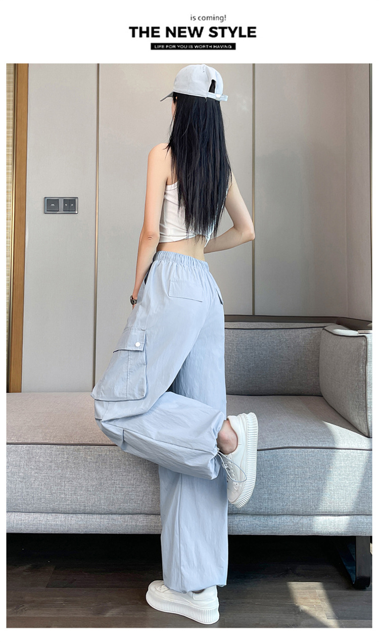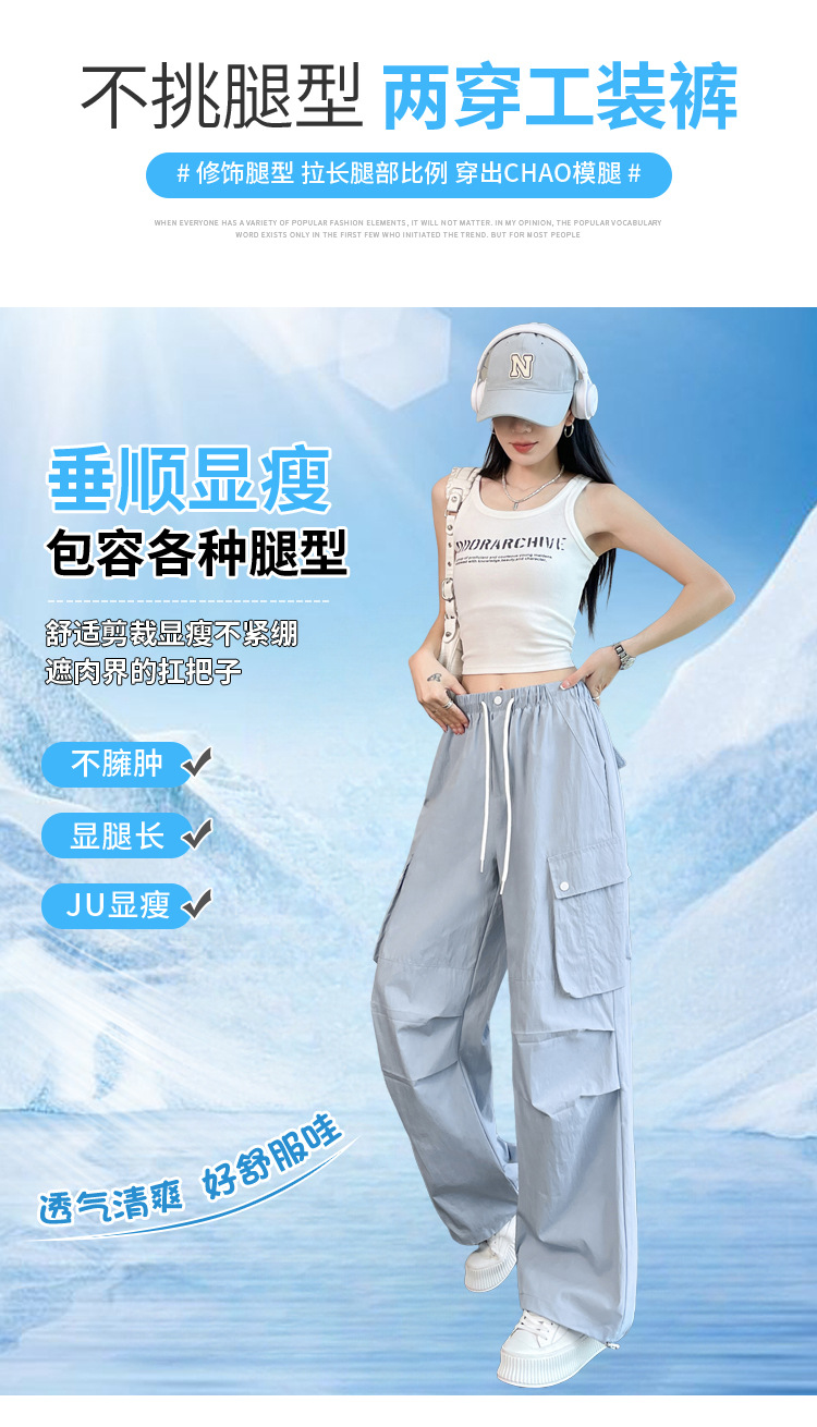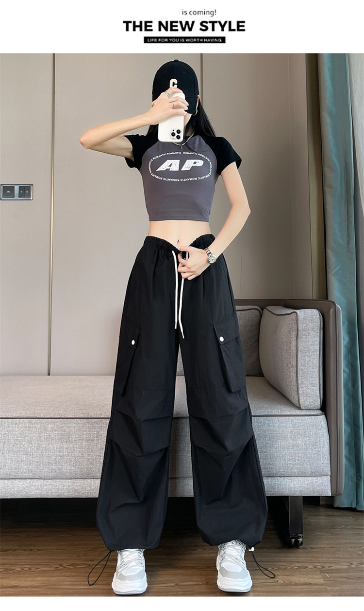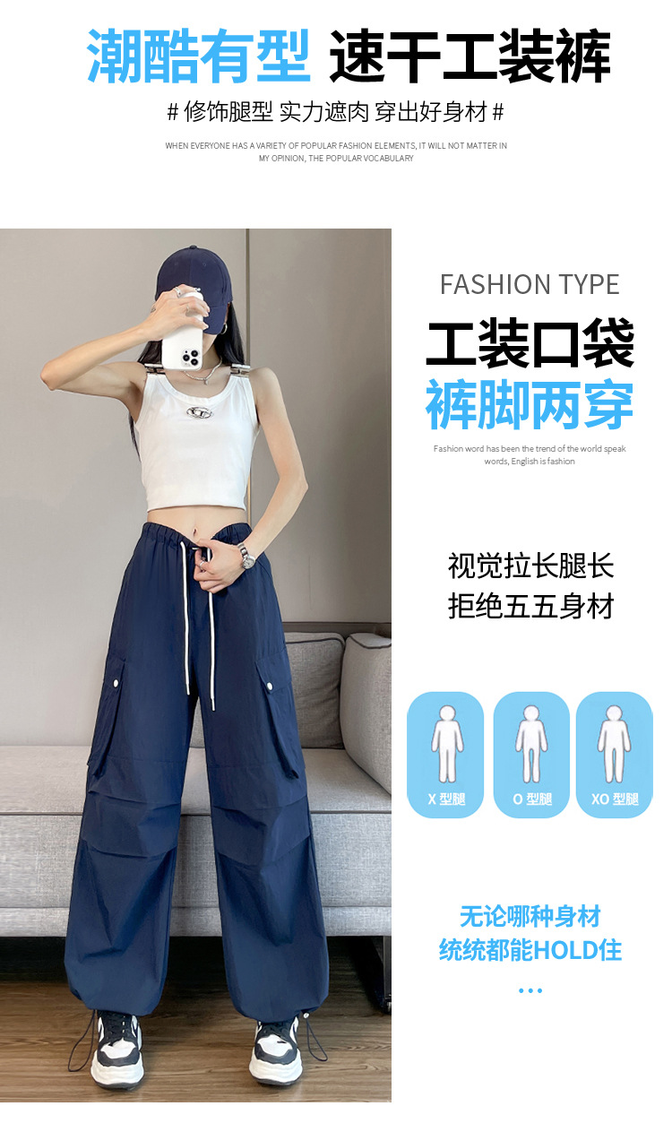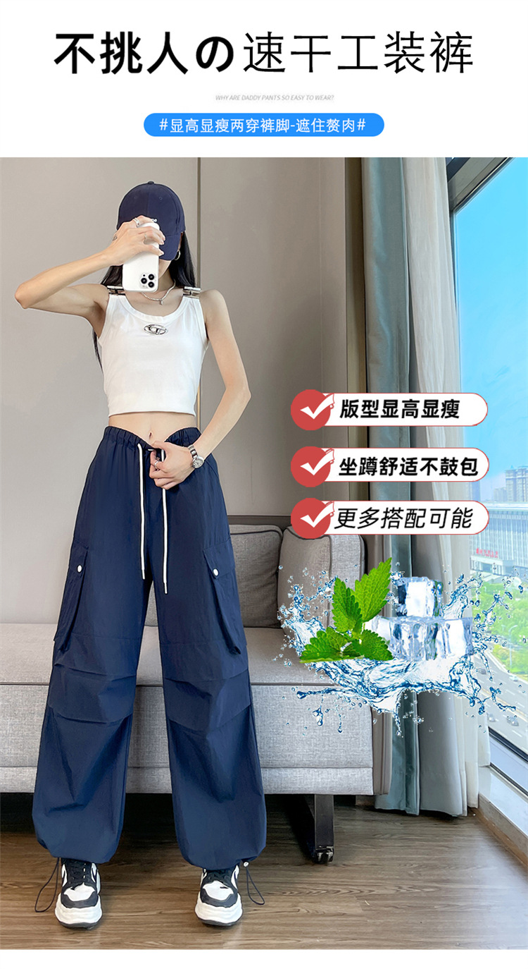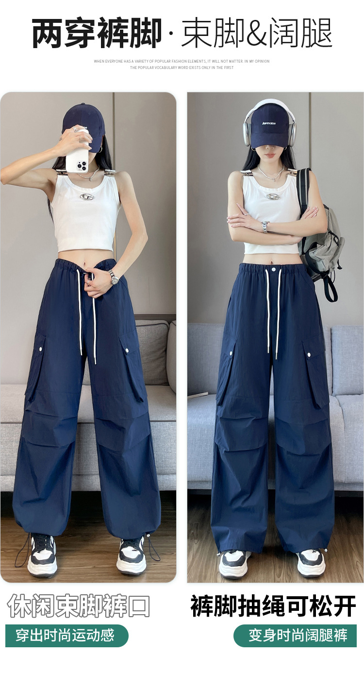 여성용 아메리칸 네이비 블루 오버올 2025 봄 가을 여름 신작 소형 하이 웨이스트 와이드 레그 파라트리퍼스 팬츠 어썰트 팬츠스토어 가기